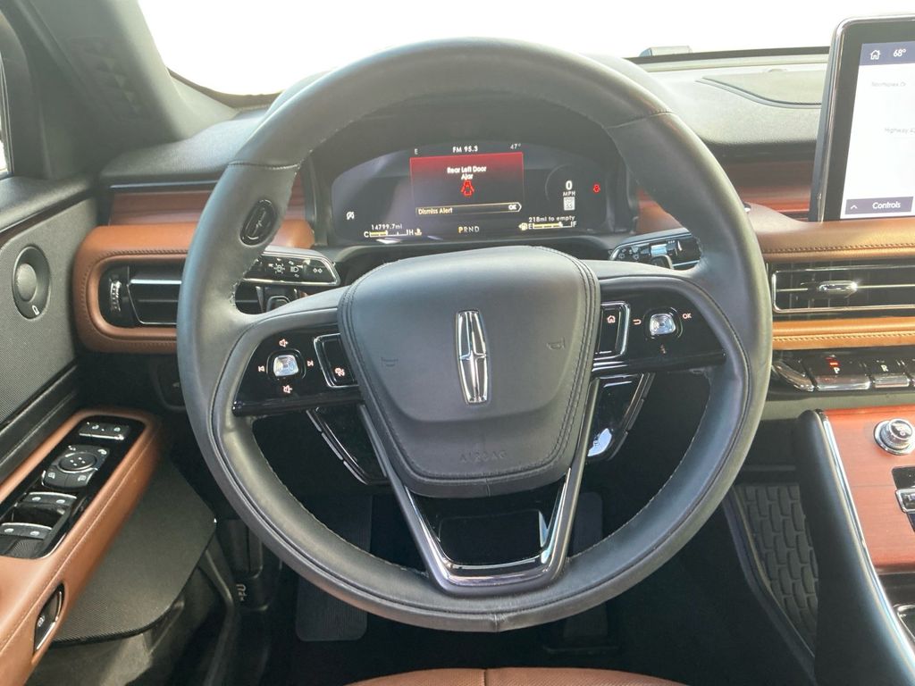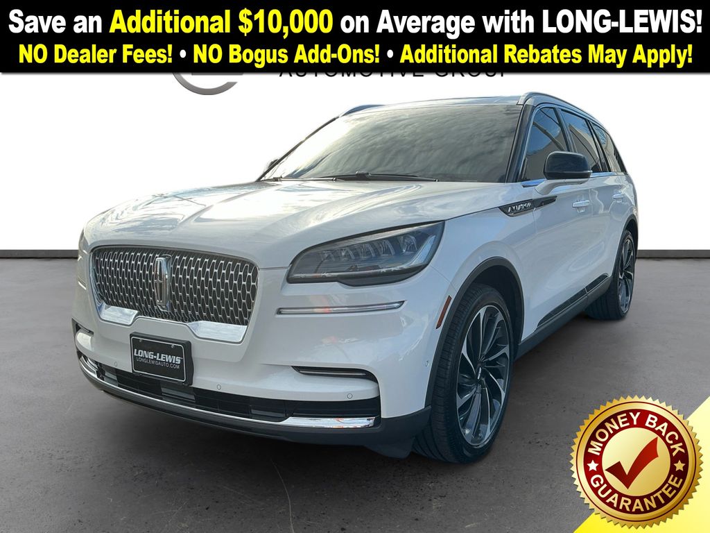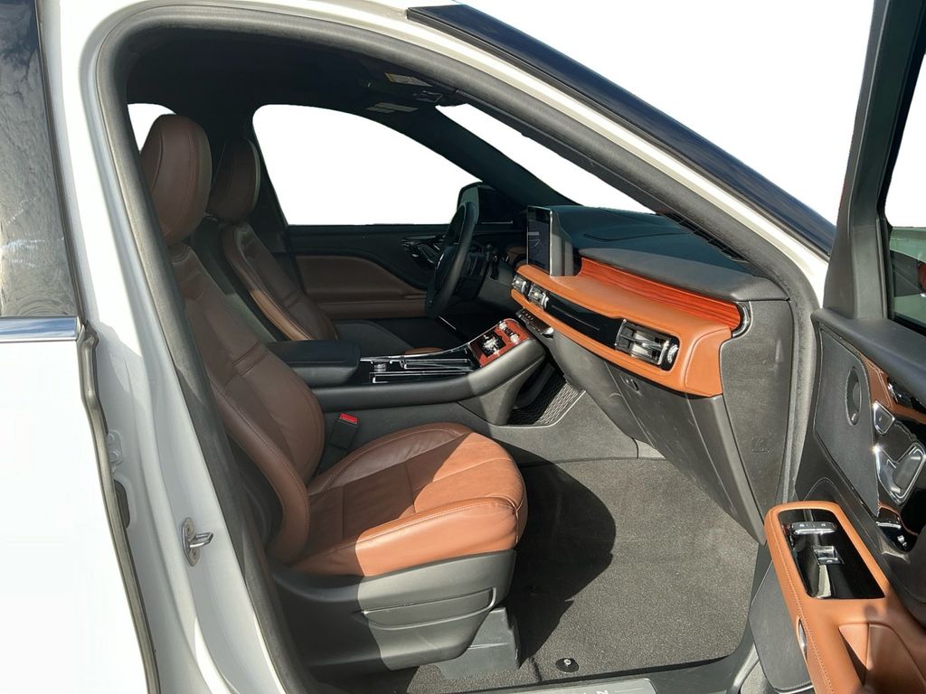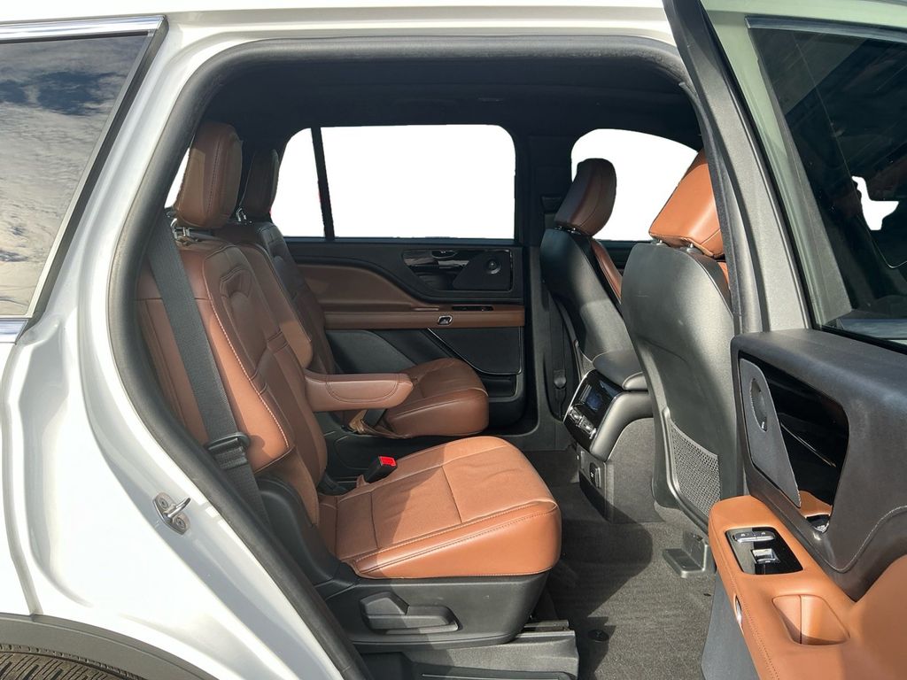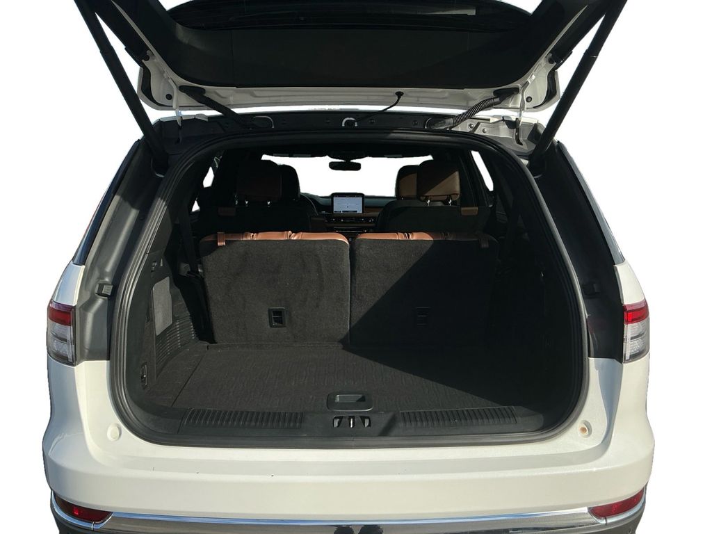 2024 Lincoln Aviator Reserve Certified. Pristine White Metallic Tri-Coat Reserve RWD 10-Speed Automatic 3.0L V6 Lincoln Certified, 14 Speakers, 3.58 Axle Ratio, 3rd row seats: split-bench, 4-Wheel Disc Brakes, ABS brakes, Active Park Assist 2.0, Air Conditioning, Alloy wheels, AM/FM radio: SiriusXM, Audio memory, Auto Air Refresh, Auto Heated/Ventilated Driver & Passenger Seats, Auto High-beam Headlights, Auto-dimming door mirrors, Auto-dimming Rear-View mirror, Automatic temperature control, Brake assist, Bumpers: body-color, Compass, Delay-off headlights, Driver door bin, Driver vanity mirror, Dual front impact airbags, Dual front side impact airbags, Electronic Stability Control, Elements Package Plus, Emergency communication system, Equipment Group 201A, Evasive Steering Assist, Four wheel independent suspension, Front anti-roll bar, Front Bucket Seats, Front Center Armrest, Front dual zone A/C, Front reading lights, Fully automatic headlights, Garage door transmitter, Head-Up Display Removal (DISC), Heated door mirrors, Heated front seats, Heated Steering Wheel, Heated VisioBlade Wipers, Heated/Ventilated 2nd Row Outboard Seats, HVAC memory, Illuminated entry, Intelligent Adaptive Cruise Control, Knee airbag, Lane Departure Warning System, Leather steering wheel, Lincoln Co-Pilot360 1.5 Plus, Low tire pressure warning, Memory seat, Navigation System, Occupant sensing airbag, Outside temperature display, Overhead airbag, Overhead console, Panic alarm, Passenger door bin, Passenger vanity mirror, Phone As A Key, Power door mirrors, Power driver seat, Power Liftgate, Power moonroof: Panoramic Vista Roof, Power passenger seat, Power steering, Power windows, Premium Lthr Heated/Ventilated Fnt Captain's Chairs, Radio data system, Radio: Revel AM/FM Audio System w/14 Speakers, Rain sensing wipers, Rear air conditioning, Rear anti-roll bar, Rear audio controls, Rear dual zone A/C, Rear reading lights, Rear window defroster, Rear window wiper, Remote keyless entry, Reverse Brake Assist, Security system, SiriusXM Radio, Speed control, Speed-Sensitive Wipers, Split folding rear seat, Spoiler, Steering wheel memory, Steering wheel mounted A/C controls, Steering wheel mounted audio controls, SYNC 3 Communication & Entertainment System, Tachometer, Telescoping steering wheel, Tilt steering wheel, Traction control, Trip computer, Turn signal indicator mirrors, Variably intermittent wipers, Ventilated front seats, Wheels: 20" Bright-Machined Aluminum, Wheels: 22" Bright-Machined Aluminum.