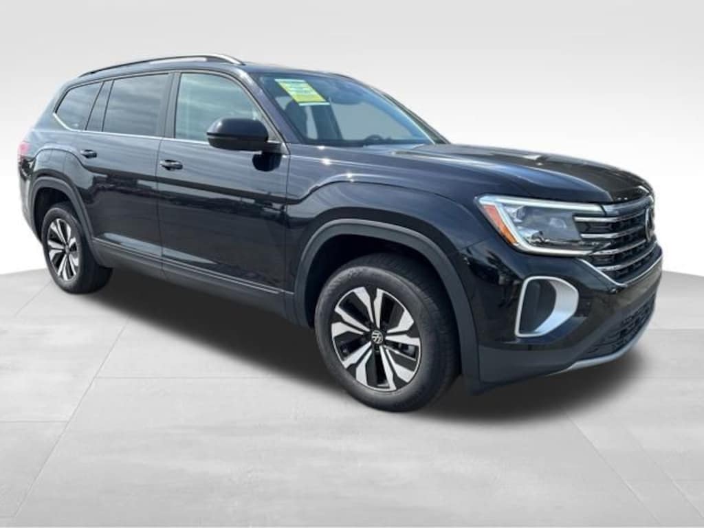 2024 Volkswagen Atlas 2.0T SE Certified. Deep Black 2.0T SE FWD 8-Speed Automatic with Tiptronic 2.0L TSI Volkswagen Certified, 3.60 Axle Ratio, 3rd row seats: split-bench, 4-Wheel Disc Brakes, 6 Speakers, ABS brakes, Air Conditioning, Alloy wheels, AM/FM radio: SiriusXM with 360L, Auto-dimming Rear-View mirror, Automatic temperature control, Brake assist, Bumpers: body-color, Compass, Delay-off headlights, Driver door bin, Driver vanity mirror, Dual front impact airbags, Dual front side impact airbags, Electronic Stability Control, Emergency communication system: VW Car-Net Safe & Secure 5-year, Exterior Parking Camera Rear, Four wheel independent suspension, Front anti-roll bar, Front Bucket Seats, Front Center Armrest, Front dual zone A/C, Front fog lights, Front reading lights, Fully automatic headlights, Heated door mirrors, Heated front seats, Heated steering wheel, Heated/Actively Ventilated Front Bucket Seats, Illuminated entry, Low tire pressure warning, Occupant sensing airbag, Outside temperature display, Overhead airbag, Overhead console, Panic alarm, Passenger door bin, Passenger vanity mirror, Perforated V-Tex Leatherette Seating Surfaces, Power door mirrors, Power driver seat, Power steering, Power windows, Radio data system, Radio: MIB3 Composition Media, Rain sensing wipers, Rear air conditioning, Rear anti-roll bar, Rear reading lights, Rear seat center armrest, Rear window defroster, Rear window wiper, Remote keyless entry, Rubber Mats - Bench Seat, Security system, Speed control, Speed-sensing steering, Split folding rear seat, Spoiler, Standard Suspension, Steering wheel mounted audio controls, Tachometer, Telescoping steering wheel, Tilt steering wheel, Traction control, Trip computer, Turn signal indicator mirrors, Variably intermittent wipers, Ventilated front seats, Wheels: 18" 2-Tone Machined Alloy.