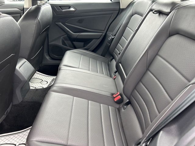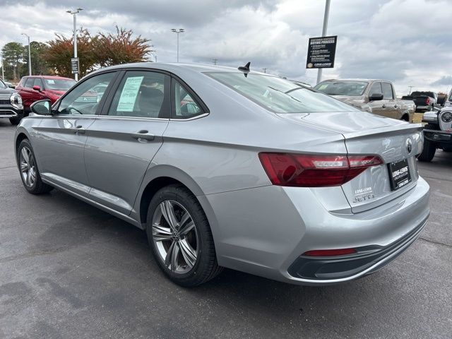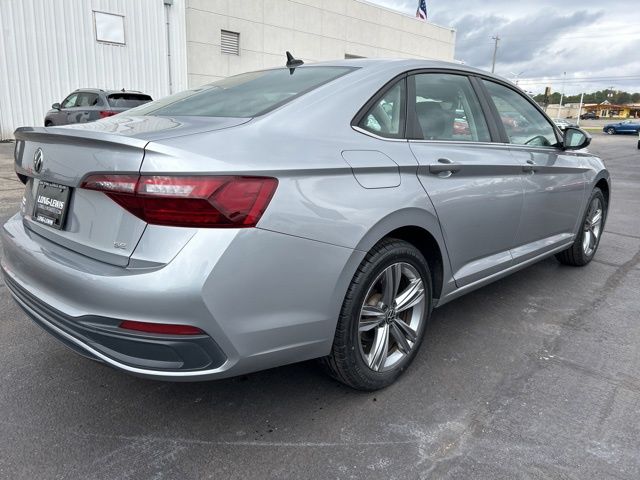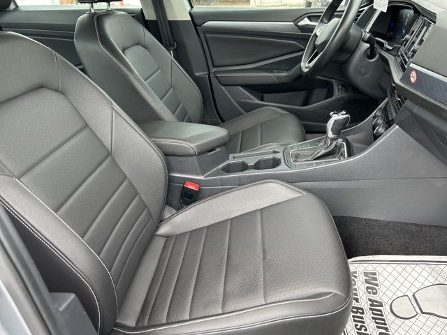 2024 Volkswagen Jetta 1.5T SE Certified. Silver 1.5T SE FWD 8-Speed Automatic with Tiptronic 1.5L I-4 DI DOHC Turbocharged Volkswagen Certified, 4 Speakers, 4-Wheel Disc Brakes, ABS brakes, Active Blind Spot Monitor, Air Conditioning, Alloy wheels, Auto-dimming Rear-View mirror, Automatic temperature control, Brake assist, Bumpers: body-color, Delay-off headlights, Driver door bin, Driver vanity mirror, Dual front impact airbags, Dual front side impact airbags, Electronic Stability Control, Emergency communication system: VW Car-Net Safe & Secure 5-year, Exterior Parking Camera Rear, Front anti-roll bar, Front Bucket Seats, Front Center Armrest, Front dual zone A/C, Front wheel independent suspension, Fully automatic headlights, Heated door mirrors, Heated Front Seats, Heated front seats, Illuminated entry, Leather Shift Knob, Leather steering wheel, Low tire pressure warning, Occupant sensing airbag, Outside temperature display, Overhead airbag, Overhead console, Panic alarm, Passenger door bin, Passenger vanity mirror, Power door mirrors, Power driver seat, Power steering, Power windows, Radio data system, Radio: MIB3 Composition Color w/6.5" Touchscreen, Rain sensing wipers, Rear anti-roll bar, Rear reading lights, Rear seat center armrest, Rear window defroster, Remote keyless entry, Speed control, Speed-sensing steering, Split folding rear seat, Steering wheel mounted audio controls, Tachometer, Telescoping steering wheel, Tilt steering wheel, Traction control, Trip computer, V-Tex Leatherette Seat Trim, Variably intermittent wipers, Wheels: 17" Twin 5-Spoke Silver Painted Alloy.
