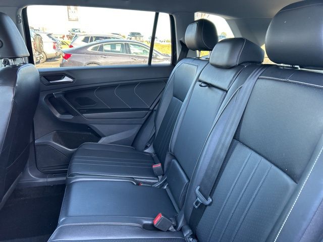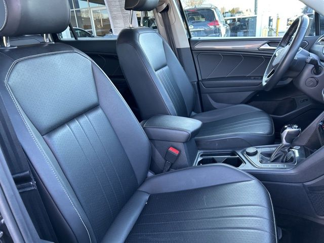 2024 Volkswagen Tiguan 2.0T SE Certified. Black 2.0T SE AWD 8-Speed Automatic with Tiptronic 2.0L TSI DOHC Volkswagen Certified, AWD, 3.33 Axle Ratio, 4-Wheel Disc Brakes, 4-Wheel Independent Suspension, 6 Speakers, ABS brakes, Air Conditioning, Alloy wheels, AM/FM radio: SiriusXM with 360L, Auto-dimming Rear-View mirror, Automatic temperature control, Brake assist, Bumpers: body-color, Compass, Delay-off headlights, Driver door bin, Driver vanity mirror, Dual front impact airbags, Dual front side impact airbags, Electronic Stability Control, Emergency communication system: VW Car-Net Safe & Secure 5-year, Exterior Parking Camera Rear, Four wheel independent suspension, Front anti-roll bar, Front Bucket Seats, Front Center Armrest, Front dual zone A/C, Front reading lights, Fully automatic headlights, Heated door mirrors, Heated Front Seats, Heated front seats, Illuminated entry, Leather Shift Knob, Low tire pressure warning, Occupant sensing airbag, Outside temperature display, Overhead airbag, Overhead console, Panic alarm, Passenger door bin, Passenger vanity mirror, Perforated V-Tex Leatherette Seating Surfaces, Power door mirrors, Power driver seat, Power Liftgate, Power steering, Power windows, Radio data system, Radio: MIB3 Composition Media AM/FM/HD, Rain sensing wipers, Rear anti-roll bar, Rear reading lights, Rear seat center armrest, Rear window defroster, Rear window wiper, Remote keyless entry, Security system, Speed control, Speed-sensing steering, Split folding rear seat, Spoiler, Steering wheel mounted audio controls, Tachometer, Telescoping steering wheel, Tilt steering wheel, Traction control, Trip computer, Turn signal indicator mirrors, Variably intermittent wipers, Wheels: 18" Dark Graphite Painted 10-Spoke Alloy, AWD.