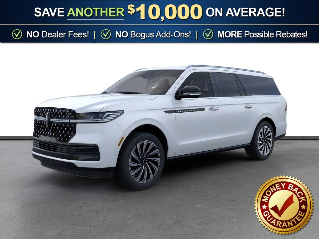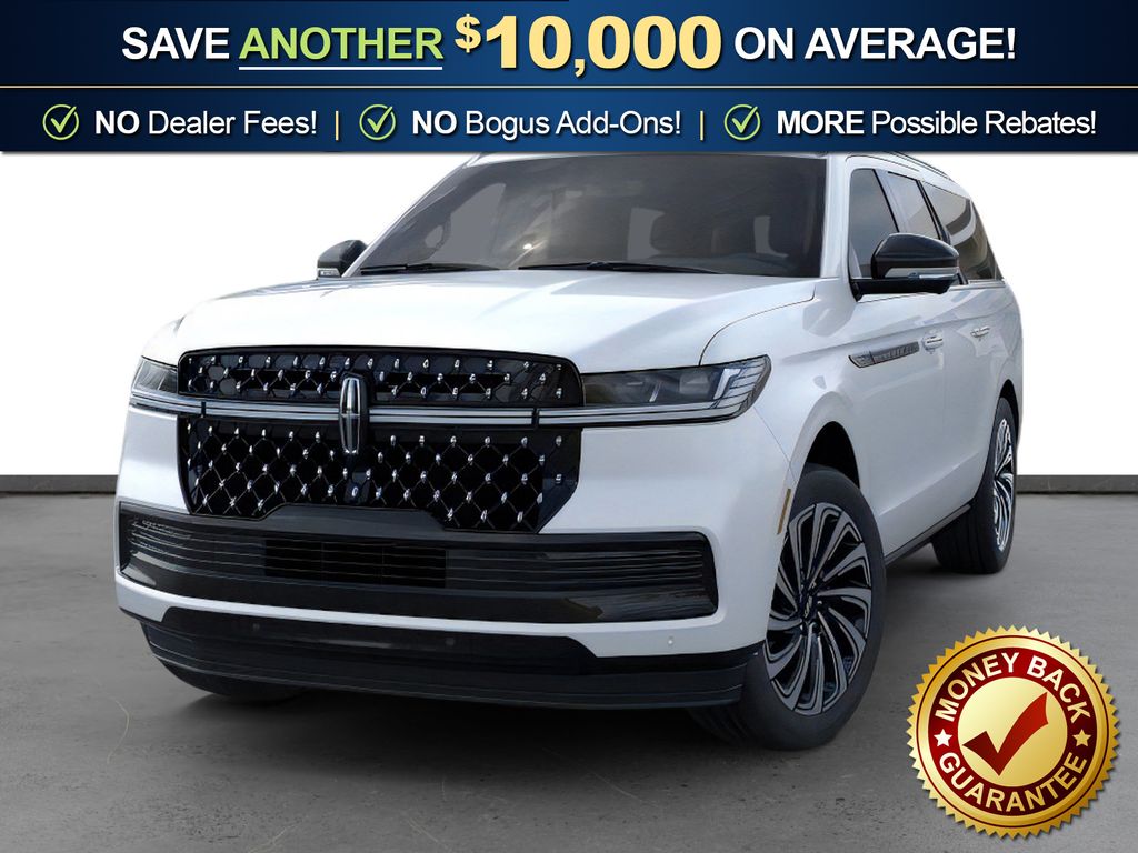 Crystal White Metallic Clearcoat 2026 Lincoln Navigator L Black Label NFT 4WD 10-Speed Automatic 3.5L V6 28 Speakers, 3rd row seats: split-bench, 4-Wheel Disc Brakes, ABS brakes, Adaptive suspension, Adjustable pedals, Air Conditioning, Alloy wheels, AM/FM radio: SiriusXM with 360L, Apple CarPlay/Android Auto, Audio memory, Auto High-beam Headlights, Auto Start-Stop Technology, Auto tilt-away steering wheel, Auto-dimming door mirrors, Auto-dimming Rear-View mirror, Auto-leveling suspension, Automatic temperature control, BlueCruise Equipped (4-Years Included), Brake assist, Bumpers: body-color, Compass, Delay-off headlights, Driver door bin, Driver vanity mirror, Driver's Seat Mounted Armrest, Dual front impact airbags, Dual front side impact airbags, Electronic Stability Control, Emergency communication system: 911 Assist, Enlighten Theme, Exterior Parking Camera Rear, Four wheel independent suspension, Front anti-roll bar, Front Bucket Seats, Front dual zone A/C, Front reading lights, Fully automatic headlights, Garage door transmitter, Head restraints memory, Heated door mirrors, Heated front seats, Heated rear seats, Heated steering wheel, HVAC memory, Illuminated entry, Leather steering wheel, Lincoln App, Lincoln Connectivity Package (4-Years Included), Lincoln Digital Experience, Lincoln Security Package, Low tire pressure warning, Memory seat, Navigation system: Connected Navigation (1-year trial), Occupant sensing airbag, Outside temperature display, Overhead airbag, Overhead console, Panic alarm, Passenger door bin, Passenger seat mounted armrest, Passenger vanity mirror, Pedal memory, Power adjustable front head restraints, Power adjustable rear head restraints, Power door mirrors, Power driver seat, Power moonroof: Panoramic Vista Roof, Power passenger seat, Power steering, Power windows, Radio data system, Radio: Revel Ultima 3D Audio System, Rain sensing wipers, Rear air conditioning, Rear anti-roll bar, Rear audio controls, Rear reading lights, Rear seat center armrest, Rear window defroster, Rear window wiper, Reclining 3rd row seat, Remote keyless entry, Security system, SiriusXM with 360L (3 Months Trial), Speed control, Speed-sensing steering, Speed-Sensitive Wipers, Split folding rear seat, Spoiler, Steering wheel memory, Steering wheel mounted audio controls, Tachometer, Telescoping steering wheel, Tilt steering wheel, Traction control, Trip computer, Turn signal indicator mirrors, Variably intermittent wipers, Ventilated front seats, Ventilated rear seats, Wheels: 22" High-Gloss Ebony Aluminum.