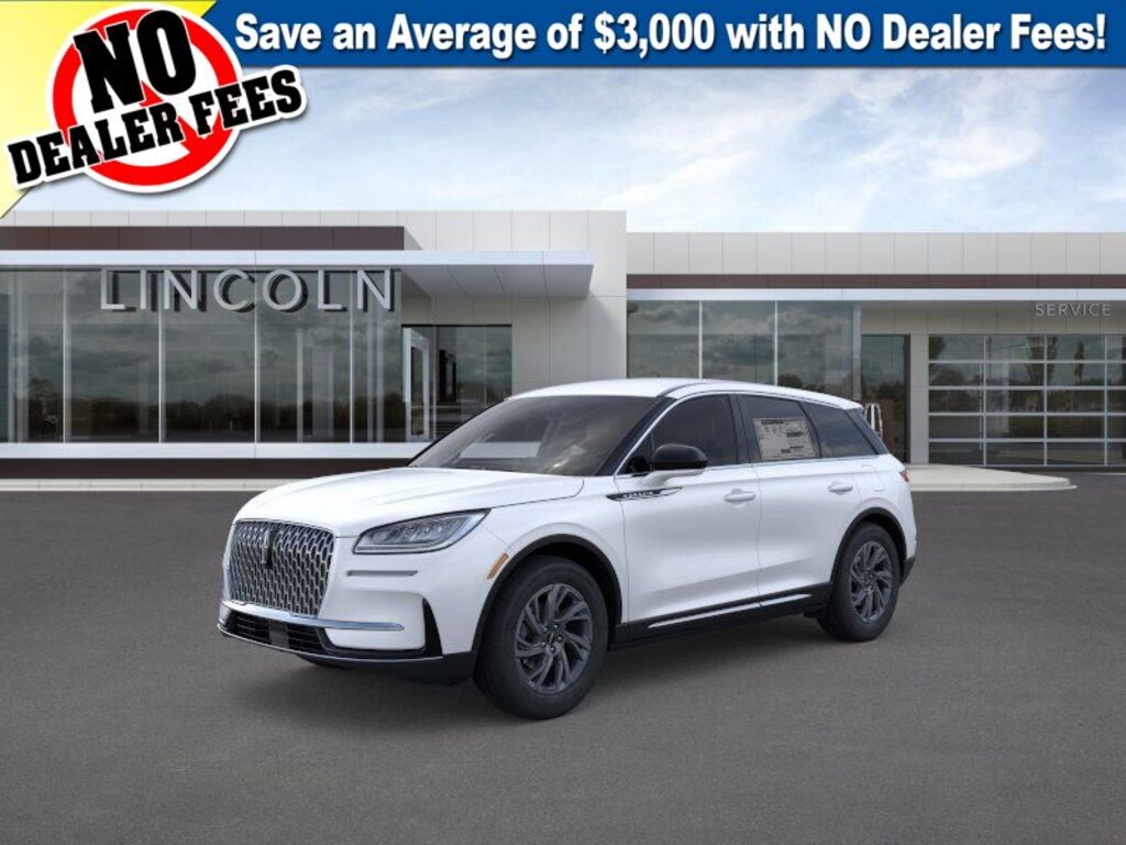 Pristine White Metallic Tri-Coat 2025 Lincoln Corsair Premiere fctp FWD 8-Speed Automatic 2.0L I4 18" Bright Machined Aluminum Wheels, 4-Wheel Disc Brakes, 9 Speakers, ABS brakes, Air Conditioning, Alexa Built-In, Alloy wheels, AM/FM radio: SiriusXM with 360L, Apple CarPlay/Android Auto, Auto High-beam Headlights, Auto-dimming Rear-View mirror, Automatic temperature control, Brake assist, Bumpers: body-color, Compass, Delay-off headlights, Driver door bin, Driver vanity mirror, Dual front impact airbags, Dual front side impact airbags, Electronic Stability Control, Emergency communication system: 911 Assist, Four wheel independent suspension, Front anti-roll bar, Front Bucket Seats, Front Center Armrest, Front dual zone A/C, Front reading lights, Fully automatic headlights, Heated door mirrors, Heated front seats, Illuminated entry, Knee airbag, Leather steering wheel, Lincoln Soft Touch Heated Front Captain's Chairs, Low tire pressure warning, Memory seat, Navigation system: Connected Navigation (4-year trial), Occupant sensing airbag, Outside temperature display, Overhead airbag, Overhead console, Panic alarm, Passenger door bin, Passenger vanity mirror, Power door mirrors, Power driver seat, Power Liftgate, Power passenger seat, Power steering, Power windows, Radio data system, Radio: Lincoln Premium Audio System w/MP3, Rear anti-roll bar, Rear Parking Sensors, Rear reading lights, Rear seat center armrest, Rear window defroster, Rear window wiper, Remote keyless entry, Security system, SiriusXM w/360L Radio, Speed control, Speed-sensing steering, Speed-Sensitive Wipers, Split folding rear seat, Spoiler, Steering wheel mounted A/C controls, Steering wheel mounted audio controls, SYNC 4 Communications & Entertainment System, Tachometer, Telescoping steering wheel, Tilt steering wheel, Traction control, Trip computer, Variably intermittent wipers, Wheels: 18" Warm Painted Alloy.