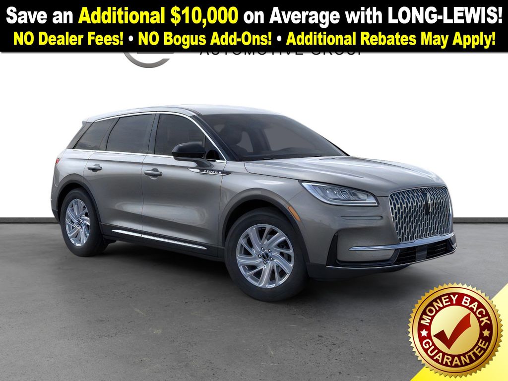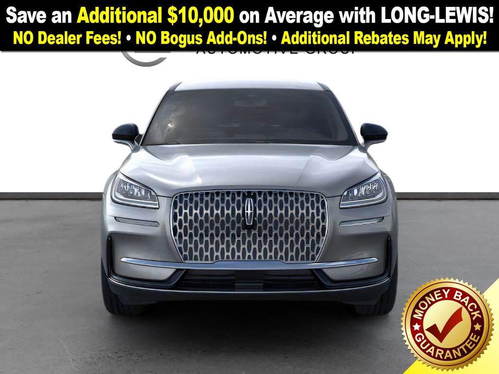 Asher Gray Metallic Clearcoat 2025 Lincoln Corsair Premiere fctp FWD 8-Speed Automatic 2.0L I4 4-Wheel Disc Brakes, 9 Speakers, ABS brakes, Air Conditioning, Alexa Built-In, Alloy wheels, AM/FM radio: SiriusXM with 360L, Apple CarPlay/Android Auto, Auto High-beam Headlights, Auto-dimming Rear-View mirror, Automatic temperature control, Brake assist, Bumpers: body-color, Compass, Delay-off headlights, Driver door bin, Driver vanity mirror, Dual front impact airbags, Dual front side impact airbags, Electronic Stability Control, Emergency communication system: 911 Assist, Four wheel independent suspension, Front anti-roll bar, Front Bucket Seats, Front Center Armrest, Front dual zone A/C, Front reading lights, Fully automatic headlights, Heated door mirrors, Heated front seats, Illuminated entry, Knee airbag, Leather steering wheel, Lincoln Soft Touch Heated Front Captain's Chairs, Low tire pressure warning, Memory seat, Navigation system: Connected Navigation (4-year trial), Occupant sensing airbag, Outside temperature display, Overhead airbag, Overhead console, Panic alarm, Passenger door bin, Passenger vanity mirror, Power door mirrors, Power driver seat, Power Liftgate, Power passenger seat, Power steering, Power windows, Radio data system, Radio: Lincoln Premium Audio System w/MP3, Rear anti-roll bar, Rear Parking Sensors, Rear reading lights, Rear seat center armrest, Rear window defroster, Rear window wiper, Remote keyless entry, Security system, SiriusXM w/360L Radio, Speed control, Speed-sensing steering, Speed-Sensitive Wipers, Split folding rear seat, Spoiler, Steering wheel mounted A/C controls, Steering wheel mounted audio controls, SYNC 4 Communications & Entertainment System, Tachometer, Telescoping steering wheel, Tilt steering wheel, Traction control, Trip computer, Variably intermittent wipers, Wheels: 18" Warm Painted Alloy.