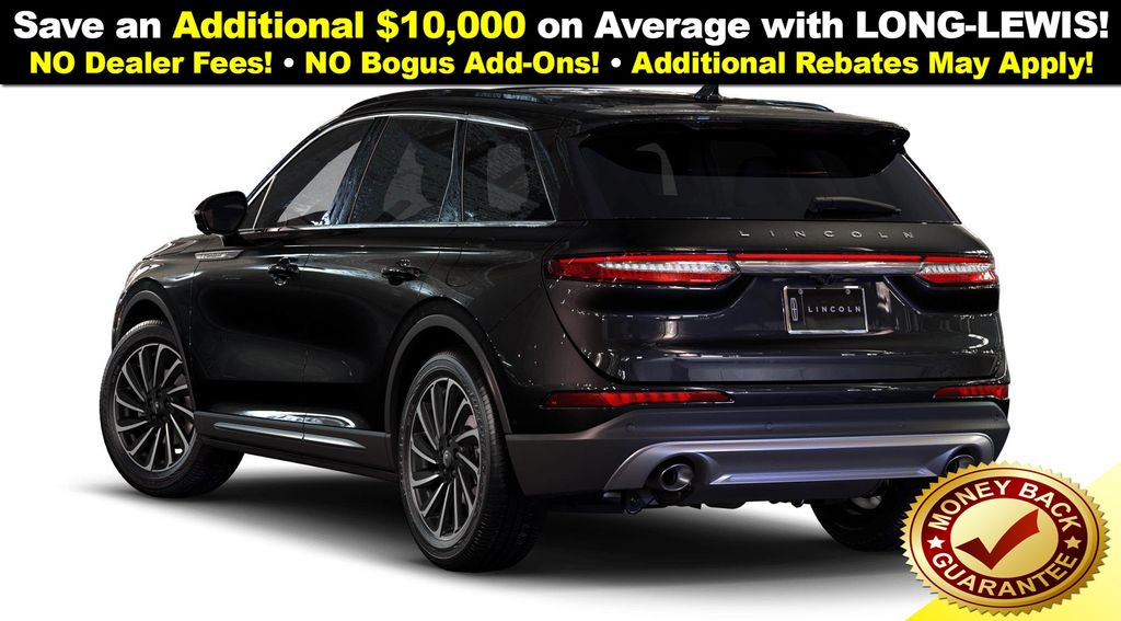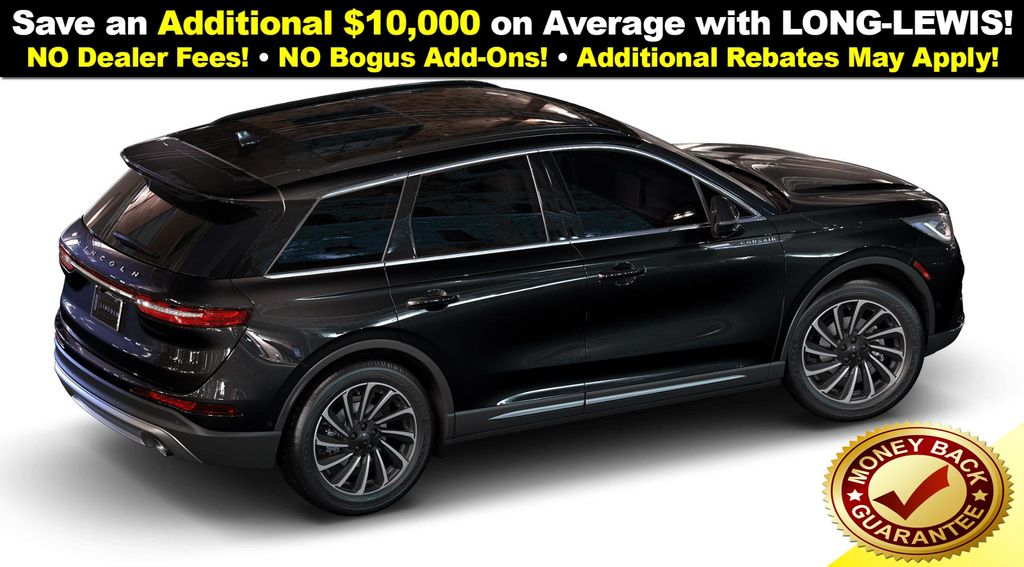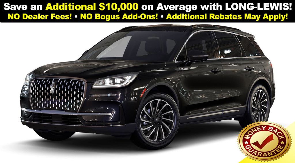 Infinite Black Metallic Clearcoat 2025 Lincoln Corsair Reserve NLT FWD 8-Speed Automatic 2.0L I4 19" Bright Machined Aluminum Wheels, 2 Additional USB Ports in Rear of Center Console, 4-Wheel Disc Brakes, 60/40 EasyFold Rear Seat w/Power Seatback Release, 9 Speakers, ABS brakes, Air Conditioning, Alexa Built-In, Alloy wheels, AM/FM radio: SiriusXM with 360L, Apple CarPlay/Android Auto, Auto Air Refresh (Ultra Fresh Cabin), Auto High-beam Headlights, Auto-dimming Rear-View mirror, Automatic temperature control, Black Roof Rack Side Rails, Brake assist, Bumpers: body-color, Compass, Delay-off headlights, Driver door bin, Driver State Detection, Driver vanity mirror, Dual front impact airbags, Dual front side impact airbags, Electronic Stability Control, Emergency communication system: 911 Assist, Equipment Group 202A, Four wheel independent suspension, Frameless Auto Dimming Rearview Mirror, Front anti-roll bar, Front Bucket Seats, Front Center Armrest, Front dual zone A/C, Front reading lights, Fully automatic headlights, Hands-Free Liftgate, Head-Up Display, Heated door mirrors, Heated front seats, Heated Rear Seat, Heated Sideview Mirrors, Heated Steering Wheel, Heated/Ventilated Driver & Front Passenger Seats, Illuminated entry, Knee airbag, Leather steering wheel, Lincoln BlueCruise (4 Years Included), Low tire pressure warning, Memory seat, Navigation system: Connected Navigation (4-year trial), Occupant sensing airbag, Outside temperature display, Overhead airbag, Overhead console, Panic alarm, Panoramic Vista Roof w/Power Shade, Passenger door bin, Passenger vanity mirror, Phone As A Key (PAAK), Power door mirrors, Power driver seat, Power Liftgate, Power passenger seat, Power steering, Power Tilt/Telescoping Steering Column w/Memory, Power windows, Premium Leather-Trimmed Heated Captain's Chairs, Radio data system, Radio: Lincoln Premium Audio System w/MP3, Radio: Revel Audio System w/HD Radio & MP3, Rain Sensing Wipers, Rear anti-roll bar, Rear Parking Sensors, Rear reading lights, Rear seat center armrest, Rear window defroster, Rear window wiper, Remote keyless entry, Security system, SiriusXM w/360L Radio, Speed control, Speed-sensing steering, Speed-Sensitive Wipers, Split folding rear seat, Spoiler, Steering wheel mounted A/C controls, Steering wheel mounted audio controls, SYNC 4 Communications & Entertainment System, Tachometer, Telescoping steering wheel, Tilt steering wheel, Traction control, Trip computer, Universal Garage Door Opener, Variably intermittent wipers, Windshield Wiper De-Icer, Wireless Charging Pad.