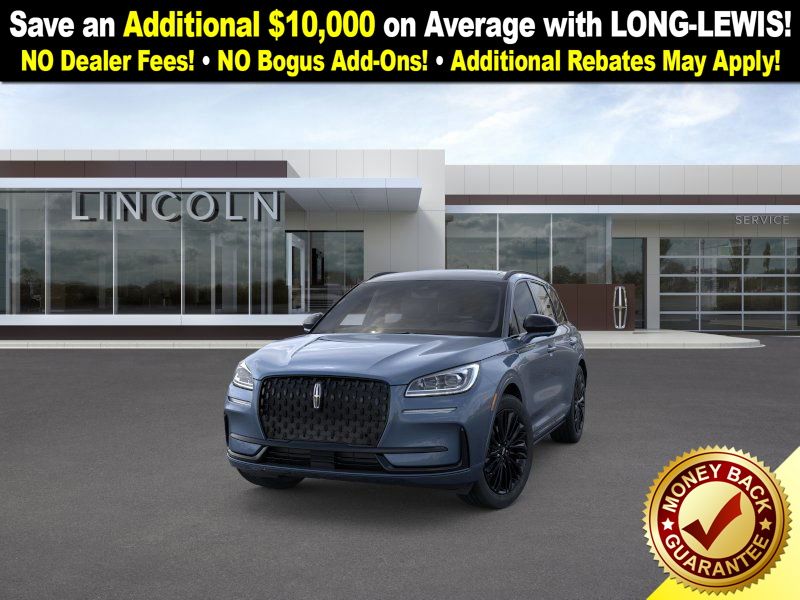 Whisper Blue Metallic Clearcoat 2025 Lincoln Corsair Plug-In Hybrid Grand Touring fctp AWD eCVT 2.5L i-VCT 2.5L i-VCT, 19" Bright Machined Aluminum Wheels, 2 Additional USB Ports in Rear of Center Console, 360-Degree Camera, 4-Wheel Disc Brakes, 60/40 EasyFold Rear Seat w/Power Seatback Release, 9 Speakers, ABS brakes, Adaptive suspension, Air Conditioning, Alexa Built-In, Alloy wheels, AM/FM radio: SiriusXM with 360L, Apple CarPlay/Android Auto, Auto High-beam Headlights, Auto-dimming Rear-View mirror, Automatic temperature control, Body-Color Exterior Elements, Brake assist, Bumpers: body-color, Compass, Delay-off headlights, Driver door bin, Driver vanity mirror, Dual front impact airbags, Dual front side impact airbags, Electronic Stability Control, Emergency communication system: 911 Assist, Equipment Group 301A, Four wheel independent suspension, Frameless Auto Dimming Rearview Mirror, Front anti-roll bar, Front Bucket Seats, Front Center Armrest, Front dual zone A/C, Front Parking Sensors, Front reading lights, Fully automatic headlights, Hands-Free Liftgate, Heated door mirrors, Heated front seats, Heated Sideview Mirrors, Heated Steering Wheel, Heated/Ventilated Driver & Front Passenger Seats, Illuminated entry, Jet Appearance Package, Knee airbag, Leather steering wheel, Low tire pressure warning, Memory seat, Navigation system: Connected Navigation (4-year trial), Occupant sensing airbag, Outside temperature display, Overhead airbag, Overhead console, Panic alarm, Passenger door bin, Passenger vanity mirror, Phone As A Key (PAAK), Pillar Black Exterior Elements, Post-Collision Braking, Power door mirrors, Power driver seat, Power Liftgate, Power moonroof: Panoramic Vista Roof, Power passenger seat, Power steering, Power Tilt/Telescoping Steering Column w/Memory, Power windows, Premium Leather-Trimmed Heated Captain's Chairs, Radio data system, Radio: Lincoln Premium Audio System w/MP3, Rain Sensing Wipers, Rear anti-roll bar, Rear Parking Sensors, Rear reading lights, Rear seat center armrest, Rear window defroster, Rear window wiper, Remote keyless entry, Reverse Brake Assist, Security system, SiriusXM w/360L Radio, Speed control, Speed-sensing steering, Speed-Sensitive Wipers, Split folding rear seat, Spoiler, Steering wheel mounted A/C controls, Steering wheel mounted audio controls, SYNC 4 Communications & Entertainment System, Tachometer, Telescoping steering wheel, Tilt steering wheel, Traction control, Trip computer, Universal Garage Door Opener, Variably intermittent wipers, Wheels: 20" Black Aluminum, Windshield Wiper De-Icer, Wireless Charging Pad, 2.5L i-VCT. Price includes: $2000 - Wishlist Bonus Cash. Exp. 01/02/2026 $3000 - Retail Customer Cash. Exp. 01/05/2026