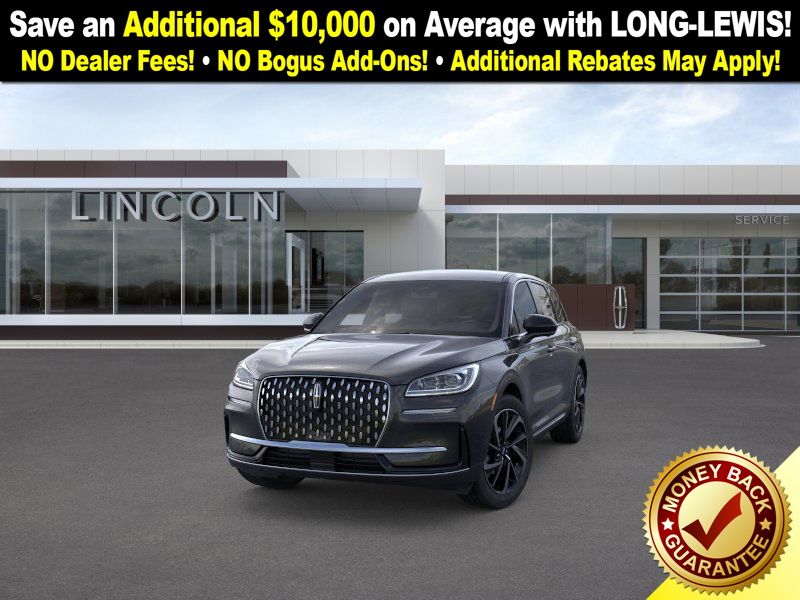 Infinite Black Metallic Clearcoat 2025 Lincoln Corsair Reserve NLT FWD 8-Speed Automatic 2.0L I4 19" Bright Machined Aluminum Wheels, 2 Additional USB Ports in Rear of Center Console, 360-Degree Camera, 4-Wheel Disc Brakes, 60/40 EasyFold Rear Seat w/Power Seatback Release, 9 Speakers, ABS brakes, Air Conditioning, Alexa Built-In, Alloy wheels, AM/FM radio: SiriusXM with 360L, Apple CarPlay/Android Auto, Auto High-beam Headlights, Auto-dimming Rear-View mirror, Automatic temperature control, Brake assist, Bumpers: body-color, Compass, Delay-off headlights, Driver door bin, Driver vanity mirror, Dual front impact airbags, Dual front side impact airbags, Electronic Stability Control, Emergency communication system: 911 Assist, Equipment Group 201A, Four wheel independent suspension, Frameless Auto Dimming Rearview Mirror, Front anti-roll bar, Front Bucket Seats, Front Center Armrest, Front dual zone A/C, Front Parking Sensors, Front reading lights, Fully automatic headlights, Hands-Free Liftgate, Heated door mirrors, Heated front seats, Heated Sideview Mirrors, Heated Steering Wheel, Heated/Ventilated Driver & Front Passenger Seats, Illuminated entry, Knee airbag, Leather steering wheel, Low tire pressure warning, Memory seat, Navigation system: Connected Navigation (4-year trial), Occupant sensing airbag, Outside temperature display, Overhead airbag, Overhead console, Panic alarm, Passenger door bin, Passenger vanity mirror, Phone As A Key (PAAK), Post-Collision Braking, Power door mirrors, Power driver seat, Power Liftgate, Power passenger seat, Power steering, Power Tilt/Telescoping Steering Column w/Memory, Power windows, Premium Leather-Trimmed Heated Captain's Chairs, Radio data system, Radio: Lincoln Premium Audio System w/MP3, Rain Sensing Wipers, Rear anti-roll bar, Rear Parking Sensors, Rear reading lights, Rear seat center armrest, Rear window defroster, Rear window wiper, Remote keyless entry, Reverse Brake Assist, Security system, SiriusXM w/360L Radio, Speed control, Speed-sensing steering, Speed-Sensitive Wipers, Split folding rear seat, Spoiler, Steering wheel mounted A/C controls, Steering wheel mounted audio controls, SYNC 4 Communications & Entertainment System, Tachometer, Telescoping steering wheel, Tilt steering wheel, Traction control, Trip computer, Universal Garage Door Opener, Variably intermittent wipers, Wheels: 20" Bright Machined Aluminum, Windshield Wiper De-Icer, Wireless Charging Pad.