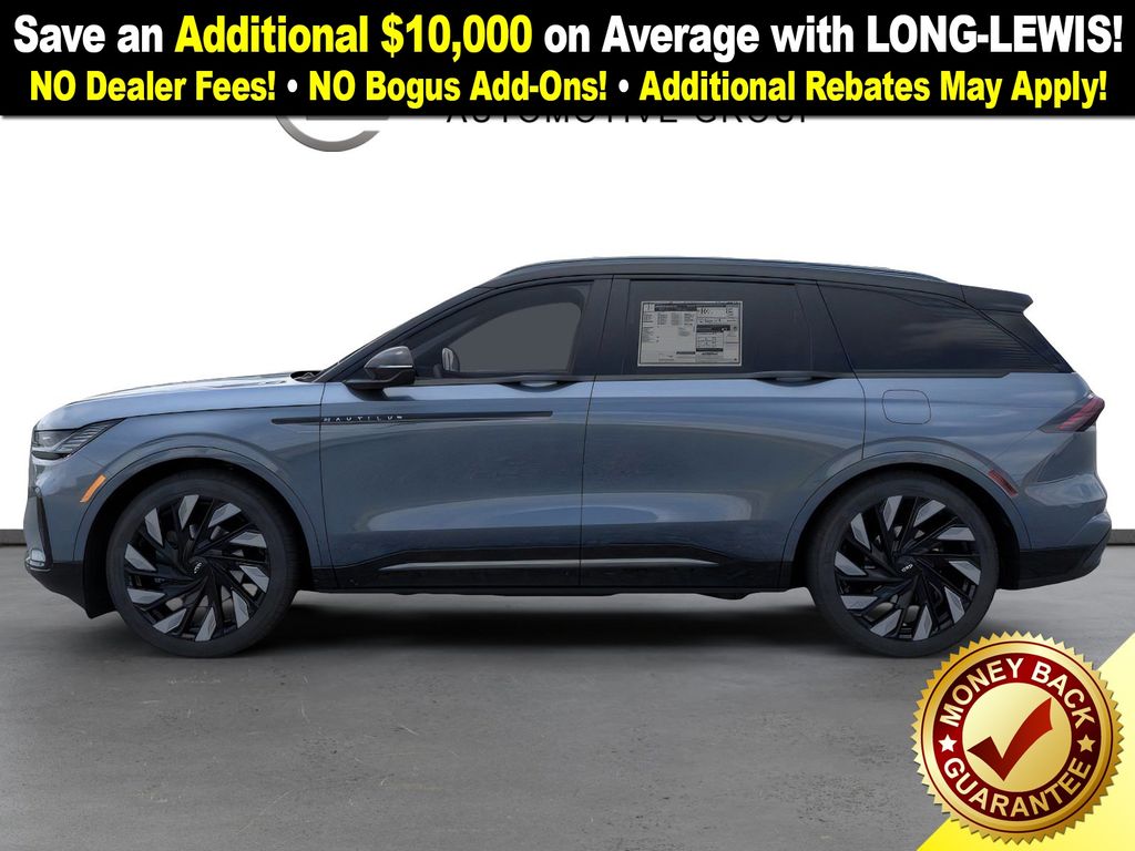Priced below KBB Fair Purchase Price! Blue Metallic 2025 Lincoln Nautilus Reserve fctp AWD CVT 2.0L GTDI FHEV 2.0L GTDI FHEV, 10 Speakers, 110V Power Converter, 4-Wheel Disc Brakes, ABS brakes, Adaptive suspension, Air Conditioning, Alloy wheels, AM/FM radio: SiriusXM with 360L, Apple CarPlay/Android Auto, Auto Air Refresh, Auto High-beam Headlights, Auto tilt-away steering wheel, Auto-dimming Rear-View mirror, Automatic temperature control, Black Exterior Elements, BlueCruise Equipped (4-Years Included), Body Color, Brake assist, Bumpers: body-color, Compass, Delay-off headlights, Digital Scent, Driver door bin, Driver vanity mirror, Dual front impact airbags, Dual front side impact airbags, Electronic Stability Control, Emergency communication system: 911 Assist, Equipment Group 202A Reserve II, Exterior Parking Camera Rear, Four wheel independent suspension, Front anti-roll bar, Front Bucket Seats, Front Center Armrest w/Storage, Front dual zone A/C, Front reading lights, Fully automatic headlights, Garage door transmitter: HomeLink, Hands-Free Power Liftgate, Heated door mirrors, Heated front seats, Heated steering wheel, Illuminated entry, Jet Appearance Package, Knee airbag, Leather steering wheel, Lincoln Digital Experience, Low tire pressure warning, Memory seat, Navigation System, Occupant sensing airbag, Outside temperature display, Overhead airbag, Overhead console, Panic alarm, Panoramic Vista Roof w/Powershade, Passenger door bin, Passenger vanity mirror, Power door mirrors, Power driver seat, Power Liftgate, Power passenger seat, Power steering, Power windows, Prem Lthr-Trimmed Htd/Ventilated Captain's Chairs, Radio data system, Radio: AM/FM Revel Audio System, Rain sensing wipers, Rear anti-roll bar, Rear Heated Seats w/Switch Control, Rear reading lights, Rear seat center armrest, Rear window defroster, Rear window wiper, Remote keyless entry, Security system, SiriusXM w/360L, Speed control, Speed-sensing steering, Speed-Sensitive Wipers, Split folding rear seat, Spoiler, Steering wheel memory, Steering wheel mounted audio controls, Tachometer, Telescoping steering wheel, Tilt steering wheel, Traction control, Trip computer, Turn signal indicator mirrors, Variably intermittent wipers, Wheels: 21" Bright Machined Aluminum, Wheels: 22" Satin Dark Luster Aluminum, 2.0L GTDI FHEV.