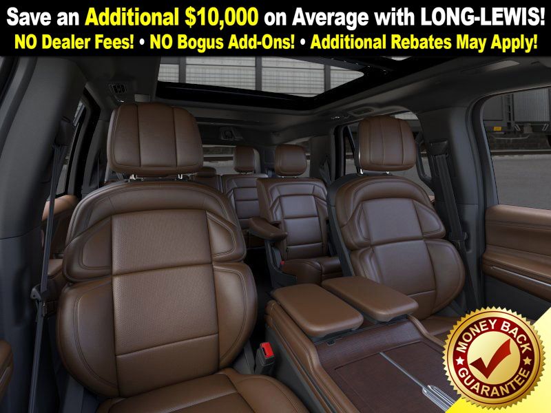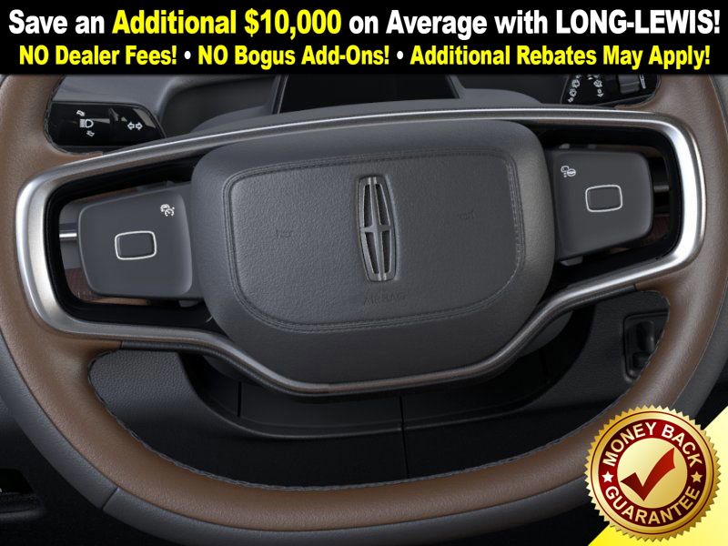 4WD, Surf Hot Chocolate Lthr Leather, 28 Speakers, 3rd row seats: split-bench, 4-Wheel Disc Brakes, ABS brakes, Adaptive suspension, Adjustable pedals, Air Conditioning, Alloy wheels, AM/FM radio: SiriusXM with 360L, Apple CarPlay/Android Auto, Audio memory, Auto High-beam Headlights, Auto Htd & Ventilated Premium Lthr Captain's Chair, Auto Start-Stop Technology, Auto tilt-away steering wheel, Auto-dimming door mirrors, Auto-dimming Rear-View mirror, Auto-leveling suspension, Automatic temperature control, Brake assist, Bumpers: body-color, Compass, Delay-off headlights, Driver door bin, Driver vanity mirror, Driver's Seat Mounted Armrest, Dual front impact airbags, Dual front side impact airbags, Electronic Stability Control, Emergency communication system: 911 Assist, Exterior Parking Camera Rear, Four wheel independent suspension, Front anti-roll bar, Front Bucket Seats, Front dual zone A/C, Front reading lights, Fully automatic headlights, Garage door transmitter, Heated door mirrors, Heated front seats, Heated rear seats, Heated steering wheel, HVAC memory, Illuminated entry, Leather steering wheel, Lincoln Connect, Lincoln Premium Connectivity, Low tire pressure warning, Memory seat, Navigation system: Connected Navigation (1-year trial), Occupant sensing airbag, Outside temperature display, Overhead airbag, Overhead console, Panic alarm, Passenger door bin, Passenger seat mounted armrest, Passenger vanity mirror, Pedal memory, Power adjustable rear head restraints, Power door mirrors, Power driver seat, Power moonroof: Panoramic Vista Roof, Power passenger seat, Power steering, Power windows, Radio data system, Radio: Revel Ultima 3D AM/FM/HD Audio System, Rain sensing wipers, Rear air conditioning, Rear anti-roll bar, Rear audio controls, Rear reading lights, Rear window defroster, Rear window wiper, Reclining 3rd row seat, Remote keyless entry, Security system, SiriusXM w/360L, Speed control, Speed-sensing steering, Speed-Sensitive Wipers, Split folding rear seat, Spoiler, Steering wheel memory, Steering wheel mounted audio controls, Tachometer, Telescoping steering wheel, Tilt steering wheel, Traction control, Trip computer, Turn signal indicator mirrors, Variably intermittent wipers, Ventilated front seats, and Wheels: 22" Dark Tarnished Aluminum. Price includes: $2000 - Wishlist Bonus Cash. Exp. 01/02/2026