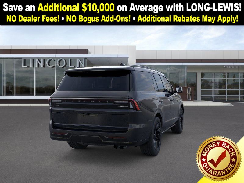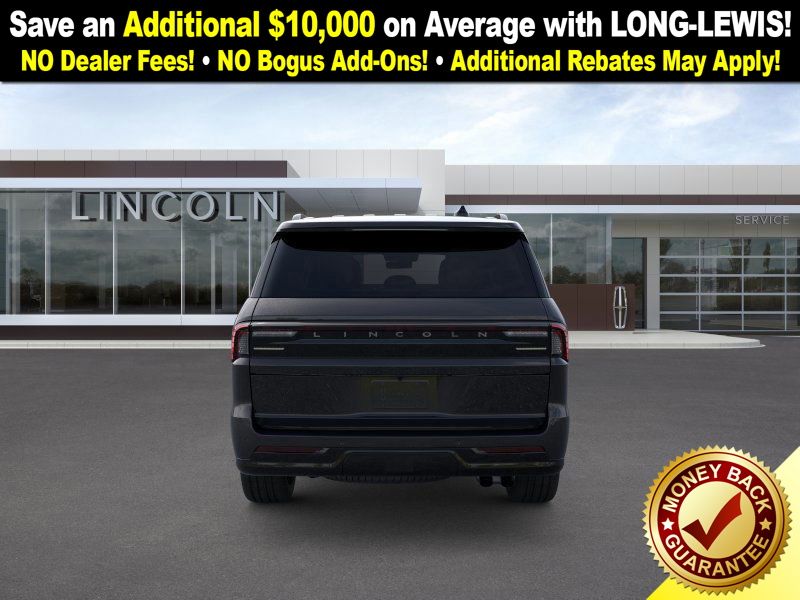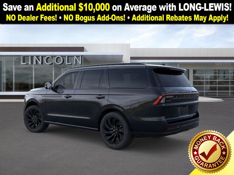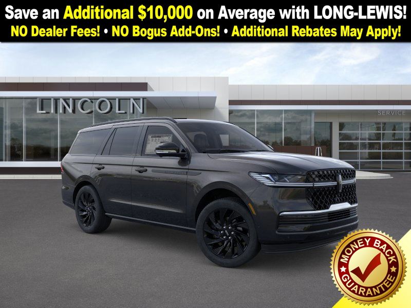 Dealer Discount of $2,384 off MSRP Infinite Black Metallic Clearcoat 2025 Lincoln Navigator Reserve NLT 4WD 10-Speed Automatic 3.5L V6 4WD, Lthr St Sur Blk Onyx Jet Leather, 26mm Engine Radiator, 28 Speakers, 2nd Row Heated & Ventilated Dual Captain's Chair, 3rd row seats: split-bench, 4-Wheel Disc Brakes, ABS brakes, Adaptive suspension, Adjustable pedals, Air Conditioning, Alloy wheels, AM/FM radio: SiriusXM with 360L, Apple CarPlay/Android Auto, Audio memory, Auto High-beam Headlights, Auto Htd & Ventilated Premium Lthr Captain's Chair, Auto Start-Stop Technology, Auto tilt-away steering wheel, Auto-dimming door mirrors, Auto-dimming Rear-View mirror, Auto-leveling suspension, Automatic temperature control, Black Accent Badge, Black Accent Interior Pack, Black Beltline Molding, Black Painted Roof Rails, Brake assist, Bumpers: body-color, Compass, Delay-off headlights, Driver door bin, Driver vanity mirror, Driver's Seat Mounted Armrest, Dual front impact airbags, Dual front side impact airbags, Electronic Stability Control, Emergency communication system: 911 Assist, Exterior Parking Camera Rear, Four wheel independent suspension, Front anti-roll bar, Front Bucket Seats, Front Bumper Fascia, Front dual zone A/C, Front reading lights, Fully automatic headlights, Garage door transmitter, Heated door mirrors, Heated front seats, Heated rear seats, Heated steering wheel, Heavy-Duty Trailer Tow Package, HVAC memory, Illuminated entry, Jet Appearance Package, Leather steering wheel, Lincoln Connect, Lincoln Lit Star, Lincoln Premium Connectivity, Low tire pressure warning, Memory seat, Navigation system: Connected Navigation (1-year trial), Occupant sensing airbag, Outside temperature display, Overhead airbag, Overhead console, Panic alarm, Passenger door bin, Passenger seat mounted armrest, Passenger vanity mirror, Pedal memory, Power adjustable rear head restraints, Power door mirrors, Power driver seat, Power moonroof: Panoramic Vista Roof, Power passenger seat, Power steering, Power windows, Radio data system, Radio: Revel Ultima 3D AM/FM/HD Audio System, Rain sensing wipers, Rear air conditioning, Rear anti-roll bar, Rear audio controls, Rear reading lights, Rear window defroster, Rear window wiper, Reclining 3rd row seat, Remote keyless entry, Security system, SiriusXM w/360L, Speed control, Speed-sensing steering, Speed-Sensitive Wipers, Split folding rear seat, Spoiler, Steering wheel memory, Steering wheel mounted audio controls, Tachometer, Telescoping steering wheel, Tilt steering wheel, Traction control, Trailer Brake Controller, Trip computer, Turn signal indicator mirrors, Unique Lincoln Grille Pillar Black Surround, Variably intermittent wipers, Ventilated front seats, Wheels: 22" Dark Tarnished Aluminum, Wheels: 22" High-Gloss Ebony Aluminum, 4WD, Lthr St Sur Blk Onyx Jet Leather. Price includes: $2000 - Wishlist Bonus Cash. Exp. 01/02/2026