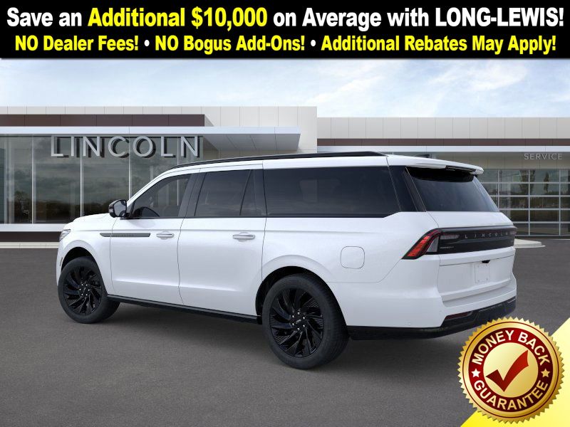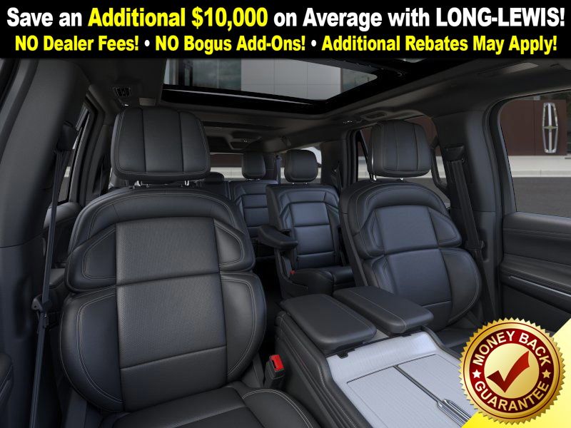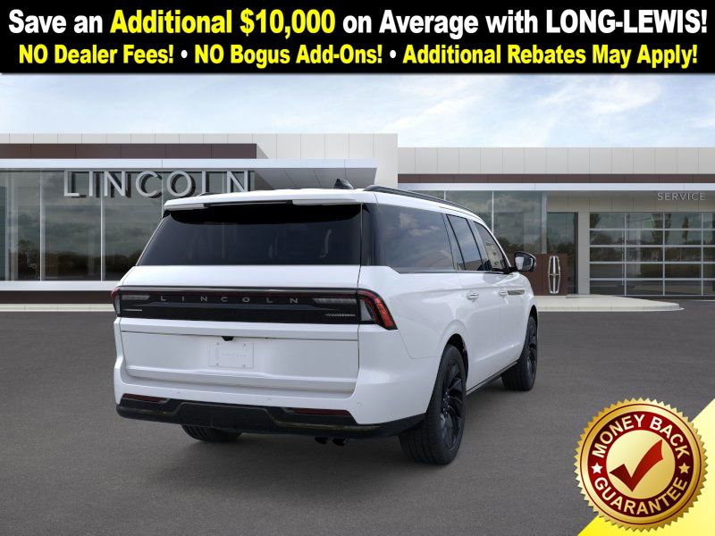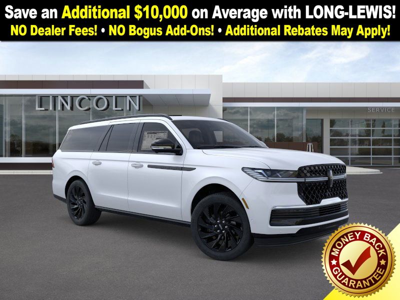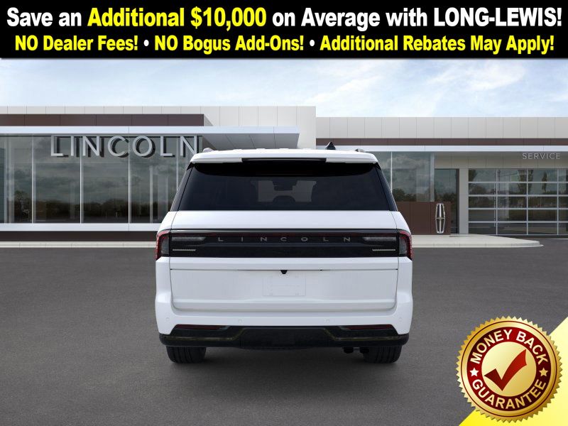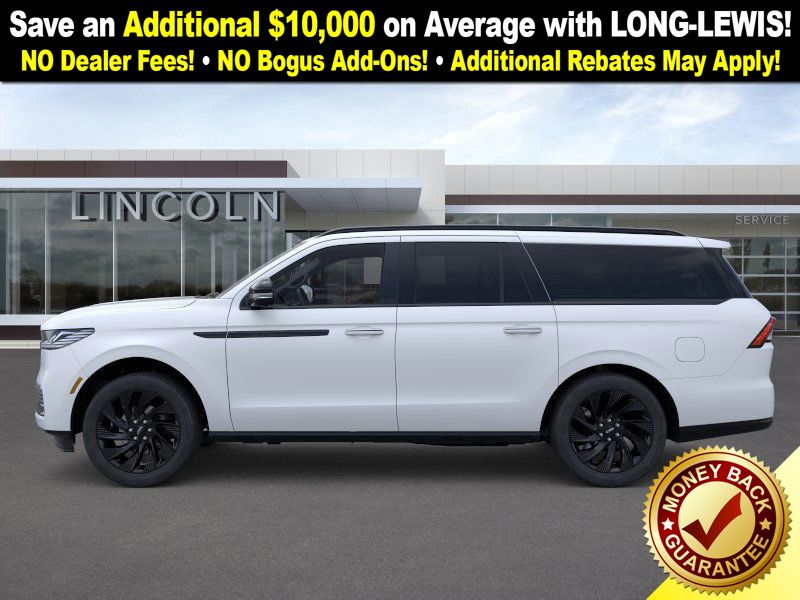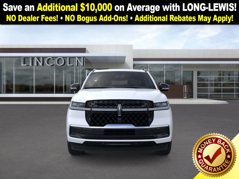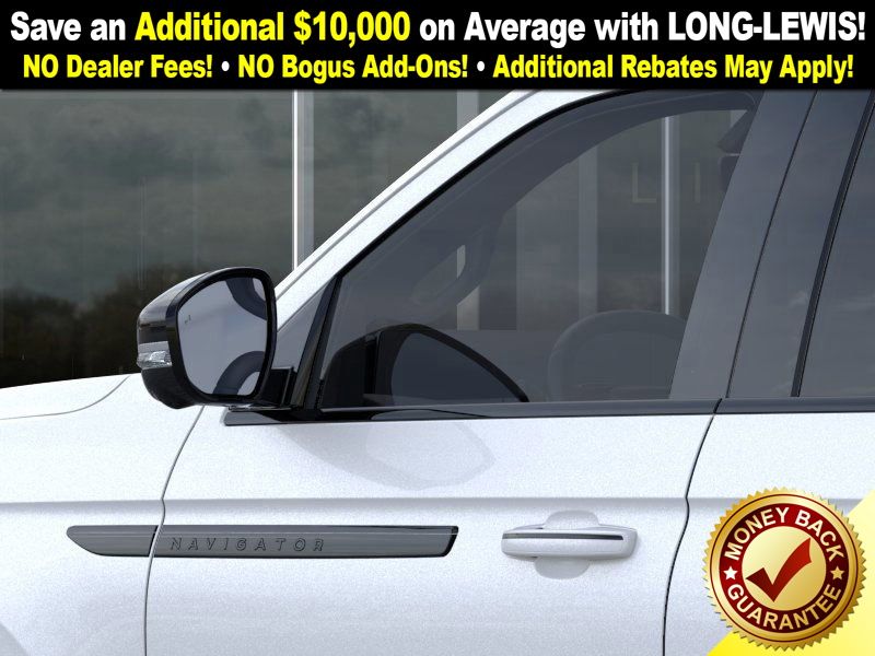 Dealer Discount of $2,423 off MSRP Pristine White Metallic Tri-Coat 2025 Lincoln Navigator L Reserve NLT 4WD 10-Speed Automatic 3.5L V6 26mm Engine Radiator, 28 Speakers, 3rd row seats: split-bench, 4-Wheel Disc Brakes, ABS brakes, Adaptive suspension, Adjustable pedals, Air Conditioning, Alloy wheels, AM/FM radio: SiriusXM with 360L, Apple CarPlay/Android Auto, Audio memory, Auto High-beam Headlights, Auto Htd & Ventilated Premium Lthr Captain's Chair, Auto Start-Stop Technology, Auto tilt-away steering wheel, Auto-dimming door mirrors, Auto-dimming Rear-View mirror, Auto-leveling suspension, Automatic temperature control, Black Accent Badge, Black Accent Interior Pack, Black Beltline Molding, Black Painted Roof Rails, Brake assist, Bumpers: body-color, Compass, Delay-off headlights, Driver door bin, Driver vanity mirror, Driver's Seat Mounted Armrest, Dual front impact airbags, Dual front side impact airbags, Electronic Stability Control, Emergency communication system: 911 Assist, Exterior Parking Camera Rear, Four wheel independent suspension, Front anti-roll bar, Front Bucket Seats, Front Bumper Fascia, Front dual zone A/C, Front reading lights, Fully automatic headlights, Garage door transmitter, Heated door mirrors, Heated front seats, Heated rear seats, Heated steering wheel, Heavy-Duty Trailer Tow Package, HVAC memory, Illuminated entry, Jet Appearance Package, Leather steering wheel, Lincoln Connect, Lincoln Lit Star, Lincoln Premium Connectivity, Low tire pressure warning, Memory seat, Navigation system: Connected Navigation (1-year trial), Occupant sensing airbag, Outside temperature display, Overhead airbag, Overhead console, Panic alarm, Passenger door bin, Passenger seat mounted armrest, Passenger vanity mirror, Pedal memory, Power adjustable front head restraints, Power adjustable rear head restraints, Power door mirrors, Power driver seat, Power moonroof, Power passenger seat, Power steering, Power windows, Radio data system, Radio: Revel Ultima 3D AM/FM/HD Audio System, Rain sensing wipers, Rear air conditioning, Rear anti-roll bar, Rear audio controls, Rear reading lights, Rear window defroster, Rear window wiper, Reclining 3rd row seat, Remote keyless entry, Security system, SiriusXM w/360L, Speed control, Speed-sensing steering, Speed-Sensitive Wipers, Split folding rear seat, Spoiler, Steering wheel memory, Steering wheel mounted audio controls, Tachometer, Telescoping steering wheel, Tilt steering wheel, Traction control, Trailer Brake Controller, Trip computer, Turn signal indicator mirrors, Unique Lincoln Grille Pillar Black Surround, Variably intermittent wipers, Ventilated front seats, Wheels: 22" Dark Tarnished Aluminum, Wheels: 22" High-Gloss Ebony Aluminum. Price includes: $2000 - Wishlist Bonus Cash. Exp. 01/02/2026