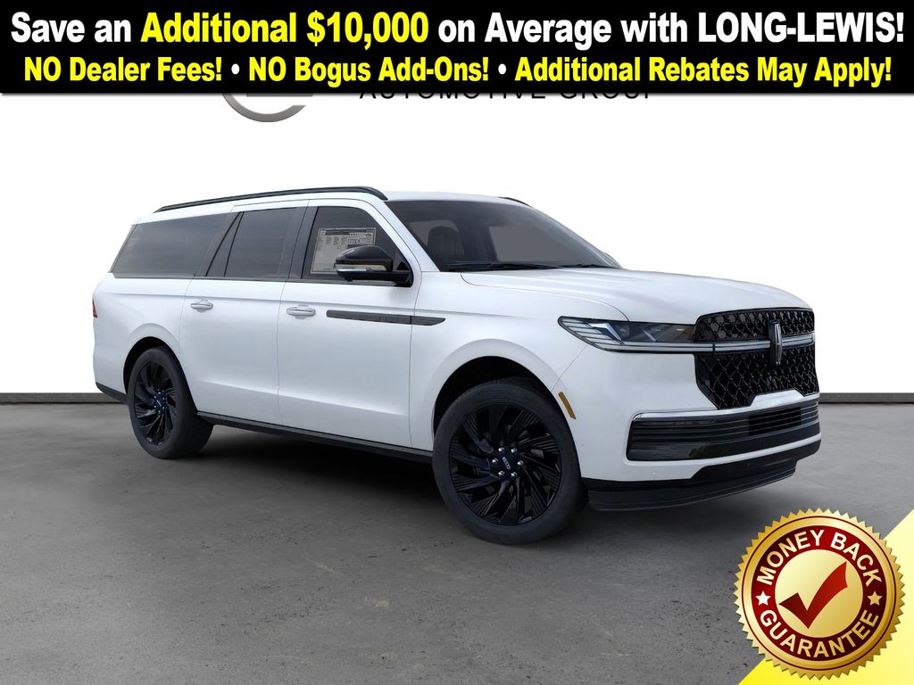 Dealer Discount of $5,132 off MSRP Pristine White Metallic Tri-Coat 2025 Lincoln Navigator L Reserve NLT 4WD 10-Speed Automatic 3.5L V6 26mm Engine Radiator, 28 Speakers, 3rd row seats: split-bench, 4-Wheel Disc Brakes, ABS brakes, Adaptive suspension, Adjustable pedals, Air Conditioning, Alloy wheels, AM/FM radio: SiriusXM with 360L, Apple CarPlay/Android Auto, Audio memory, Auto High-beam Headlights, Auto Htd & Ventilated Premium Lthr Captain's Chair, Auto Start-Stop Technology, Auto tilt-away steering wheel, Auto-dimming door mirrors, Auto-dimming Rear-View mirror, Auto-leveling suspension, Automatic temperature control, Black Accent Badge, Black Accent Interior Pack, Black Beltline Molding, Black Painted Roof Rails, Brake assist, Bumpers: body-color, Compass, Delay-off headlights, Driver door bin, Driver vanity mirror, Driver's Seat Mounted Armrest, Dual front impact airbags, Dual front side impact airbags, Electronic Stability Control, Emergency communication system: 911 Assist, Equipment Group 202A Reserve II, Exterior Parking Camera Rear, Four wheel independent suspension, Front anti-roll bar, Front Bucket Seats, Front Bumper Fascia, Front dual zone A/C, Front reading lights, Fully automatic headlights, Garage door transmitter, Heated door mirrors, Heated front seats, Heated rear seats, Heated steering wheel, Heavy-Duty Trailer Tow Package, HVAC memory, Illuminated entry, Jet Appearance Package, Leather steering wheel, Lincoln Connect, Lincoln Lit Star, Lincoln Premium Connectivity, Low tire pressure warning, Memory seat, Navigation system: Connected Navigation (1-year trial), Occupant sensing airbag, Outside temperature display, Overhead airbag, Overhead console, Panic alarm, Passenger door bin, Passenger seat mounted armrest, Passenger vanity mirror, Pedal memory, Power adjustable front head restraints, Power adjustable rear head restraints, Power door mirrors, Power driver seat, Power moonroof, Power passenger seat, Power steering, Power windows, Radio data system, Radio: Revel Ultima 3D AM/FM/HD Audio System, Rain sensing wipers, Rear air conditioning, Rear anti-roll bar, Rear audio controls, Rear reading lights, Rear window defroster, Rear window wiper, Reclining 3rd row seat, Remote keyless entry, Security system, SiriusXM w/360L, Speed control, Speed-sensing steering, Speed-Sensitive Wipers, Split folding rear seat, Spoiler, Steering wheel memory, Steering wheel mounted audio controls, Tachometer, Telescoping steering wheel, Tilt steering wheel, Traction control, Trailer Brake Controller, Trip computer, Turn signal indicator mirrors, Unique Lincoln Grille Pillar Black Surround, Variably intermittent wipers, Ventilated front seats, Wheels: 22" Dark Tarnished Aluminum, Wheels: 22" High-Gloss Ebony Aluminum. Price includes: $1000 - Bonus Cash. Exp. 03/31/2026