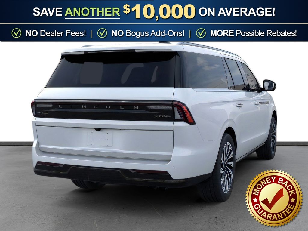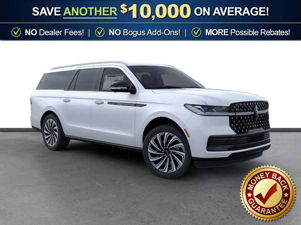 Dealer Discount of $4,158 off MSRP Priced below KBB Fair Purchase Price! Crystal White Metallic Clearcoat 2025 Lincoln Navigator L Black Label NLT 4WD 10-Speed Automatic 3.5L V6 28 Speakers, 3rd row seats: split-bench, 4-Wheel Disc Brakes, A/V remote, ABS brakes, Adaptive suspension, Adjustable pedals, Air Conditioning, Alloy wheels, AM/FM radio: SiriusXM with 360L, Apple CarPlay/Android Auto, Audio memory, Auto High-beam Headlights, Auto Htd & Ventilated Opulence Lthr Capt Chair, Auto Htd & Ventilated Opulence Lthr Capt Chair (V), Auto Start-Stop Technology, Auto tilt-away steering wheel, Auto-dimming door mirrors, Auto-dimming Rear-View mirror, Auto-leveling suspension, Automatic temperature control, Brake assist, Bumpers: body-color, Compass, Delay-off headlights, Driver door bin, Driver vanity mirror, Driver's Seat Mounted Armrest, Dual front impact airbags, Dual front side impact airbags, Electronic Stability Control, Emergency communication system: 911 Assist, Enlighten Theme, Equipment Group 800A Black Label, Exterior Parking Camera Rear, Four wheel independent suspension, Front anti-roll bar, Front Bucket Seats, Front dual zone A/C, Front reading lights, Fully automatic headlights, Garage door transmitter, Head restraints memory, Headphones, Heated door mirrors, Heated front seats, Heated rear seats, Heated steering wheel, HVAC memory, Illuminated entry, Invitation Theme, Leather steering wheel, Lincoln Connect, Lincoln Premium Connectivity, Low tire pressure warning, Memory seat, Navigation system: Connected Navigation (1-year trial), Occupant sensing airbag, Outside temperature display, Overhead airbag, Overhead console, Panic alarm, Passenger door bin, Passenger seat mounted armrest, Passenger vanity mirror, Pedal memory, Power adjustable front head restraints, Power adjustable rear head restraints, Power door mirrors, Power driver seat, Power moonroof, Power passenger seat, Power steering, Power windows, Radio data system, Radio: Revel Ultima 3D AM/FM/HD Audio System, Rain sensing wipers, Rear air conditioning, Rear anti-roll bar, Rear audio controls, Rear reading lights, Rear seat center armrest, Rear window defroster, Rear window wiper, Reclining 3rd row seat, Remote keyless entry, Security system, SiriusXM w/360L, Speed control, Speed-sensing steering, Speed-Sensitive Wipers, Split folding rear seat, Spoiler, Steering wheel memory, Steering wheel mounted audio controls, Tachometer, Telescoping steering wheel, Tilt steering wheel, Traction control, Trip computer, Turn signal indicator mirrors, Variably intermittent wipers, Ventilated front seats, Ventilated rear seats, Wheels: 22" High-Gloss Ebony Aluminum. Price includes: $3000 - Retail Customer Cash. Exp. 03/31/2026