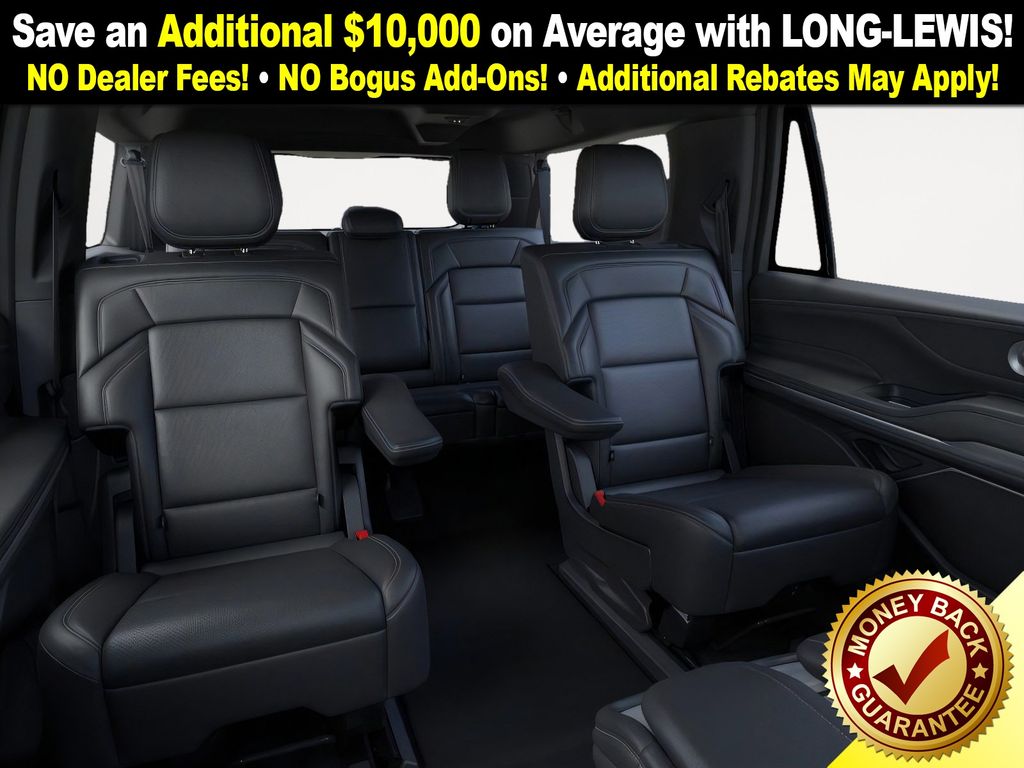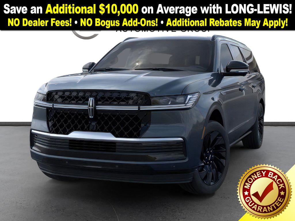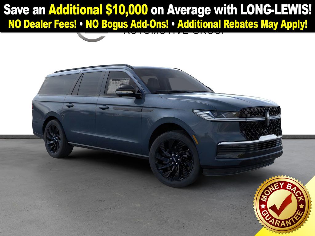 Flight Blue Metallic Clearcoat 2025 Lincoln Navigator L Reserve NLT 4WD 10-Speed Automatic 3.5L V6 28 Speakers, 3rd row seats: split-bench, 4-Wheel Disc Brakes, ABS brakes, Adaptive suspension, Adjustable pedals, Air Conditioning, Alloy wheels, AM/FM radio: SiriusXM with 360L, Apple CarPlay/Android Auto, Audio memory, Auto High-beam Headlights, Auto Htd & Ventilated Premium Lthr Captain's Chair, Auto Start-Stop Technology, Auto tilt-away steering wheel, Auto-dimming door mirrors, Auto-dimming Rear-View mirror, Auto-leveling suspension, Automatic temperature control, Black Accent Badge, Black Accent Interior Pack, Black Beltline Molding, Black Painted Roof Rails, Brake assist, Bumpers: body-color, Compass, Delay-off headlights, Driver door bin, Driver vanity mirror, Driver's Seat Mounted Armrest, Dual front impact airbags, Dual front side impact airbags, Electronic Stability Control, Emergency communication system: 911 Assist, Exterior Parking Camera Rear, Four wheel independent suspension, Front anti-roll bar, Front Bucket Seats, Front Bumper Fascia, Front dual zone A/C, Front reading lights, Fully automatic headlights, Garage door transmitter, Heated door mirrors, Heated front seats, Heated rear seats, Heated steering wheel, HVAC memory, Illuminated entry, Jet Appearance Package, Leather steering wheel, Lincoln Connect, Lincoln Lit Star, Lincoln Premium Connectivity, Low tire pressure warning, Memory seat, Navigation system: Connected Navigation (1-year trial), Occupant sensing airbag, Outside temperature display, Overhead airbag, Overhead console, Panic alarm, Passenger door bin, Passenger seat mounted armrest, Passenger vanity mirror, Pedal memory, Power adjustable front head restraints, Power adjustable rear head restraints, Power door mirrors, Power driver seat, Power moonroof, Power passenger seat, Power steering, Power windows, Radio data system, Radio: Revel Ultima 3D AM/FM/HD Audio System, Rain sensing wipers, Rear air conditioning, Rear anti-roll bar, Rear audio controls, Rear reading lights, Rear window defroster, Rear window wiper, Reclining 3rd row seat, Remote keyless entry, Security system, SiriusXM w/360L, Speed control, Speed-sensing steering, Speed-Sensitive Wipers, Split folding rear seat, Spoiler, Steering wheel memory, Steering wheel mounted audio controls, Tachometer, Telescoping steering wheel, Tilt steering wheel, Traction control, Trip computer, Turn signal indicator mirrors, Unique Lincoln Grille Pillar Black Surround, Variably intermittent wipers, Ventilated front seats, Wheels: 22" Dark Tarnished Aluminum, Wheels: 22" High-Gloss Ebony Aluminum.