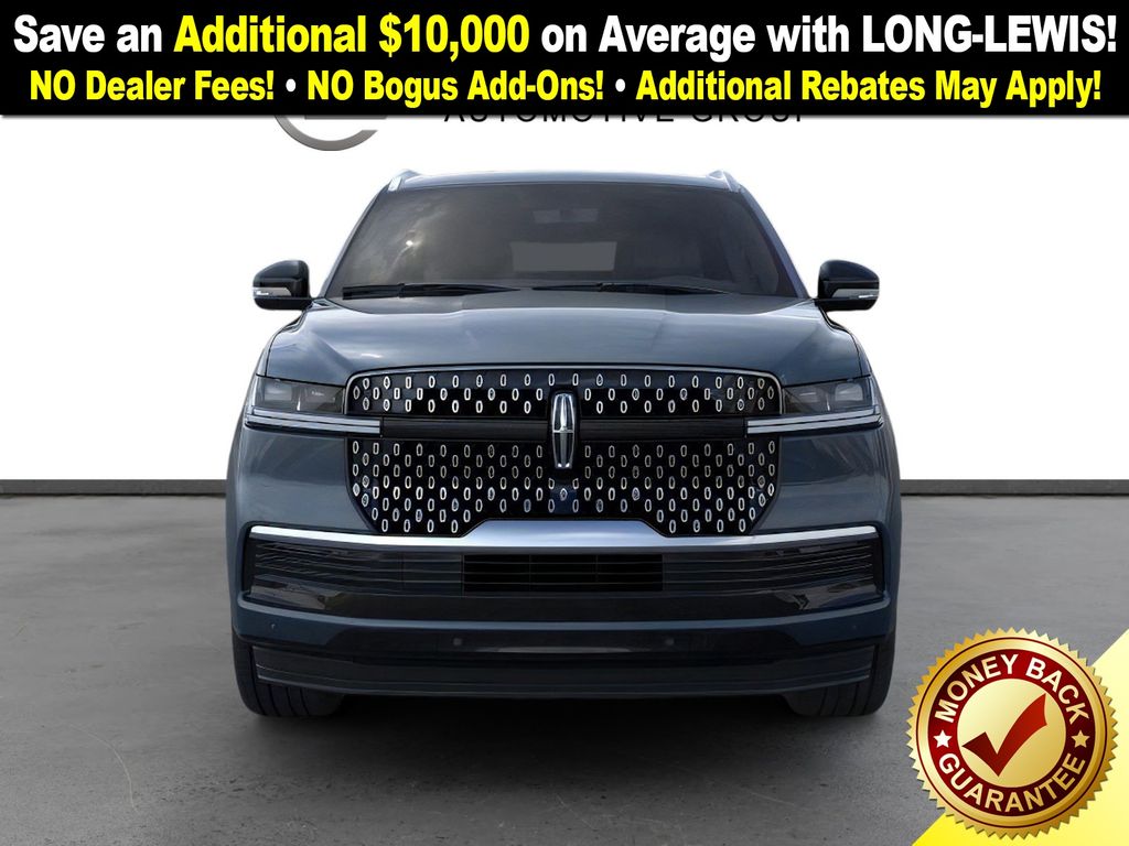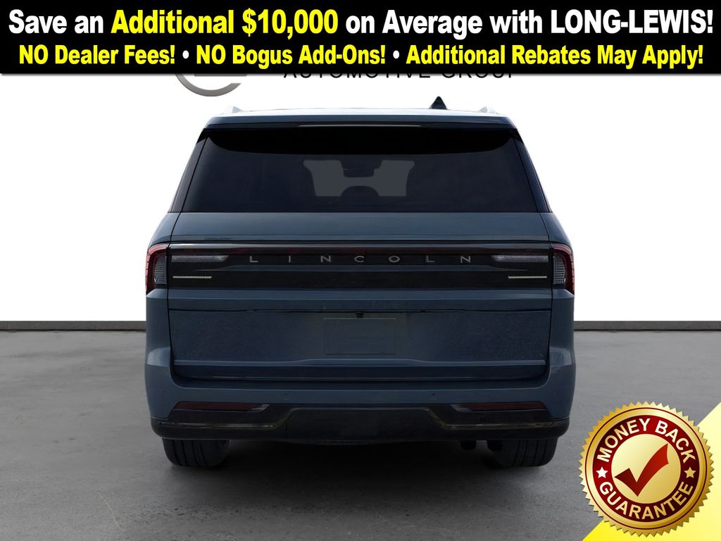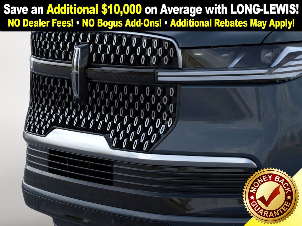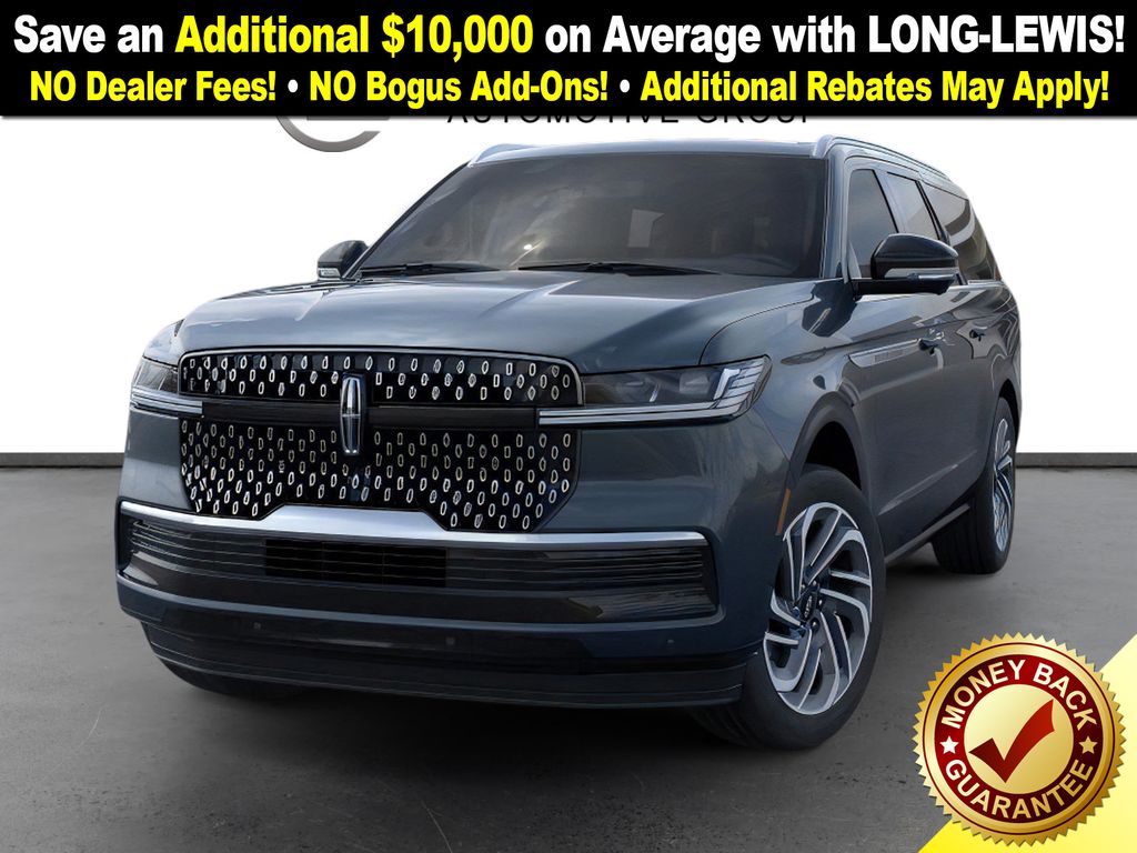 Flight Blue Metallic Clearcoat 2025 Lincoln Navigator L Reserve NLT 4WD 10-Speed Automatic 3.5L V6 26mm Engine Radiator, 28 Speakers, 2nd Row Heated & Ventilated Dual Captain's Chair, 3rd row seats: split-bench, 4-Wheel Disc Brakes, ABS brakes, Adaptive suspension, Adjustable pedals, Air Conditioning, Alloy wheels, AM/FM radio: SiriusXM with 360L, Apple CarPlay/Android Auto, Audio memory, Auto High-beam Headlights, Auto Htd & Ventilated Premium Lthr Captain's Chair, Auto Start-Stop Technology, Auto tilt-away steering wheel, Auto-dimming door mirrors, Auto-dimming Rear-View mirror, Auto-leveling suspension, Automatic temperature control, Brake assist, Bumpers: body-color, Compass, Delay-off headlights, Driver door bin, Driver vanity mirror, Driver's Seat Mounted Armrest, Dual front impact airbags, Dual front side impact airbags, Electronic Stability Control, Emergency communication system: 911 Assist, Exterior Parking Camera Rear, Four wheel independent suspension, Front anti-roll bar, Front Bucket Seats, Front dual zone A/C, Front reading lights, Fully automatic headlights, Garage door transmitter, Heated door mirrors, Heated front seats, Heated rear seats, Heated steering wheel, Heavy-Duty Trailer Tow Package, HVAC memory, Illuminated entry, Leather steering wheel, Lincoln Connect, Lincoln Premium Connectivity, Low tire pressure warning, Memory seat, Navigation system: Connected Navigation (1-year trial), Occupant sensing airbag, Outside temperature display, Overhead airbag, Overhead console, Panic alarm, Passenger door bin, Passenger seat mounted armrest, Passenger vanity mirror, Pedal memory, Power adjustable front head restraints, Power adjustable rear head restraints, Power door mirrors, Power driver seat, Power moonroof, Power passenger seat, Power steering, Power windows, Radio data system, Radio: Revel Ultima 3D AM/FM/HD Audio System, Rain sensing wipers, Rear air conditioning, Rear anti-roll bar, Rear audio controls, Rear reading lights, Rear window defroster, Rear window wiper, Reclining 3rd row seat, Remote keyless entry, Security system, SiriusXM w/360L, Speed control, Speed-sensing steering, Speed-Sensitive Wipers, Split folding rear seat, Spoiler, Steering wheel memory, Steering wheel mounted audio controls, Tachometer, Telescoping steering wheel, Tilt steering wheel, Traction control, Trailer Brake Controller, Trip computer, Turn signal indicator mirrors, Variably intermittent wipers, Ventilated front seats, Wheels: 22" Dark Tarnished Aluminum.