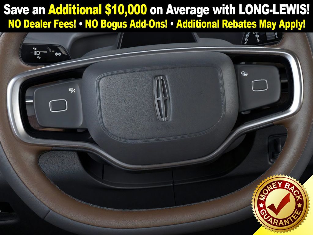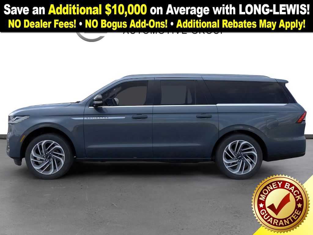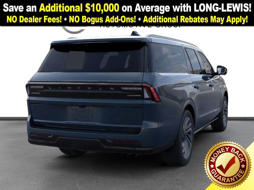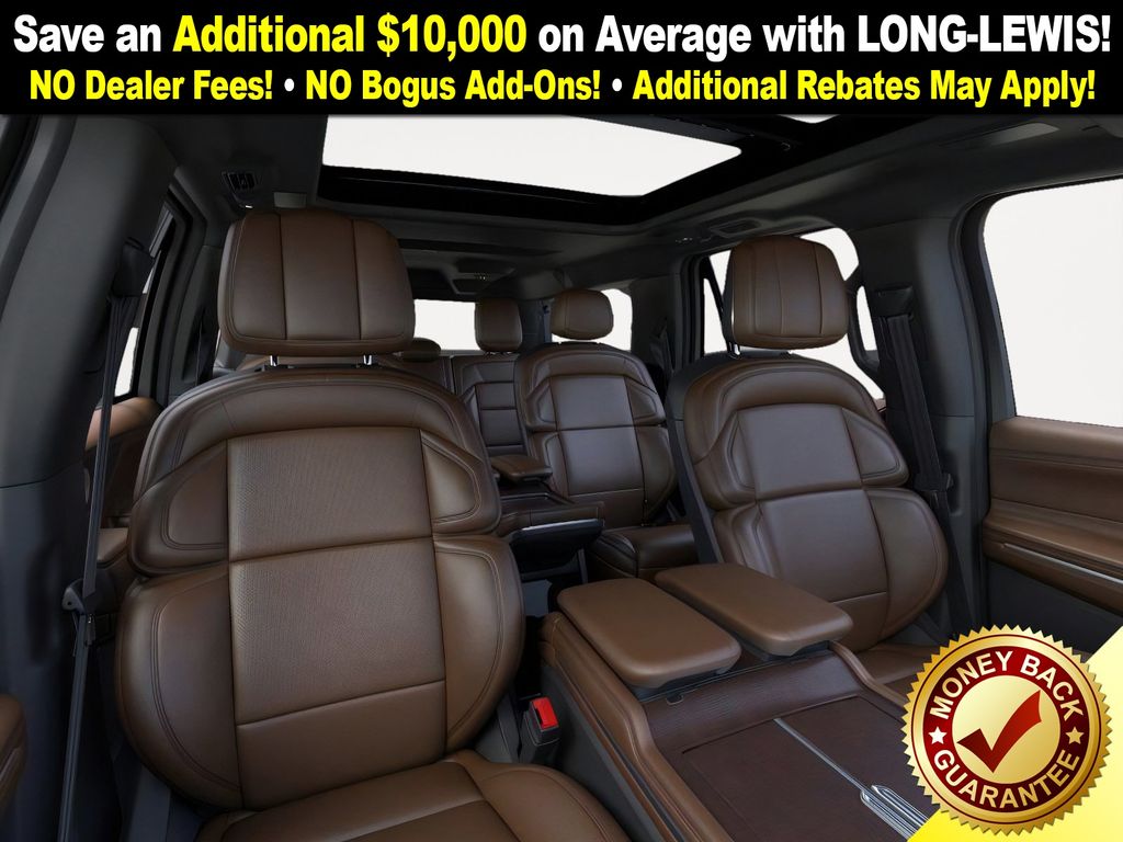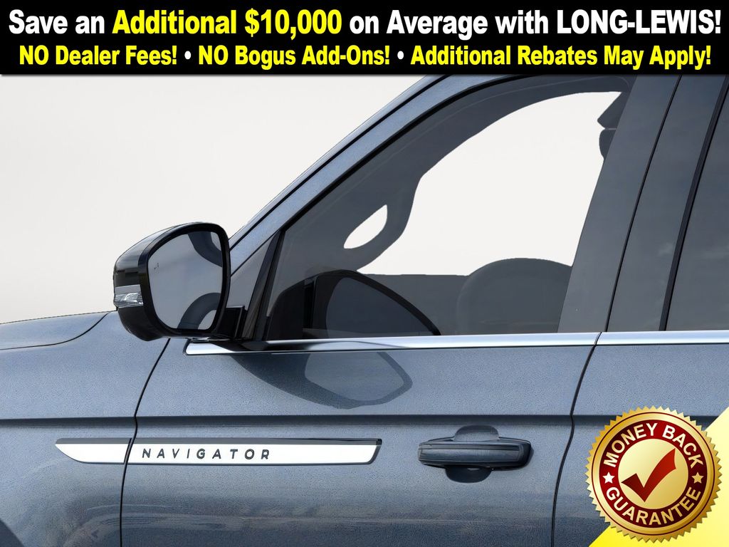 Flight Blue Metallic Clearcoat 2025 Lincoln Navigator L Reserve NLT 4WD 10-Speed Automatic 3.5L V6 26mm Engine Radiator, 28 Speakers, 2nd Row Heated & Ventilated Dual Captain's Chair, 3rd row seats: split-bench, 4-Wheel Disc Brakes, ABS brakes, Adaptive suspension, Adjustable pedals, Air Conditioning, Alloy wheels, AM/FM radio: SiriusXM with 360L, Apple CarPlay/Android Auto, Audio memory, Auto High-beam Headlights, Auto Htd & Ventilated Premium Lthr Captain's Chair, Auto Start-Stop Technology, Auto tilt-away steering wheel, Auto-dimming door mirrors, Auto-dimming Rear-View mirror, Auto-leveling suspension, Automatic temperature control, Brake assist, Bumpers: body-color, Compass, Delay-off headlights, Driver door bin, Driver vanity mirror, Driver's Seat Mounted Armrest, Dual front impact airbags, Dual front side impact airbags, Electronic Stability Control, Emergency communication system: 911 Assist, Exterior Parking Camera Rear, Four wheel independent suspension, Front anti-roll bar, Front Bucket Seats, Front dual zone A/C, Front reading lights, Fully automatic headlights, Garage door transmitter, Heated door mirrors, Heated front seats, Heated rear seats, Heated steering wheel, Heavy-Duty Trailer Tow Package, HVAC memory, Illuminated entry, Leather steering wheel, Lincoln Connect, Lincoln Premium Connectivity, Low tire pressure warning, Memory seat, Navigation system: Connected Navigation (1-year trial), Occupant sensing airbag, Outside temperature display, Overhead airbag, Overhead console, Panic alarm, Passenger door bin, Passenger seat mounted armrest, Passenger vanity mirror, Pedal memory, Power adjustable front head restraints, Power adjustable rear head restraints, Power door mirrors, Power driver seat, Power moonroof, Power passenger seat, Power steering, Power windows, Radio data system, Radio: Revel Ultima 3D AM/FM/HD Audio System, Rain sensing wipers, Rear air conditioning, Rear anti-roll bar, Rear audio controls, Rear reading lights, Rear window defroster, Rear window wiper, Reclining 3rd row seat, Remote keyless entry, Security system, SiriusXM w/360L, Speed control, Speed-sensing steering, Speed-Sensitive Wipers, Split folding rear seat, Spoiler, Steering wheel memory, Steering wheel mounted audio controls, Tachometer, Telescoping steering wheel, Tilt steering wheel, Traction control, Trailer Brake Controller, Trip computer, Turn signal indicator mirrors, Variably intermittent wipers, Ventilated front seats, Wheels: 22" Dark Tarnished Aluminum.