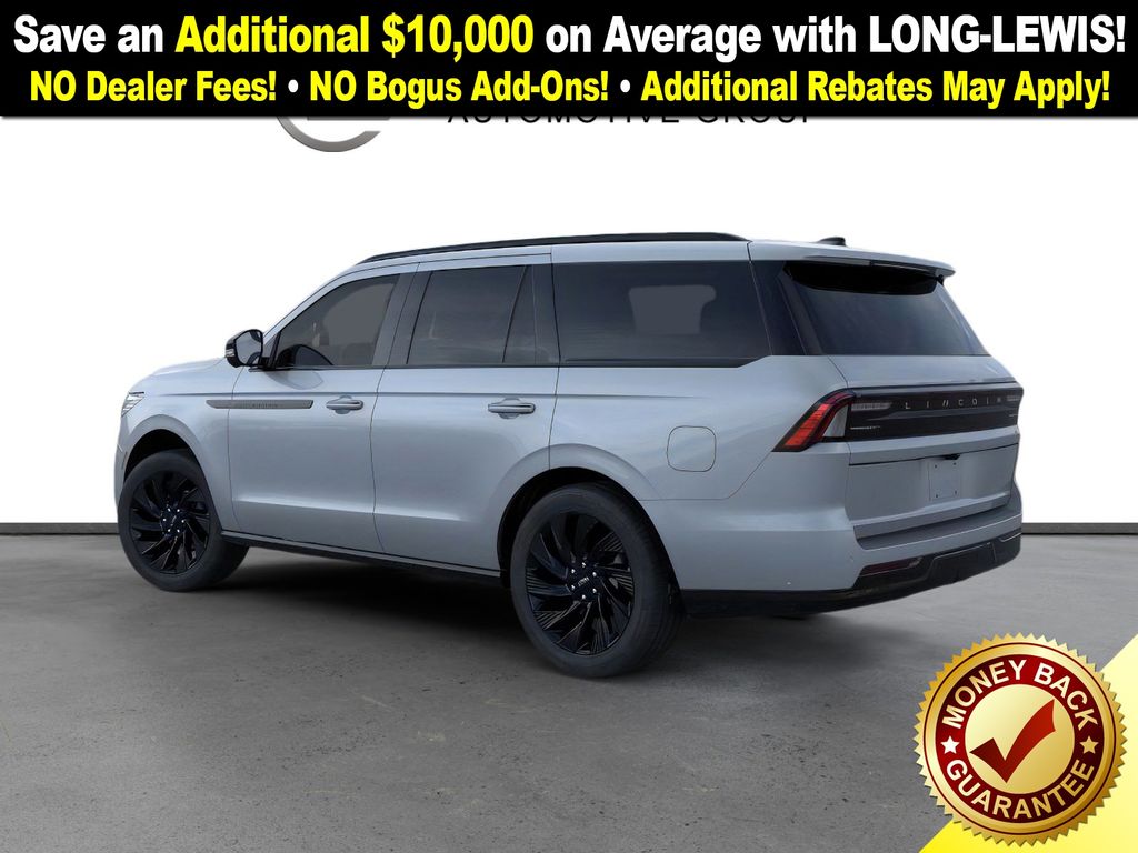 Gray Mist Metallic Tri-Coat 2025 Lincoln Navigator Reserve fctp 4WD 10-Speed Automatic 3.5L V6 4WD, Black Onyx Leather, 28 Speakers, 3rd row seats: split-bench, 4-Wheel Disc Brakes, ABS brakes, Adaptive suspension, Adjustable pedals, Air Conditioning, Alloy wheels, AM/FM radio: SiriusXM with 360L, Apple CarPlay/Android Auto, Audio memory, Auto High-beam Headlights, Auto Htd & Ventilated Premium Lthr Captain's Chair, Auto Start-Stop Technology, Auto tilt-away steering wheel, Auto-dimming door mirrors, Auto-dimming Rear-View mirror, Auto-leveling suspension, Automatic temperature control, Black Accent Badge, Black Accent Interior Pack, Black Beltline Molding, Black Painted Roof Rails, Brake assist, Bumpers: body-color, Compass, Delay-off headlights, Driver door bin, Driver vanity mirror, Driver's Seat Mounted Armrest, Dual front impact airbags, Dual front side impact airbags, Electronic Stability Control, Emergency communication system: 911 Assist, Exterior Parking Camera Rear, Four wheel independent suspension, Front anti-roll bar, Front Bucket Seats, Front Bumper Fascia, Front dual zone A/C, Front reading lights, Fully automatic headlights, Garage door transmitter, Heated door mirrors, Heated front seats, Heated rear seats, Heated steering wheel, HVAC memory, Illuminated entry, Jet Appearance Package, Leather steering wheel, Lincoln Connect, Lincoln Lit Star, Lincoln Premium Connectivity, Low tire pressure warning, Memory seat, Navigation system: Connected Navigation (1-year trial), Occupant sensing airbag, Outside temperature display, Overhead airbag, Overhead console, Panic alarm, Passenger door bin, Passenger seat mounted armrest, Passenger vanity mirror, Pedal memory, Power adjustable rear head restraints, Power door mirrors, Power driver seat, Power moonroof: Panoramic Vista Roof, Power passenger seat, Power steering, Power windows, Radio data system, Radio: Revel Ultima 3D AM/FM/HD Audio System, Rain sensing wipers, Rear air conditioning, Rear anti-roll bar, Rear audio controls, Rear reading lights, Rear window defroster, Rear window wiper, Reclining 3rd row seat, Remote keyless entry, Security system, SiriusXM w/360L, Speed control, Speed-sensing steering, Speed-Sensitive Wipers, Split folding rear seat, Spoiler, Steering wheel memory, Steering wheel mounted audio controls, Tachometer, Telescoping steering wheel, Tilt steering wheel, Traction control, Trip computer, Turn signal indicator mirrors, Unique Lincoln Grille Pillar Black Surround, Variably intermittent wipers, Ventilated front seats, Wheels: 22" Dark Tarnished Aluminum, Wheels: 22" High-Gloss Ebony Aluminum, 4WD, Black Onyx Leather.