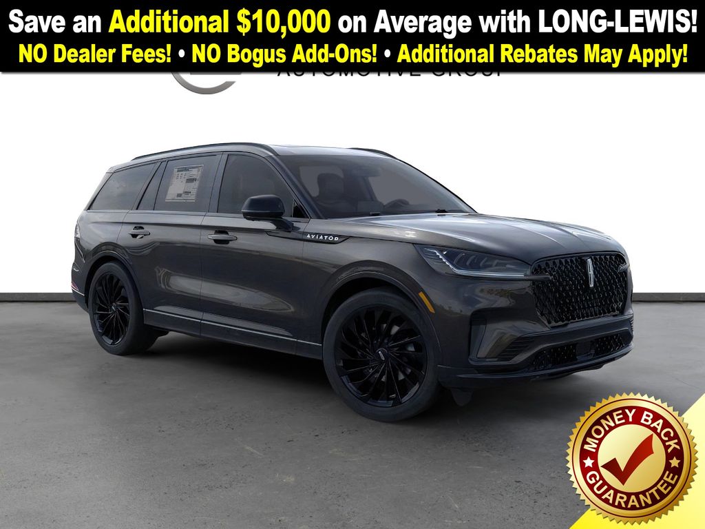 Infinite Black Metallic Clearcoat 2026 Lincoln Aviator Reserve FCT RWD 10-Speed Automatic 3.0L V6 14 Speakers, 3rd row seats: split-bench, 4-Wheel Disc Brakes, 40/Mini Console/40 Dual Captain's Chairs, ABS brakes, Adaptive suspension, Air Conditioning, Alloy wheels, AM/FM radio: SiriusXM, Apple CarPlay/Android Auto, Audio memory, Auto Heated and Ventilated Driver and Passenger Seats, Auto High-beam Headlights, Auto-dimming door mirrors, Auto-dimming Rear-View mirror, Automatic temperature control, Brake assist, Bumpers: body-color, Compass, Delay-off headlights, Driver door bin, Driver vanity mirror, Dual front impact airbags, Dual front side impact airbags, Electronic Stability Control, Emergency communication system: 911 Assist, Four wheel independent suspension, Front anti-roll bar, Front Bucket Seats, Front Center Armrest, Front dual zone A/C, Front reading lights, Fully automatic headlights, Garage door transmitter, Genuine wood console insert, Genuine wood dashboard insert, Heads-Up Display, Heated door mirrors, Heated front seats, Heated steering wheel, HVAC memory, Illuminated entry, Knee airbag, Leather steering wheel, Lincoln App, Lincoln BlueCruise Equipped (4-Years Included), Lincoln Connectivity Package (4-Years), Lincoln Digital Experience, Low tire pressure warning, Memory seat, Navigation system: Google Maps, Occupant sensing airbag, Outside temperature display, Overhead airbag, Overhead console, Panic alarm, Passenger door bin, Passenger vanity mirror, Power door mirrors, Power driver seat, Power Liftgate, Power moonroof: Panoramic Vista Roof, Power passenger seat, Power steering, Power windows, Premium Leather Front Captain's Chairs, Radio data system, Radio: Revel Audio System with 14 Speakers, Rain sensing wipers, Rear air conditioning, Rear anti-roll bar, Rear audio controls, Rear dual zone A/C, Rear reading lights, Rear window defroster, Rear window wiper, Remote keyless entry, Security system, SiriusXM, Speed control, Speed-Sensitive Wipers, Split folding rear seat, Spoiler, Steering wheel memory, Steering wheel mounted A/C controls, Steering wheel mounted audio controls, Tachometer, Telescoping steering wheel, Tilt steering wheel, Traction control, Trip computer, Turn signal indicator mirrors, Variably intermittent wipers, Ventilated front seats, Wheels: 21" Bright-Machined Aluminum with Dark Alloy Painted Pockets, Wireless Charging Pad.