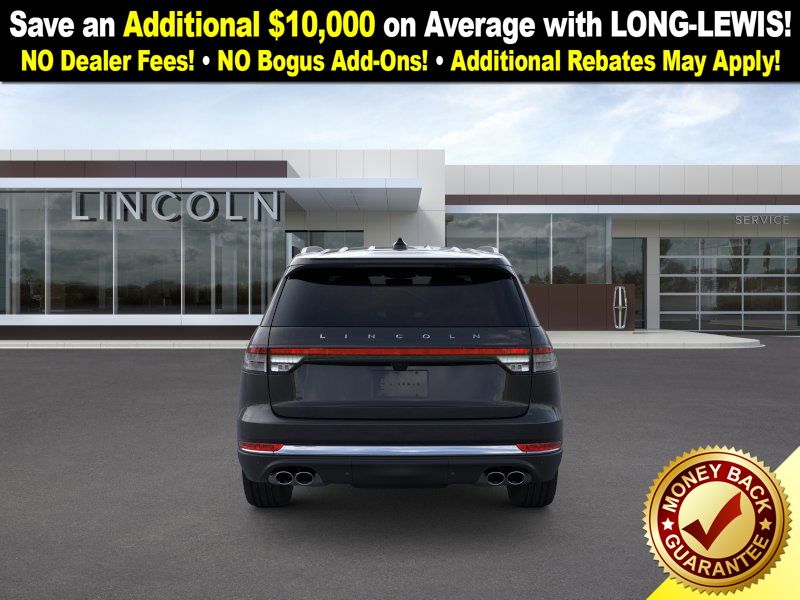 Dealer Discount of $452 off MSRP Infinite Black Metallic Clearcoat 2026 Lincoln Aviator Premiere NLT RWD 10-Speed Automatic 3.0L V6 10 Speakers, 3rd row seats: split-bench, 4-Wheel Disc Brakes, ABS brakes, Adaptive suspension, Air Conditioning, Alloy wheels, AM/FM radio: SiriusXM, Apple CarPlay/Android Auto, Audio memory, Auto High-beam Headlights, Auto-dimming door mirrors, Auto-dimming Rear-View mirror, Automatic temperature control, Brake assist, Bumpers: body-color, Compass, Delay-off headlights, Driver door bin, Driver vanity mirror, Dual front impact airbags, Dual front side impact airbags, Electronic Stability Control, Emergency communication system: 911 Assist, Exterior Parking Camera Rear, Four wheel independent suspension, Front anti-roll bar, Front Bucket Seats, Front Center Armrest, Front dual zone A/C, Front reading lights, Fully automatic headlights, Garage door transmitter, Heated door mirrors, Heated front seats, Heated steering wheel, HVAC memory, Illuminated entry, Knee airbag, Leather steering wheel, Lincoln BlueCruise Equipped (4-Years Included), Lincoln Connectivity Package (4-years included), Lincoln Digital Experience, Lincoln Soft Touch Heated Comfort Seats, Low tire pressure warning, Memory seat, Navigation System, Occupant sensing airbag, Outside temperature display, Overhead airbag, Overhead console, Panic alarm, Passenger door bin, Passenger vanity mirror, Power door mirrors, Power driver seat, Power Liftgate, Power passenger seat, Power steering, Power windows, Radio data system, Radio: Lincoln Premium AM/FM/HD Audio System, Rain sensing wipers, Rear air conditioning, Rear anti-roll bar, Rear audio controls, Rear reading lights, Rear window defroster, Rear window wiper, Remote keyless entry, Security system, SiriusXM, Speed control, Speed-Sensitive Wipers, Split folding rear seat, Spoiler, Steering wheel mounted A/C controls, Steering wheel mounted audio controls, Tachometer, Telescoping steering wheel, Tilt steering wheel, Traction control, Trip computer, Turn signal indicator mirrors, Variably intermittent wipers, Wheels: 20" Magnetic Bright-Machined Aluminum.
