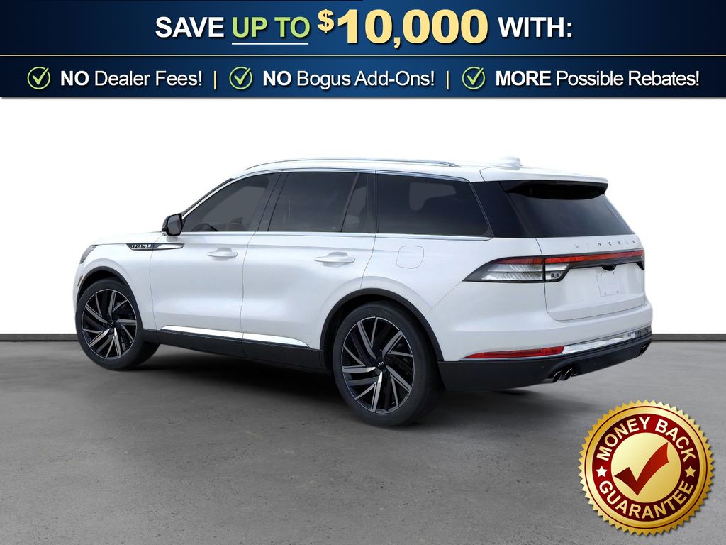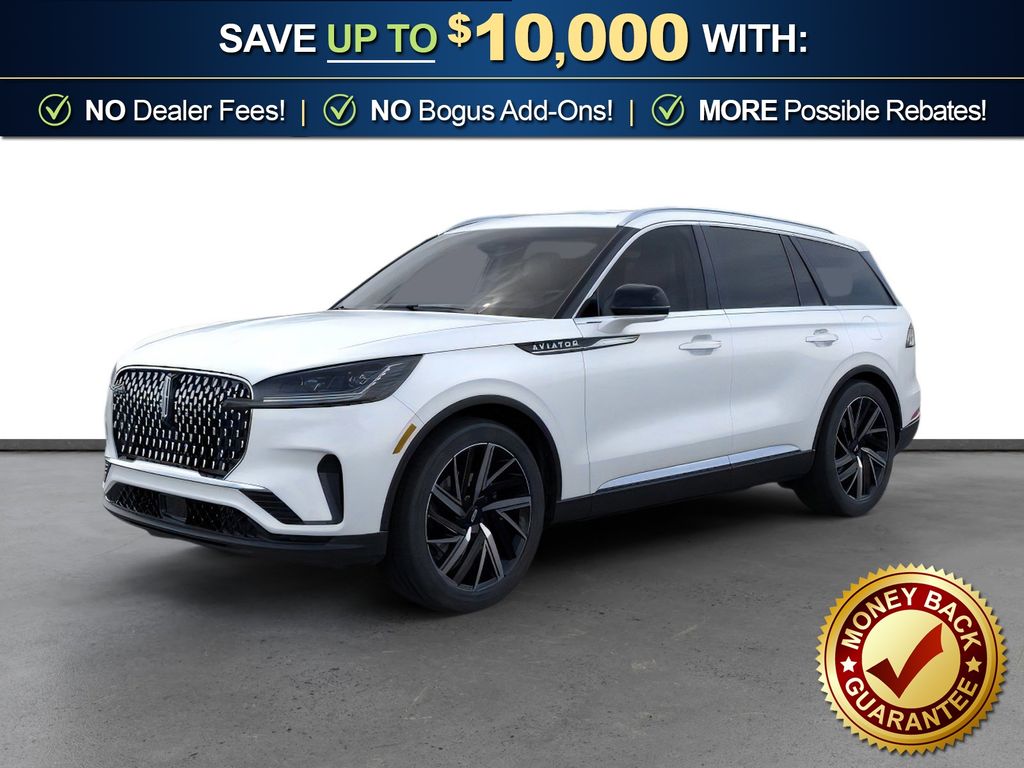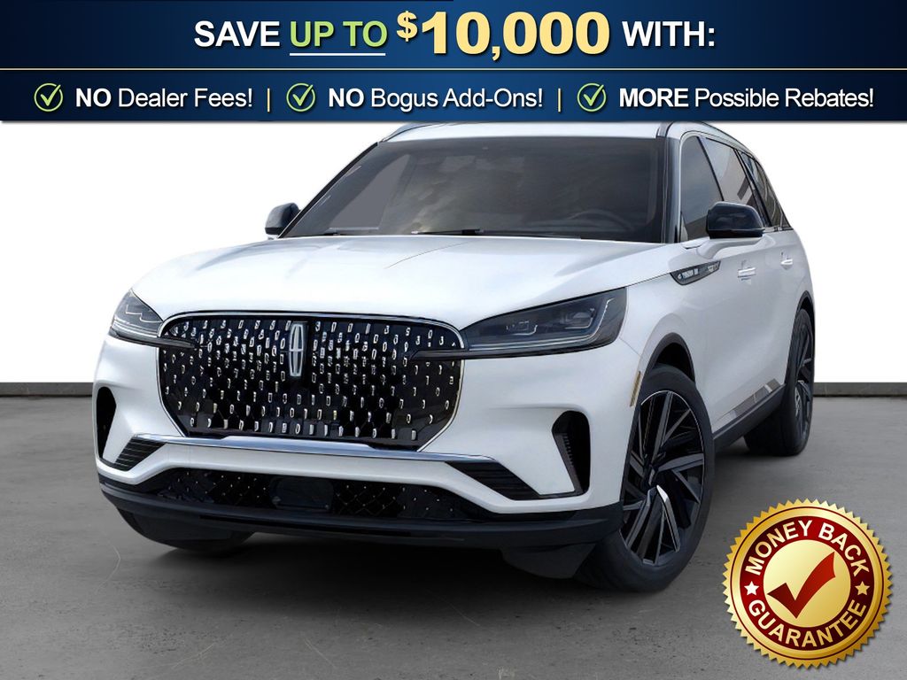 Dealer Discount of $3,266 off MSRP Pristine White Metallic Tri-Coat 2026 Lincoln Aviator Reserve NLT AWD 10-Speed Automatic 3.0L V6 14 Speakers, 3rd row seats: split-bench, 4-Wheel Disc Brakes, 40/Mini Console/40 Dual Captain's Chairs, ABS brakes, Adaptive suspension, Air Conditioning, Air Glide Suspension with Dynamic Lower Entry, Alloy wheels, AM/FM radio: SiriusXM, Apple CarPlay/Android Auto, Audio memory, Auto Heated and Ventilated Driver and Passenger Seats, Auto High-beam Headlights, Auto-dimming door mirrors, Auto-dimming Rear-View mirror, Automatic temperature control, Brake assist, Bumpers: body-color, Compass, Delay-off headlights, Driver door bin, Driver vanity mirror, Dual front impact airbags, Dual front side impact airbags, Dynamic Handling Package, Electronic Stability Control, Emergency communication system: 911 Assist, Engine Block Heater, Four wheel independent suspension, Front anti-roll bar, Front Bucket Seats, Front Center Armrest, Front dual zone A/C, Front License Plate Bracket, Front reading lights, Fully automatic headlights, Garage door transmitter, Genuine wood console insert, Genuine wood dashboard insert, Heads-Up Display, Heated door mirrors, Heated front seats, Heated steering wheel, HVAC memory, Illuminated entry, Knee airbag, Leather steering wheel, Lincoln App, Lincoln BlueCruise Equipped (4-Years Included), Lincoln Connectivity Package (4-Years), Lincoln Digital Experience, Low tire pressure warning, Memory seat, Navigation system: Google Maps, Occupant sensing airbag, Outside temperature display, Overhead airbag, Overhead console, Panic alarm, Passenger door bin, Passenger vanity mirror, Power door mirrors, Power driver seat, Power Liftgate, Power moonroof: Panoramic Vista Roof, Power passenger seat, Power steering, Power windows, Premium Leather Front Captain's Chairs, Radio data system, Radio: Revel Audio System with 14 Speakers, Rain sensing wipers, Rear air conditioning, Rear anti-roll bar, Rear audio controls, Rear dual zone A/C, Rear reading lights, Rear window defroster, Rear window wiper, Remote keyless entry, Security system, SiriusXM, Speed control, Speed-Sensitive Wipers, Split folding rear seat, Spoiler, Steering wheel memory, Steering wheel mounted A/C controls, Steering wheel mounted audio controls, Tachometer, Telescoping steering wheel, Tilt steering wheel, Traction control, Trip computer, Turn signal indicator mirrors, Variably intermittent wipers, Ventilated front seats, Wheels: 21" Bright-Machined Aluminum with Dark Alloy Painted Pockets, Wireless Charging Pad.
