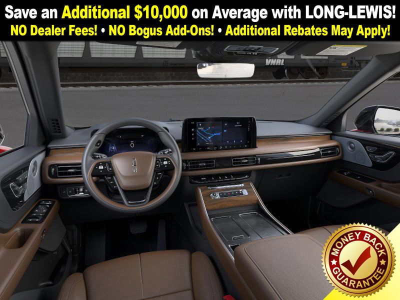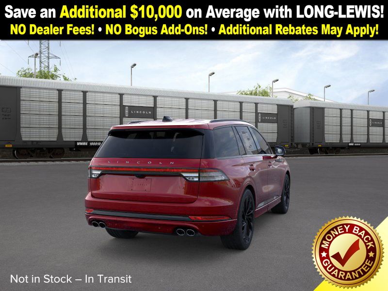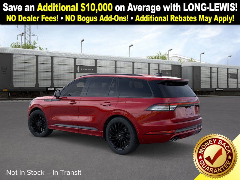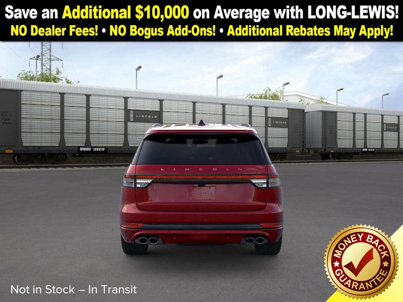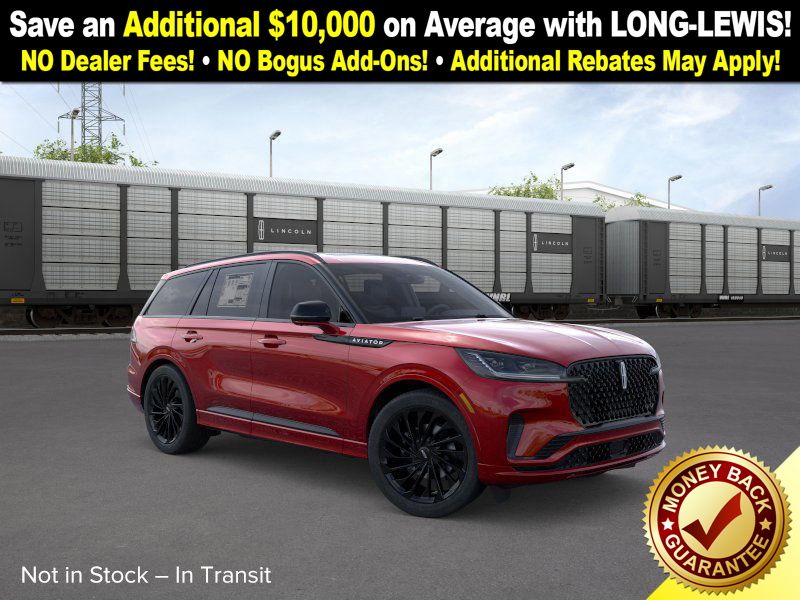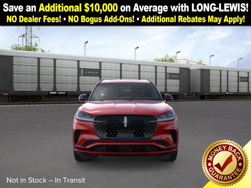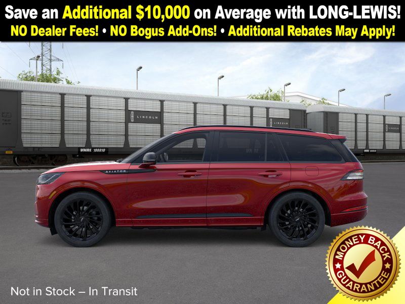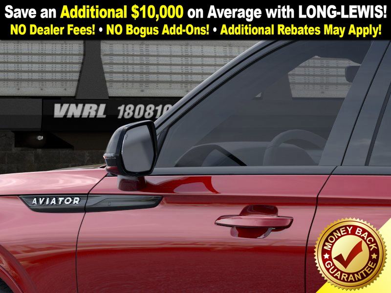 Red Carpet Tinted Clearcoat 2026 Lincoln Aviator Reserve NLT AWD 10-Speed Automatic 3.0L V6 14 Speakers, 3rd row seats: split-bench, 4-Wheel Disc Brakes, 40/Mini Console/40 Dual Captain's Chairs, ABS brakes, Adaptive suspension, Advanced Heads-Up Display, Air Conditioning, Air Glide Suspension w/Dynamic Lower Entry, Alloy wheels, AM/FM radio: SiriusXM, Apple CarPlay/Android Auto, Audio memory, Auto Air Refresh, Auto High-beam Headlights, Auto-dimming door mirrors, Auto-dimming Rear-View mirror, Automatic temperature control, Black Exterior Elements, Body-Color Exterior Elements, Brake assist, Bumpers: body-color, Compass, Delay-off headlights, Driver door bin, Driver vanity mirror, Dual front impact airbags, Dual front side impact airbags, Dynamic Handling Package, Electronic Stability Control, Emergency communication system: 911 Assist, Exterior Parking Camera Rear, Four wheel independent suspension, Front anti-roll bar, Front Bucket Seats, Front Center Armrest, Front dual zone A/C, Front reading lights, Full Rear Console, Fully automatic headlights, Garage door transmitter, Genuine wood console insert, Genuine wood dashboard insert, Heads-Up Display, Heated door mirrors, Heated front seats, Heated steering wheel, HVAC memory, Illuminated entry, Jet Appearance Package, Knee airbag, Leather steering wheel, Lincoln BlueCruise Equipped (4-Years Included), Lincoln Connectivity Package (4-years included), Lincoln Digital Experience, Low tire pressure warning, Memory seat, Navigation System, Occupant sensing airbag, Outside temperature display, Overhead airbag, Overhead console, Panic alarm, Passenger door bin, Passenger vanity mirror, Power door mirrors, Power driver seat, Power Liftgate, Power moonroof: Panoramic Vista Roof, Power passenger seat, Power steering, Power windows, Premium Lthr Heated/Ventilated Fnt Captain's Chairs, Radio data system, Radio: Revel Audio System w/14 Speakers, Rain sensing wipers, Rear air conditioning, Rear anti-roll bar, Rear audio controls, Rear dual zone A/C, Rear reading lights, Rear window defroster, Rear window wiper, Remote keyless entry, Security system, SiriusXM, Speed control, Speed-Sensitive Wipers, Split folding rear seat, Spoiler, Steering wheel memory, Steering wheel mounted A/C controls, Steering wheel mounted audio controls, Tachometer, Telescoping steering wheel, Tilt steering wheel, Traction control, Trip computer, Turn signal indicator mirrors, Variably intermittent wipers, Ventilated front seats, Wheels: 21" Bright-Machined Aluminum, Wheels: 22" Black Aluminum w/Adaptive Suspension, Wireless Charging Pad.