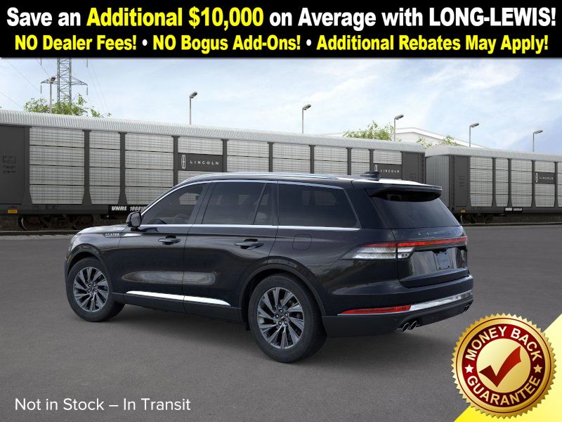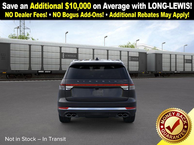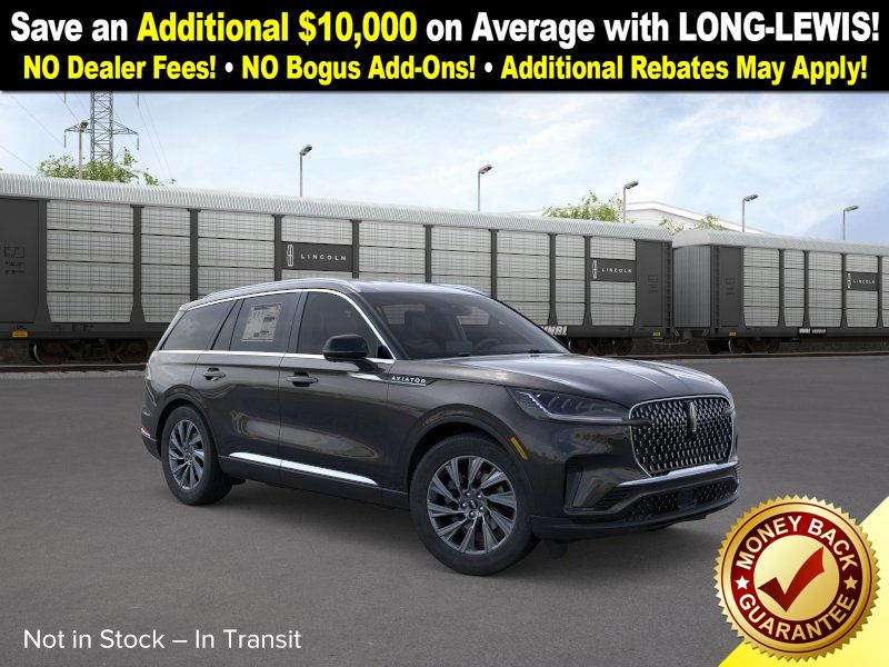 Infinite Black Metallic Clearcoat 2026 Lincoln Aviator Premiere NLT RWD 10-Speed Automatic 3.0L V6 10 Speakers, 3rd row seats: split-bench, 4-Wheel Disc Brakes, ABS brakes, Adaptive suspension, Air Conditioning, Alloy wheels, AM/FM radio: SiriusXM, Apple CarPlay/Android Auto, Audio memory, Auto High-beam Headlights, Auto-dimming door mirrors, Auto-dimming Rear-View mirror, Automatic temperature control, Brake assist, Bumpers: body-color, Compass, Delay-off headlights, Driver door bin, Driver vanity mirror, Dual front impact airbags, Dual front side impact airbags, Electronic Stability Control, Emergency communication system: 911 Assist, Exterior Parking Camera Rear, Four wheel independent suspension, Front anti-roll bar, Front Bucket Seats, Front Center Armrest, Front dual zone A/C, Front reading lights, Fully automatic headlights, Garage door transmitter, Heated door mirrors, Heated front seats, Heated steering wheel, HVAC memory, Illuminated entry, Knee airbag, Leather steering wheel, Lincoln BlueCruise Equipped (4-Years Included), Lincoln Connectivity Package (4-years included), Lincoln Digital Experience, Lincoln Soft Touch Heated Comfort Seats, Low tire pressure warning, Memory seat, Navigation System, Occupant sensing airbag, Outside temperature display, Overhead airbag, Overhead console, Panic alarm, Passenger door bin, Passenger vanity mirror, Power door mirrors, Power driver seat, Power Liftgate, Power passenger seat, Power steering, Power windows, Radio data system, Radio: Lincoln Premium AM/FM/HD Audio System, Rain sensing wipers, Rear air conditioning, Rear anti-roll bar, Rear audio controls, Rear reading lights, Rear window defroster, Rear window wiper, Remote keyless entry, Security system, SiriusXM, Speed control, Speed-Sensitive Wipers, Split folding rear seat, Spoiler, Steering wheel mounted A/C controls, Steering wheel mounted audio controls, Tachometer, Telescoping steering wheel, Tilt steering wheel, Traction control, Trip computer, Turn signal indicator mirrors, Variably intermittent wipers, Wheels: 20" Magnetic Bright-Machined Aluminum.
