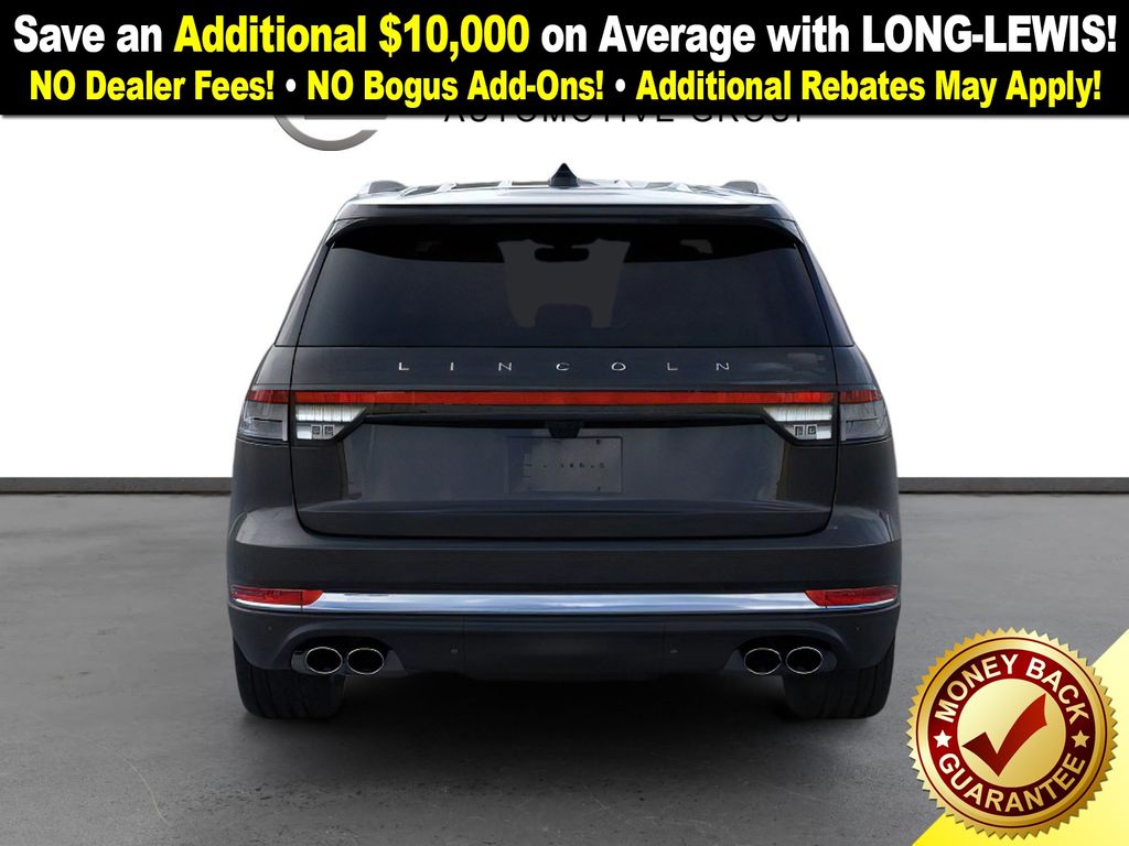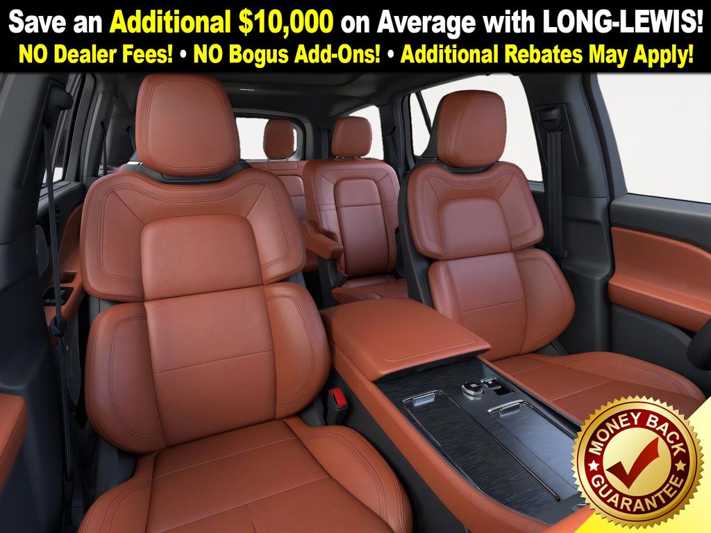 Infinite Black Metallic Clearcoat 2026 Lincoln Aviator Reserve NLT RWD 10-Speed Automatic 3.0L V6 14 Speakers, 30-Way Perfect Position Seats with Active Motion, 3rd row seats: split-bench, 4-Wheel Disc Brakes, 40/Mini Console/40 Dual Captain's Chairs, ABS brakes, Adaptive suspension, Air Conditioning, All-Weather 1st and 2nd Row Floor Liners, Alloy wheels, AM/FM radio: SiriusXM, Apple CarPlay/Android Auto, Audio memory, Auto Heated and Ventilated Driver and Passenger Seats, Auto High-beam Headlights, Auto-dimming door mirrors, Auto-dimming Rear-View mirror, Automatic temperature control, Brake assist, Bumpers: body-color, Cargo Area Cover, Compass, Delay-off headlights, Driver door bin, Driver vanity mirror, Dual front impact airbags, Dual front side impact airbags, Electronic Stability Control, Emergency communication system: 911 Assist, Four wheel independent suspension, Front anti-roll bar, Front Bucket Seats, Front Center Armrest, Front dual zone A/C, Front reading lights, Fully automatic headlights, Garage door transmitter, Genuine wood console insert, Genuine wood dashboard insert, Heads-Up Display, Heated and Ventilated Rear Seats, Heated door mirrors, Heated front seats, Heated steering wheel, HVAC memory, Illuminated entry, Knee airbag, Leather steering wheel, Lincoln App, Lincoln BlueCruise Equipped (4-Years Included), Lincoln Connectivity Package (4-Years), Lincoln Digital Experience, Low tire pressure warning, Luxury Package, Memory seat, Navigation system: Google Maps, Occupant sensing airbag, Outside temperature display, Overhead airbag, Overhead console, Panic alarm, Passenger door bin, Passenger vanity mirror, Power door mirrors, Power driver seat, Power Liftgate, Power moonroof: Panoramic Vista Roof, Power passenger seat, Power steering, Power windows, Premium Leather Front Captain's Chairs, Radio data system, Radio: Revel Audio System with 14 Speakers, Radio: Revel Ultima 3D Audio System with 28 Speakers, Rain sensing wipers, Rear air conditioning, Rear anti-roll bar, Rear audio controls, Rear dual zone A/C, Rear reading lights, Rear window defroster, Rear window wiper, Remote keyless entry, Security system, SiriusXM, Speed control, Speed-Sensitive Wipers, Split folding rear seat, Spoiler, Steering wheel memory, Steering wheel mounted A/C controls, Steering wheel mounted audio controls, Tachometer, Telescoping steering wheel, Tilt steering wheel, Traction control, Trip computer, Turn signal indicator mirrors, Variably intermittent wipers, Ventilated front seats, Wheels: 21" Bright-Machined Aluminum with Dark Alloy Painted Pockets, Wireless Charging Pad. Price includes: $4000 - Retail Customer Cash. Exp. 03/31/2026