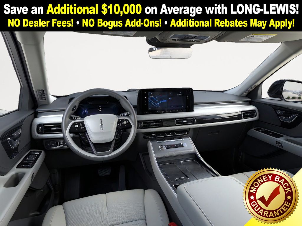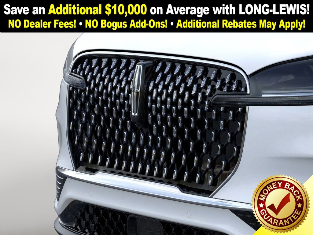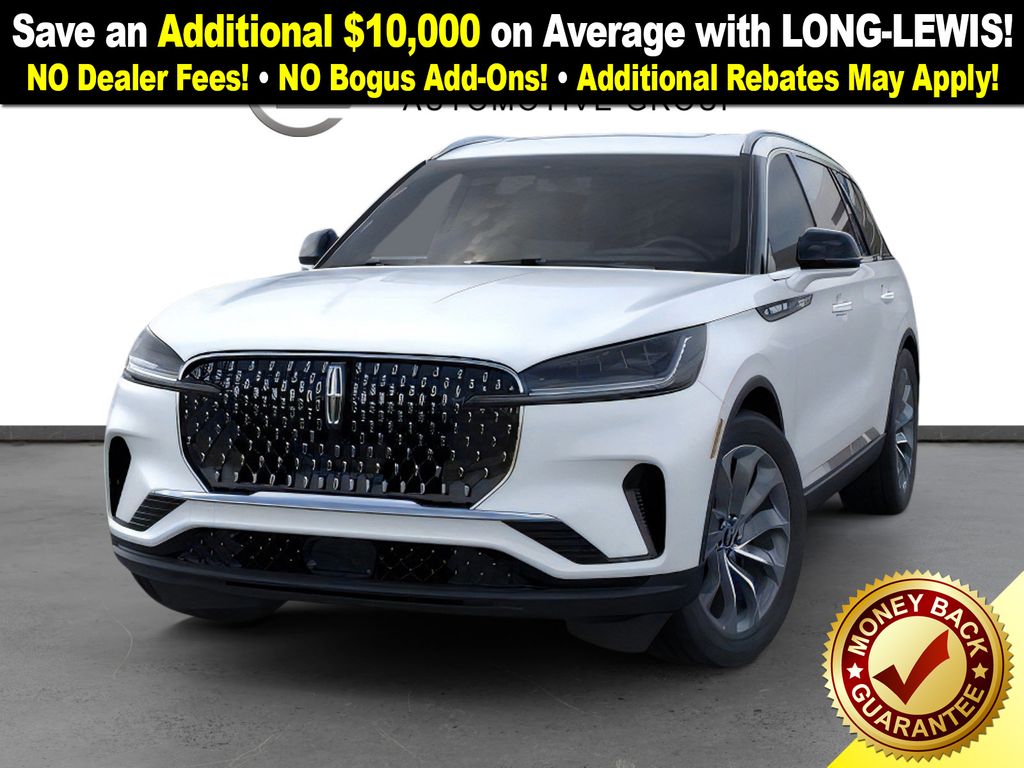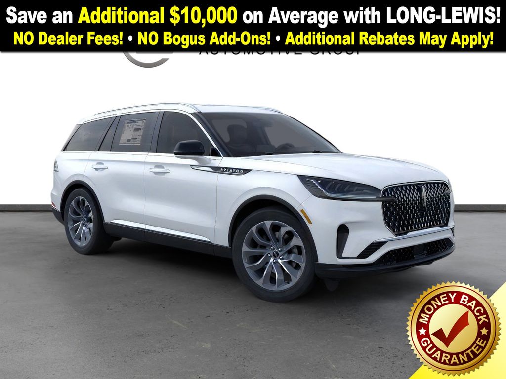 Pristine White Metallic Tri-Coat 2026 Lincoln Aviator Premiere NLT RWD 10-Speed Automatic 3.0L V6 10 Speakers, 3rd row seats: split-bench, 4-Wheel Disc Brakes, ABS brakes, Adaptive suspension, Air Conditioning, Alloy wheels, AM/FM radio: SiriusXM, Apple CarPlay/Android Auto, Audio memory, Auto High-beam Headlights, Auto-dimming door mirrors, Auto-dimming Rear-View mirror, Automatic temperature control, Brake assist, Bumpers: body-color, Compass, Delay-off headlights, Driver door bin, Driver vanity mirror, Dual front impact airbags, Dual front side impact airbags, Electronic Stability Control, Emergency communication system: 911 Assist, Four wheel independent suspension, Front anti-roll bar, Front Bucket Seats, Front Center Armrest, Front dual zone A/C, Front reading lights, Fully automatic headlights, Garage door transmitter, Heated door mirrors, Heated front seats, Heated steering wheel, HVAC memory, Illuminated entry, Knee airbag, Leather steering wheel, Lincoln BlueCruise Equipped (4-Years Included), Lincoln Digital Experience, Low tire pressure warning, Memory seat, Navigation System, Occupant sensing airbag, Outside temperature display, Overhead airbag, Overhead console, Panic alarm, Passenger door bin, Passenger vanity mirror, Power door mirrors, Power driver seat, Power Liftgate, Power passenger seat, Power steering, Power windows, Radio data system, Rain sensing wipers, Rear air conditioning, Rear anti-roll bar, Rear audio controls, Rear reading lights, Rear window defroster, Rear window wiper, Remote keyless entry, Security system, SiriusXM, Speed control, Speed-Sensitive Wipers, Split folding rear seat, Spoiler, Steering wheel mounted A/C controls, Steering wheel mounted audio controls, Tachometer, Telescoping steering wheel, Tilt steering wheel, Traction control, Trip computer, Turn signal indicator mirrors, Variably intermittent wipers, Wheels: 20" Magnetic Bright-Machined Aluminum.
