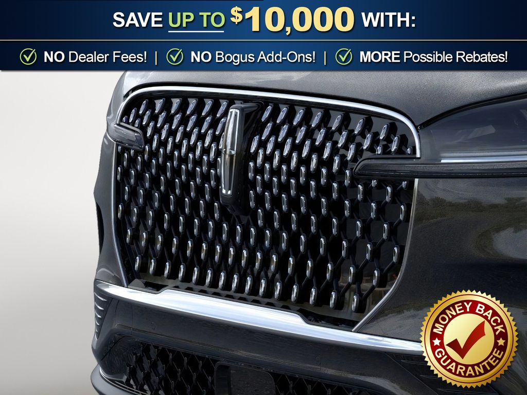 Infinite Black Metallic Clearcoat 2026 Lincoln Aviator Premiere NLT RWD 10-Speed Automatic 3.0L V6 10 Speakers, 3rd row seats: split-bench, 4-Wheel Disc Brakes, ABS brakes, Adaptive suspension, Air Conditioning, Alloy wheels, AM/FM radio: SiriusXM, Apple CarPlay/Android Auto, Audio memory, Auto Air Refresh, Auto High-beam Headlights, Auto-dimming door mirrors, Auto-dimming Rear-View mirror, Automatic temperature control, Brake assist, Bumpers: body-color, Compass, Delay-off headlights, Driver door bin, Driver vanity mirror, Dual front impact airbags, Dual front side impact airbags, Electronic Stability Control, Emergency communication system: 911 Assist, Equipment Group 101A Premiere II, Four wheel independent suspension, Front anti-roll bar, Front Bucket Seats, Front Center Armrest, Front dual zone A/C, Front reading lights, Fully automatic headlights, Garage door transmitter, Heads-Up Display, Heated door mirrors, Heated Front Driver and Passenger Seats, Heated front seats, Heated steering wheel, HVAC memory, Illuminated entry, Knee airbag, Leather steering wheel, Lincoln App, Lincoln BlueCruise Equipped (4-Years Included), Lincoln Connectivity Package (4-Years), Lincoln Digital Experience, Lincoln Soft Touch Comfort Seats, Low tire pressure warning, Memory seat, Navigation system: Google Maps, Occupant sensing airbag, Outside temperature display, Overhead airbag, Overhead console, Panic alarm, Panoramic Vista Roof with Power Shade, Passenger door bin, Passenger vanity mirror, Power door mirrors, Power driver seat, Power Liftgate, Power passenger seat, Power steering, Power Tilt Telescoping Steering Column with Memory, Power windows, Radio data system, Radio: Lincoln Premium AM/FM/HD Audio System with 10 Speakers, Rain sensing wipers, Rear air conditioning, Rear anti-roll bar, Rear audio controls, Rear reading lights, Rear window defroster, Rear window wiper, Remote keyless entry, Security system, SiriusXM, Speed control, Speed-Sensitive Wipers, Split folding rear seat, Spoiler, Steering wheel mounted A/C controls, Steering wheel mounted audio controls, Tachometer, Telescoping steering wheel, Tilt steering wheel, Traction control, Trip computer, Turn signal indicator mirrors, Variably intermittent wipers, Wheels: 20" Magnetic Bright-Machined Aluminum, Wireless Charging.