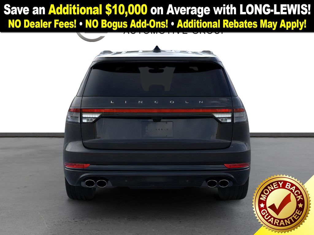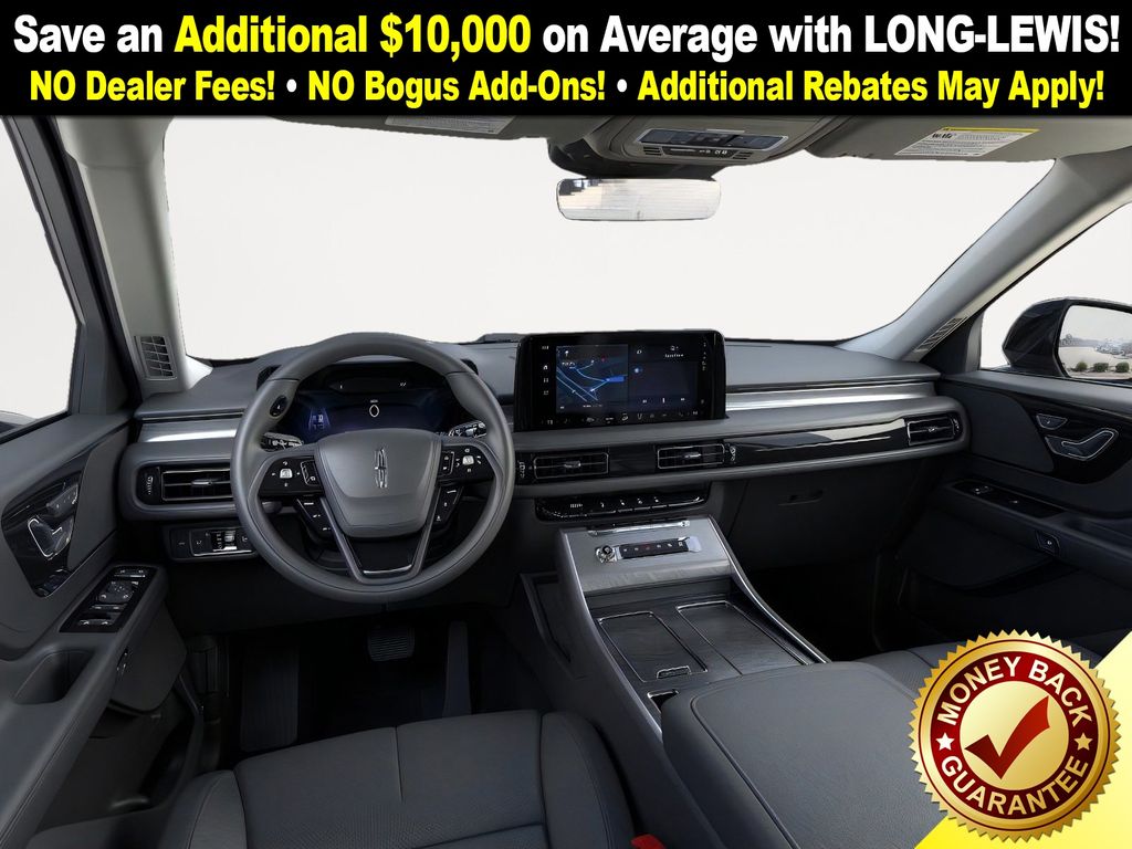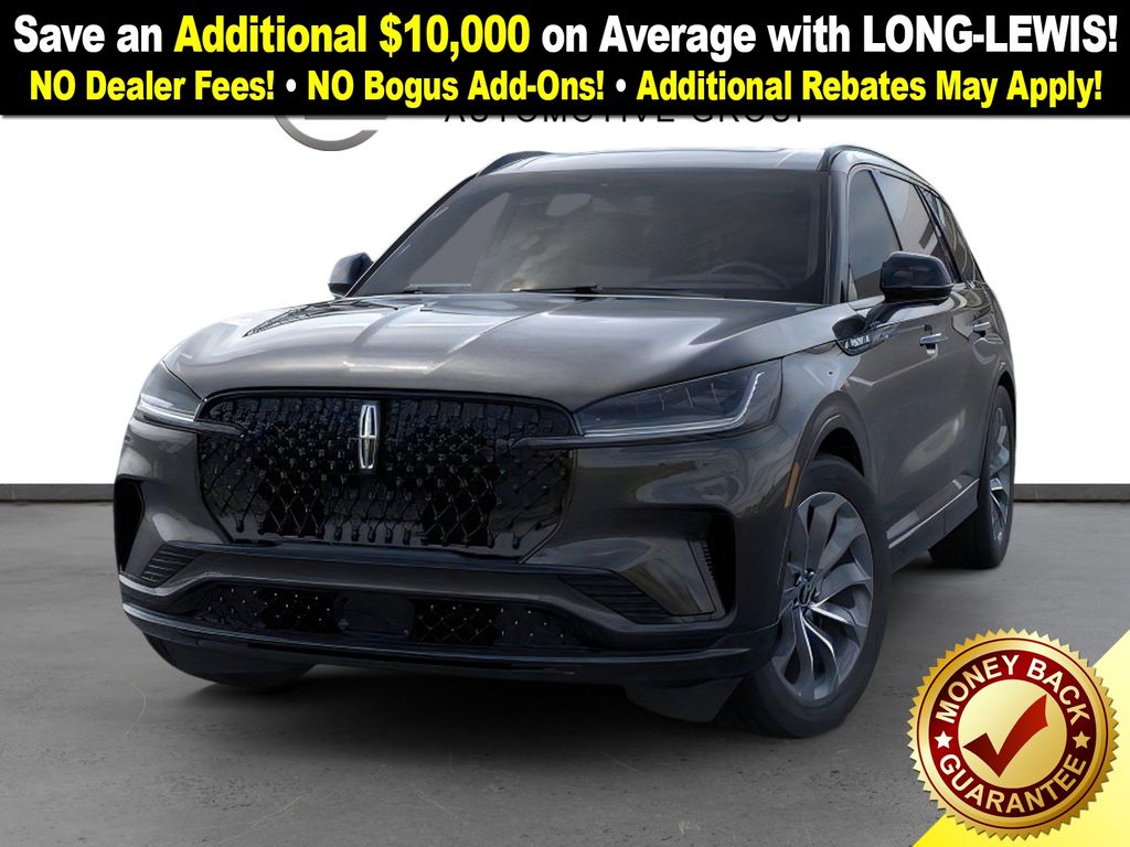 Infinite Black Metallic Clearcoat 2026 Lincoln Aviator Premiere FCT RWD 10-Speed Automatic 3.0L V6 10 Speakers, 3rd row seats: split-bench, 4-Wheel Disc Brakes, ABS brakes, Adaptive suspension, Air Conditioning, Alloy wheels, AM/FM radio: SiriusXM, Apple CarPlay/Android Auto, Audio memory, Auto High-beam Headlights, Auto-dimming door mirrors, Auto-dimming Rear-View mirror, Automatic temperature control, Black Exterior Elements, Body-Color Exterior Elements, Brake assist, Bumpers: body-color, Compass, Delay-off headlights, Driver door bin, Driver vanity mirror, Dual front impact airbags, Dual front side impact airbags, Electronic Stability Control, Emergency communication system: 911 Assist, Exterior Parking Camera Rear, Four wheel independent suspension, Front anti-roll bar, Front Bucket Seats, Front Center Armrest, Front dual zone A/C, Front reading lights, Fully automatic headlights, Garage door transmitter, Heated door mirrors, Heated front seats, Heated steering wheel, HVAC memory, Illuminated entry, Jet Appearance Package, Knee airbag, Leather steering wheel, Lincoln BlueCruise Equipped (4-Years Included), Lincoln Connectivity Package (4-years included), Lincoln Digital Experience, Lincoln Soft Touch Heated Comfort Seats, Low tire pressure warning, Memory seat, Navigation System, Occupant sensing airbag, Outside temperature display, Overhead airbag, Overhead console, Panic alarm, Passenger door bin, Passenger vanity mirror, Power door mirrors, Power driver seat, Power Liftgate, Power passenger seat, Power steering, Power windows, Radio data system, Radio: Lincoln Premium AM/FM/HD Audio System, Rain sensing wipers, Rear air conditioning, Rear anti-roll bar, Rear audio controls, Rear reading lights, Rear window defroster, Rear window wiper, Remote keyless entry, Security system, SiriusXM, Speed control, Speed-Sensitive Wipers, Split folding rear seat, Spoiler, Steering wheel mounted A/C controls, Steering wheel mounted audio controls, Tachometer, Telescoping steering wheel, Tilt steering wheel, Traction control, Trip computer, Turn signal indicator mirrors, Variably intermittent wipers, Wheels: 20" Magnetic Bright-Machined Aluminum, Wheels: 21" Bright Machined Aluminum, Wheels: 21" Bright-Machined Aluminum.