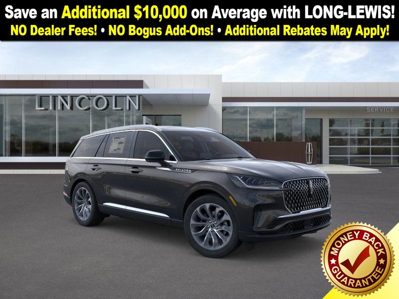 Infinite Black Metallic Clearcoat 2026 Lincoln Aviator Premiere NLT RWD 10-Speed Automatic 3.0L V6 10 Speakers, 3rd row seats: split-bench, 4-Wheel Disc Brakes, ABS brakes, Adaptive suspension, Air Conditioning, Alloy wheels, AM/FM radio: SiriusXM, Apple CarPlay/Android Auto, Audio memory, Auto High-beam Headlights, Auto-dimming door mirrors, Auto-dimming Rear-View mirror, Automatic temperature control, Brake assist, Bumpers: body-color, Compass, Delay-off headlights, Driver door bin, Driver vanity mirror, Dual front impact airbags, Dual front side impact airbags, Electronic Stability Control, Emergency communication system: 911 Assist, Exterior Parking Camera Rear, Four wheel independent suspension, Front anti-roll bar, Front Bucket Seats, Front Center Armrest, Front dual zone A/C, Front reading lights, Fully automatic headlights, Garage door transmitter, Heated door mirrors, Heated front seats, Heated steering wheel, HVAC memory, Illuminated entry, Knee airbag, Leather steering wheel, Lincoln BlueCruise Equipped (4-Years Included), Lincoln Connectivity Package (4-years included), Lincoln Digital Experience, Lincoln Soft Touch Heated Comfort Seats, Low tire pressure warning, Memory seat, Navigation System, Occupant sensing airbag, Outside temperature display, Overhead airbag, Overhead console, Panic alarm, Passenger door bin, Passenger vanity mirror, Power door mirrors, Power driver seat, Power Liftgate, Power passenger seat, Power steering, Power windows, Radio data system, Radio: Lincoln Premium AM/FM/HD Audio System, Rain sensing wipers, Rear air conditioning, Rear anti-roll bar, Rear audio controls, Rear reading lights, Rear window defroster, Rear window wiper, Remote keyless entry, Security system, SiriusXM, Speed control, Speed-Sensitive Wipers, Split folding rear seat, Spoiler, Steering wheel mounted A/C controls, Steering wheel mounted audio controls, Tachometer, Telescoping steering wheel, Tilt steering wheel, Traction control, Trip computer, Turn signal indicator mirrors, Variably intermittent wipers, Wheels: 20" Magnetic Bright-Machined Aluminum, Wheels: 21" Bright Machined Aluminum.