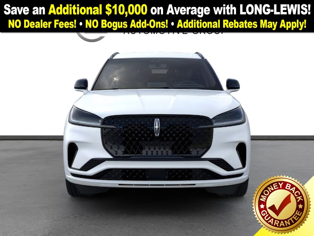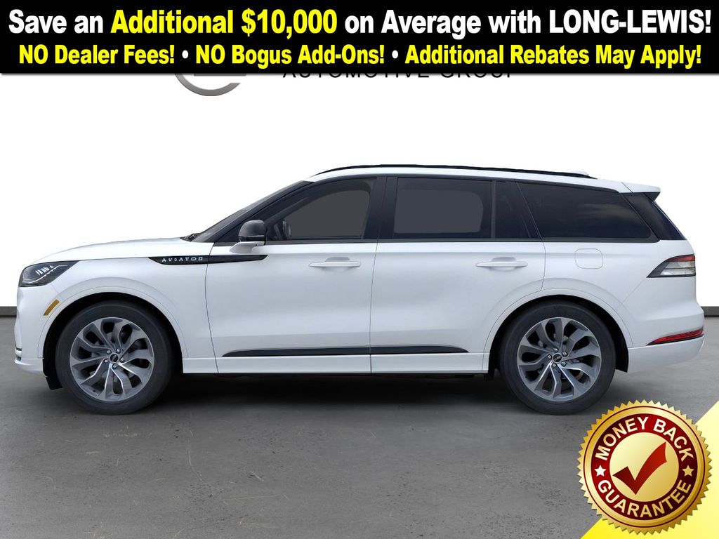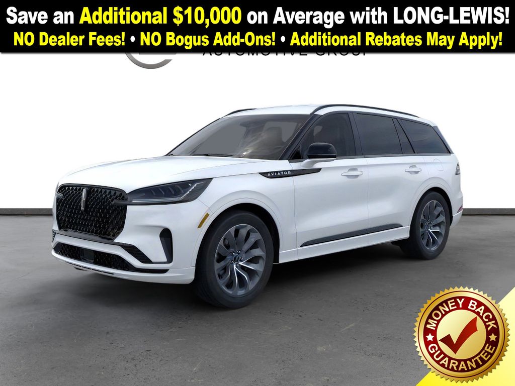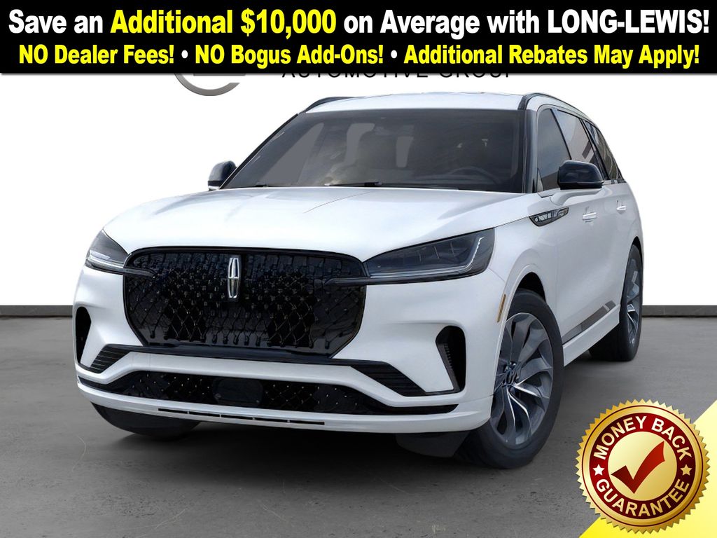 Pristine White Metallic Tri-Coat 2026 Lincoln Aviator Premiere NLT RWD 10-Speed Automatic 3.0L V6 10 Speakers, 3rd row seats: split-bench, 4-Wheel Disc Brakes, ABS brakes, Adaptive suspension, Air Conditioning, Alloy wheels, AM/FM radio: SiriusXM, Apple CarPlay/Android Auto, Audio memory, Auto High-beam Headlights, Auto-dimming door mirrors, Auto-dimming Rear-View mirror, Automatic temperature control, Black Exterior Elements, Body-Color Exterior Elements, Brake assist, Bumpers: body-color, Compass, Delay-off headlights, Driver door bin, Driver vanity mirror, Dual front impact airbags, Dual front side impact airbags, Electronic Stability Control, Emergency communication system: 911 Assist, Exterior Parking Camera Rear, Four wheel independent suspension, Front anti-roll bar, Front Bucket Seats, Front Center Armrest, Front dual zone A/C, Front reading lights, Fully automatic headlights, Garage door transmitter, Heated door mirrors, Heated front seats, Heated steering wheel, HVAC memory, Illuminated entry, Jet Appearance Package, Knee airbag, Leather steering wheel, Lincoln BlueCruise Equipped (4-Years Included), Lincoln Connectivity Package (4-years included), Lincoln Digital Experience, Lincoln Soft Touch Heated Comfort Seats, Low tire pressure warning, Memory seat, Navigation System, Occupant sensing airbag, Outside temperature display, Overhead airbag, Overhead console, Panic alarm, Passenger door bin, Passenger vanity mirror, Power door mirrors, Power driver seat, Power Liftgate, Power passenger seat, Power steering, Power windows, Radio data system, Radio: Lincoln Premium AM/FM/HD Audio System, Rain sensing wipers, Rear air conditioning, Rear anti-roll bar, Rear audio controls, Rear reading lights, Rear window defroster, Rear window wiper, Remote keyless entry, Security system, SiriusXM, Speed control, Speed-Sensitive Wipers, Split folding rear seat, Spoiler, Steering wheel mounted A/C controls, Steering wheel mounted audio controls, Tachometer, Telescoping steering wheel, Tilt steering wheel, Traction control, Trip computer, Turn signal indicator mirrors, Variably intermittent wipers, Wheels: 20" Magnetic Bright-Machined Aluminum, Wheels: 21" Bright Machined Aluminum, Wheels: 21" Bright-Machined Aluminum.