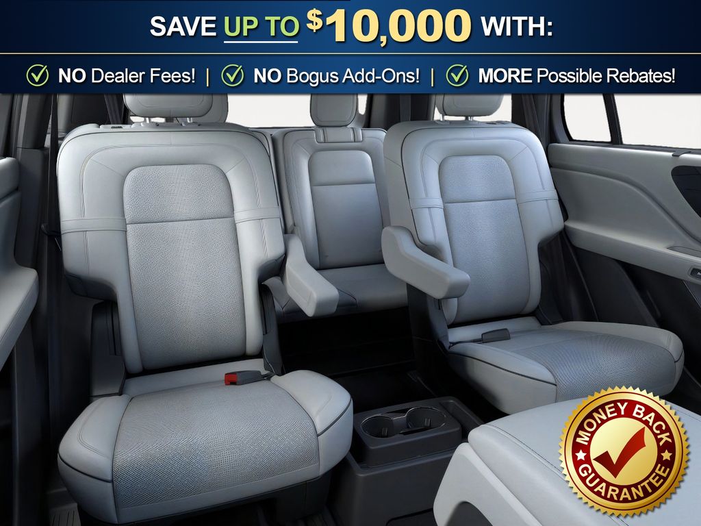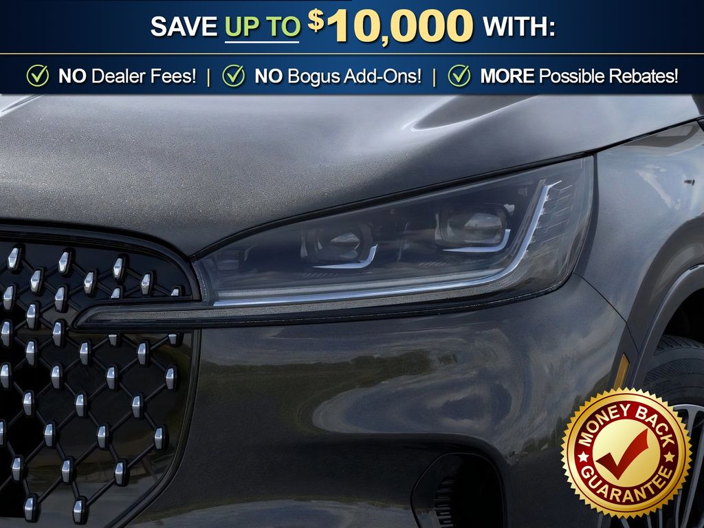 Infinite Black Metallic Clearcoat 2026 Lincoln Aviator Black Label NLT AWD 10-Speed Automatic 3.0L V6 28 Speakers, 30-Way Perfect Position Seats with Active Motion, 3rd row seats: split-bench, 4-Wheel Disc Brakes, ABS brakes, Adaptive suspension, Air Conditioning, Alloy wheels, AM/FM radio: SiriusXM, Apple CarPlay/Android Auto, Audio memory, Auto Heated and Ventilated Driver and Passenger Seats, Auto High-beam Headlights, Auto-dimming door mirrors, Auto-dimming Rear-View mirror, Automatic temperature control, Brake assist, Bumpers: body-color, Compass, Delay-off headlights, Driver door bin, Driver vanity mirror, Dual front impact airbags, Dual front side impact airbags, Electronic Stability Control, Emergency communication system: 911 Assist, Four wheel independent suspension, Front anti-roll bar, Front Bucket Seats, Front Center Armrest, Front dual zone A/C, Front reading lights, Fully automatic headlights, Garage door transmitter, Genuine wood console insert, Genuine wood dashboard insert, Head restraints memory, Heads-Up Display, Heated door mirrors, Heated front seats, Heated rear seats, Heated steering wheel, HVAC memory, Illuminated entry, Knee airbag, Leather steering wheel, Lincoln App, Lincoln Connectivity Package (4-Years), Lincoln Digital Experience, Low tire pressure warning, Memory seat, Navigation system: Google Maps, Occupant sensing airbag, Opulence Leather Captain's Chairs, Outside temperature display, Overhead airbag, Overhead console, Panic alarm, Passenger door bin, Passenger vanity mirror, Power adjustable front head restraints, Power door mirrors, Power driver seat, Power Liftgate, Power moonroof: Panoramic Vista Roof, Power passenger seat, Power steering, Power windows, Radio data system, Radio: Revel Ultima 3D Audio System with 28 Speakers, Rain sensing wipers, Rear air conditioning, Rear anti-roll bar, Rear audio controls, Rear dual zone A/C, Rear reading lights, Rear window defroster, Rear window wiper, Remote keyless entry, Security system, SiriusXM, Speed control, Speed-Sensitive Wipers, Split folding rear seat, Spoiler, Steering wheel memory, Steering wheel mounted A/C controls, Steering wheel mounted audio controls, Tachometer, Telescoping steering wheel, Tilt steering wheel, Traction control, Trip computer, Turn signal indicator mirrors, Variably intermittent wipers, Ventilated front seats, Ventilated rear seats, Wheels: 22" Bright-Machined Aluminum with Ebony Painted Pockets.