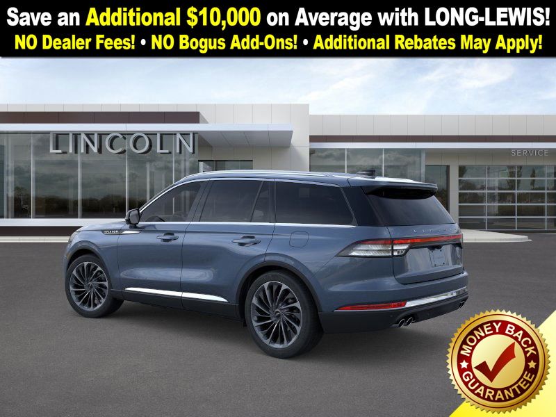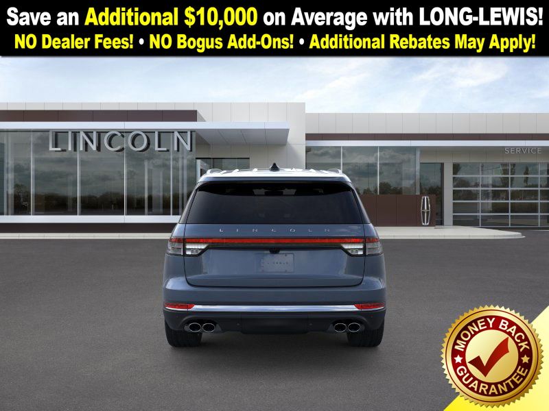 Whisper Blue Metallic Clearcoat 2026 Lincoln Aviator Reserve NLT AWD 10-Speed Automatic 3.0L V6 14 Speakers, 3rd row seats: split-bench, 4-Wheel Disc Brakes, 40/Mini Console/40 Dual Captain's Chairs, ABS brakes, Adaptive Dynamic Bending Lighting, Adaptive Pixel LED Headlamps, Adaptive suspension, Advanced Heads-Up Display, Air Conditioning, Alloy wheels, AM/FM radio: SiriusXM, Apple CarPlay/Android Auto, Audio memory, Auto Air Refresh, Auto High-beam Headlights, Auto-dimming door mirrors, Auto-dimming Rear-View mirror, Automatic temperature control, Brake assist, Bumpers: body-color, Compass, Delay-off headlights, Driver door bin, Driver vanity mirror, Dual front impact airbags, Dual front side impact airbags, Electronic Stability Control, Emergency communication system: 911 Assist, Exterior Parking Camera Rear, Four wheel independent suspension, Front anti-roll bar, Front Bucket Seats, Front Center Armrest, Front dual zone A/C, Front reading lights, Full Rear Console, Fully automatic headlights, Garage door transmitter, Genuine wood console insert, Genuine wood dashboard insert, Heads-Up Display, Heated door mirrors, Heated front seats, Heated steering wheel, HVAC memory, Illuminated entry, Illuminated Lincoln Star in Grille, Illumination Package, Knee airbag, Leather steering wheel, Lincoln BlueCruise Equipped (4-Years Included), Lincoln Connectivity Package (4-years included), Lincoln Digital Experience, Lincoln Dynamic Signature Lighting, Low tire pressure warning, Memory seat, Navigation System, Occupant sensing airbag, Outside temperature display, Overhead airbag, Overhead console, Panic alarm, Passenger door bin, Passenger vanity mirror, Power door mirrors, Power driver seat, Power Liftgate, Power moonroof: Panoramic Vista Roof, Power passenger seat, Power steering, Power windows, Premium Lthr Heated/Ventilated Fnt Captain's Chairs, Radio data system, Radio: Revel Audio System w/14 Speakers, Rain sensing wipers, Rear air conditioning, Rear anti-roll bar, Rear audio controls, Rear dual zone A/C, Rear reading lights, Rear window defroster, Rear window wiper, Remote keyless entry, Security system, SiriusXM, Speed control, Speed Dependent Lighting, Speed-Sensitive Wipers, Split folding rear seat, Spoiler, Steering wheel memory, Steering wheel mounted A/C controls, Steering wheel mounted audio controls, Tachometer, Telescoping steering wheel, Tilt steering wheel, Traction control, Trip computer, Turn signal indicator mirrors, Variably intermittent wipers, Ventilated front seats, Wheels: 21" Bright-Machined Aluminum, Wheels: 22" Bright-Machined Aluminum, Wireless Charging Pad.