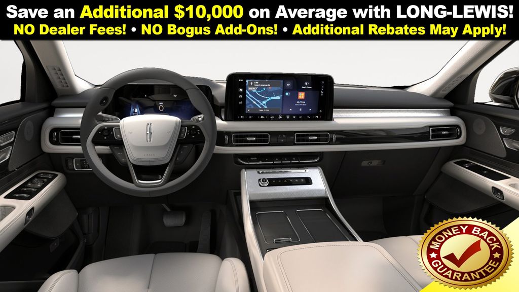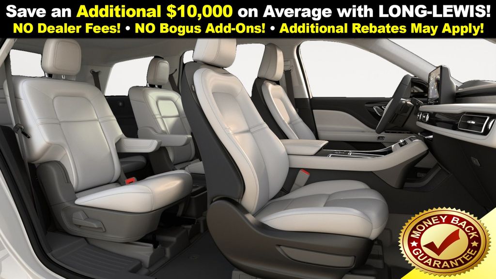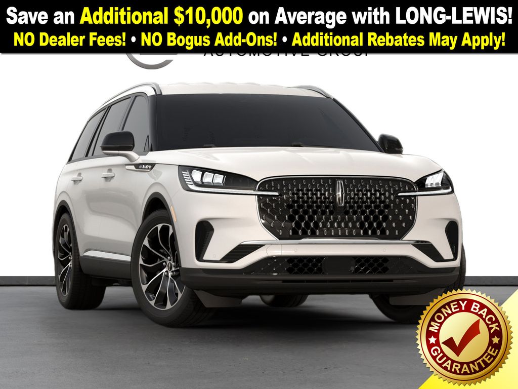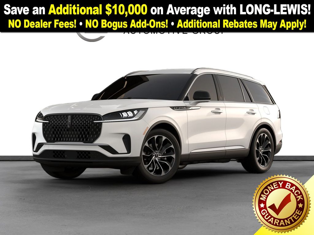 Pristine White Metallic Tri-Coat 2026 Lincoln Aviator Premiere NLT RWD 10-Speed Automatic 3.0L V6 10 Speakers, 3rd row seats: split-bench, 4-Wheel Disc Brakes, ABS brakes, Adaptive suspension, Air Conditioning, Alloy wheels, AM/FM radio: SiriusXM, Apple CarPlay/Android Auto, Audio memory, Auto High-beam Headlights, Auto-dimming door mirrors, Auto-dimming Rear-View mirror, Automatic temperature control, Brake assist, Bumpers: body-color, Compass, Delay-off headlights, Driver door bin, Driver vanity mirror, Dual front impact airbags, Dual front side impact airbags, Electronic Stability Control, Emergency communication system: 911 Assist, Four wheel independent suspension, Front anti-roll bar, Front Bucket Seats, Front Center Armrest, Front dual zone A/C, Front reading lights, Fully automatic headlights, Garage door transmitter, Heads-Up Display, Heated door mirrors, Heated Front Driver and Passenger Seats, Heated front seats, Heated steering wheel, HVAC memory, Illuminated entry, Knee airbag, Leather steering wheel, Lincoln App, Lincoln BlueCruise Equipped (4-Years Included), Lincoln Connectivity Package (4-Years), Lincoln Digital Experience, Lincoln Soft Touch Comfort Seats, Low tire pressure warning, Memory seat, Navigation system: Google Maps, Occupant sensing airbag, Outside temperature display, Overhead airbag, Overhead console, Panic alarm, Passenger door bin, Passenger vanity mirror, Power door mirrors, Power driver seat, Power Liftgate, Power passenger seat, Power steering, Power windows, Radio data system, Radio: Lincoln Premium AM/FM/HD Audio System with 10 Speakers, Rain sensing wipers, Rear air conditioning, Rear anti-roll bar, Rear audio controls, Rear reading lights, Rear window defroster, Rear window wiper, Remote keyless entry, Security system, SiriusXM, Speed control, Speed-Sensitive Wipers, Split folding rear seat, Spoiler, Steering wheel mounted A/C controls, Steering wheel mounted audio controls, Tachometer, Telescoping steering wheel, Tilt steering wheel, Traction control, Trip computer, Turn signal indicator mirrors, Variably intermittent wipers, Wheels: 20" Magnetic Bright-Machined Aluminum, Wheels: 21" Bright Machined Aluminum with Dark Alloy Painted Pockets.