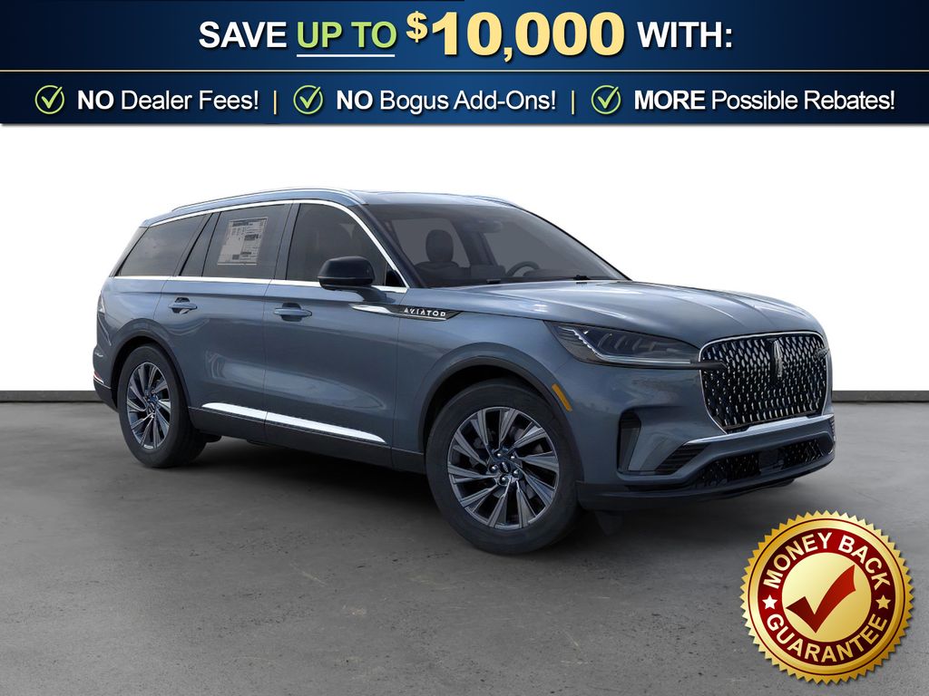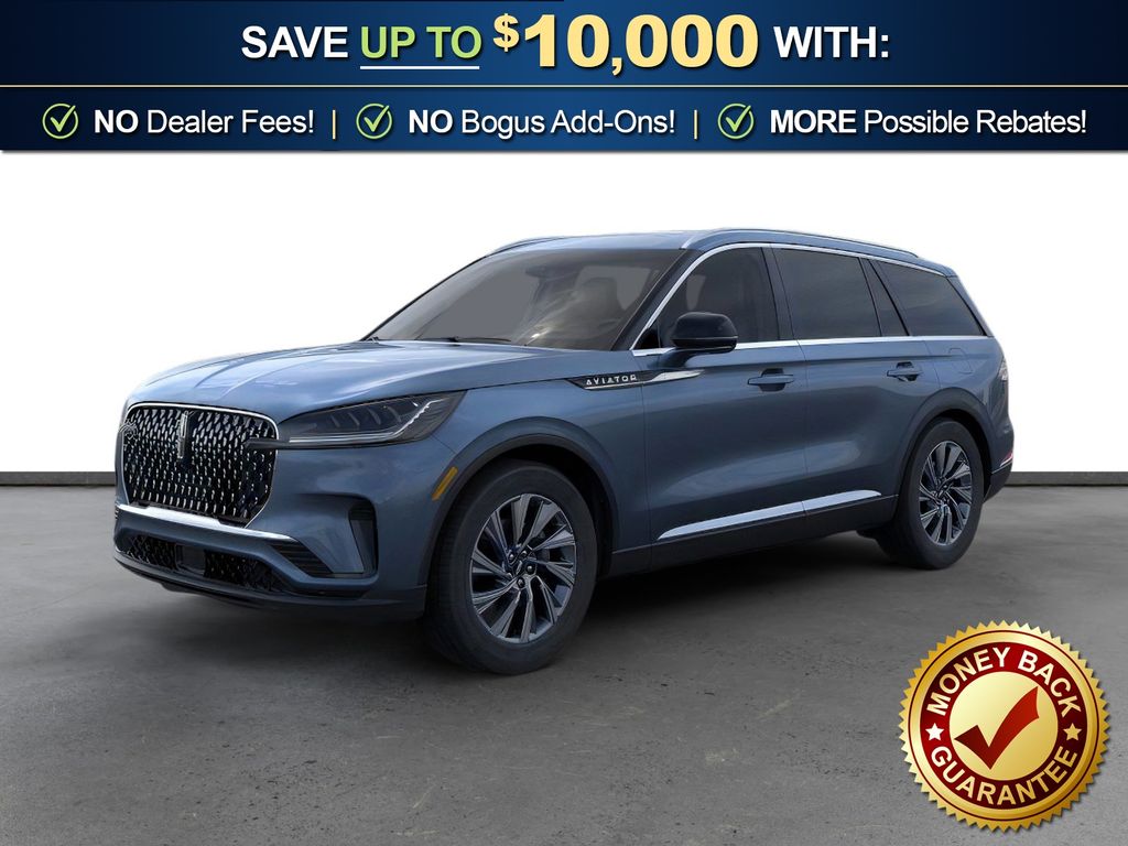 Dealer Discount of $2,382 off MSRP Whisper Blue Metallic Clearcoat 2026 Lincoln Aviator Premiere NLT AWD 10-Speed Automatic 3.0L V6 10 Speakers, 3rd row seats: split-bench, 4-Wheel Disc Brakes, ABS brakes, Adaptive suspension, Air Conditioning, Alloy wheels, AM/FM radio: SiriusXM, Apple CarPlay/Android Auto, Audio memory, Auto High-beam Headlights, Auto-dimming door mirrors, Auto-dimming Rear-View mirror, Automatic temperature control, Brake assist, Bumpers: body-color, Compass, Delay-off headlights, Driver door bin, Driver vanity mirror, Dual front impact airbags, Dual front side impact airbags, Electronic Stability Control, Emergency communication system: 911 Assist, Four wheel independent suspension, Front anti-roll bar, Front Bucket Seats, Front Center Armrest, Front dual zone A/C, Front reading lights, Fully automatic headlights, Garage door transmitter, Heads-Up Display, Heated door mirrors, Heated Front Driver and Passenger Seats, Heated front seats, Heated steering wheel, HVAC memory, Illuminated entry, Knee airbag, Leather steering wheel, Lincoln App, Lincoln BlueCruise Equipped (4-Years Included), Lincoln Connectivity Package (4-Years), Lincoln Digital Experience, Lincoln Soft Touch Comfort Seats, Low tire pressure warning, Memory seat, Navigation system: Google Maps, Occupant sensing airbag, Outside temperature display, Overhead airbag, Overhead console, Panic alarm, Passenger door bin, Passenger vanity mirror, Power door mirrors, Power driver seat, Power Liftgate, Power passenger seat, Power steering, Power windows, Radio data system, Radio: Lincoln Premium AM/FM/HD Audio System with 10 Speakers, Rain sensing wipers, Rear air conditioning, Rear anti-roll bar, Rear audio controls, Rear reading lights, Rear window defroster, Rear window wiper, Remote keyless entry, Security system, SiriusXM, Speed control, Speed-Sensitive Wipers, Split folding rear seat, Spoiler, Steering wheel mounted A/C controls, Steering wheel mounted audio controls, Tachometer, Telescoping steering wheel, Tilt steering wheel, Traction control, Trip computer, Turn signal indicator mirrors, Variably intermittent wipers, Wheels: 20" Magnetic Bright-Machined Aluminum.