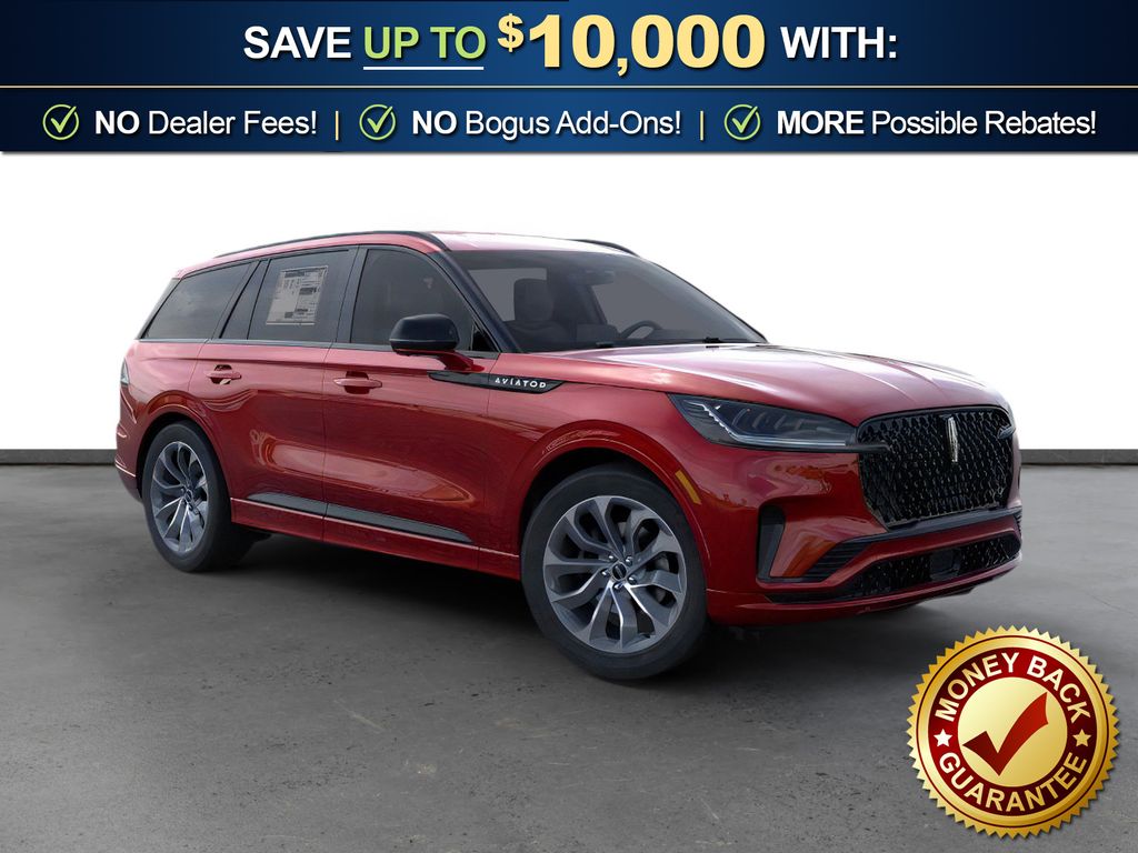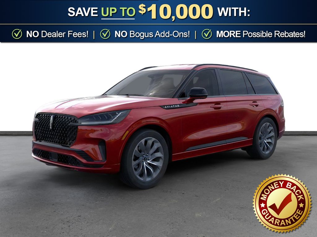 Red Carpet Tinted Clearcoat 2026 Lincoln Aviator Premiere NLT RWD 10-Speed Automatic 3.0L V6 10 Speakers, 3rd row seats: split-bench, 4-Wheel Disc Brakes, ABS brakes, Adaptive suspension, Air Conditioning, Alloy wheels, AM/FM radio: SiriusXM, Apple CarPlay/Android Auto, Audio memory, Auto High-beam Headlights, Auto-dimming door mirrors, Auto-dimming Rear-View mirror, Automatic temperature control, Black Exterior Elements, Body-Color Exterior Elements, Brake assist, Bumpers: body-color, Compass, Delay-off headlights, Driver door bin, Driver vanity mirror, Dual front impact airbags, Dual front side impact airbags, Electronic Stability Control, Emergency communication system: 911 Assist, Four wheel independent suspension, Front anti-roll bar, Front Bucket Seats, Front Center Armrest, Front dual zone A/C, Front reading lights, Fully automatic headlights, Garage door transmitter, Heads-Up Display, Heated door mirrors, Heated Front Driver and Passenger Seats, Heated front seats, Heated steering wheel, HVAC memory, Illuminated entry, Jet Appearance Package, Knee airbag, Leather steering wheel, Lincoln App, Lincoln BlueCruise Equipped (4-Years Included), Lincoln Connectivity Package (4-Years), Lincoln Digital Experience, Lincoln Soft Touch Comfort Seats, Low tire pressure warning, Memory seat, Navigation system: Google Maps, Occupant sensing airbag, Outside temperature display, Overhead airbag, Overhead console, Panic alarm, Passenger door bin, Passenger vanity mirror, Power door mirrors, Power driver seat, Power Liftgate, Power passenger seat, Power steering, Power windows, Radio data system, Radio: Lincoln Premium AM/FM/HD Audio System with 10 Speakers, Rain sensing wipers, Rear air conditioning, Rear anti-roll bar, Rear audio controls, Rear reading lights, Rear window defroster, Rear window wiper, Remote keyless entry, Security system, SiriusXM, Speed control, Speed-Sensitive Wipers, Split folding rear seat, Spoiler, Steering wheel mounted A/C controls, Steering wheel mounted audio controls, Tachometer, Telescoping steering wheel, Tilt steering wheel, Traction control, Trip computer, Turn signal indicator mirrors, Variably intermittent wipers, Wheels: 20" Magnetic Bright-Machined Aluminum, Wheels: 21" Bright Machined Aluminum with Dark Alloy Painted Pockets.