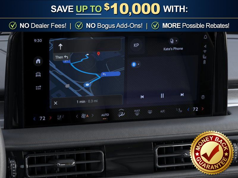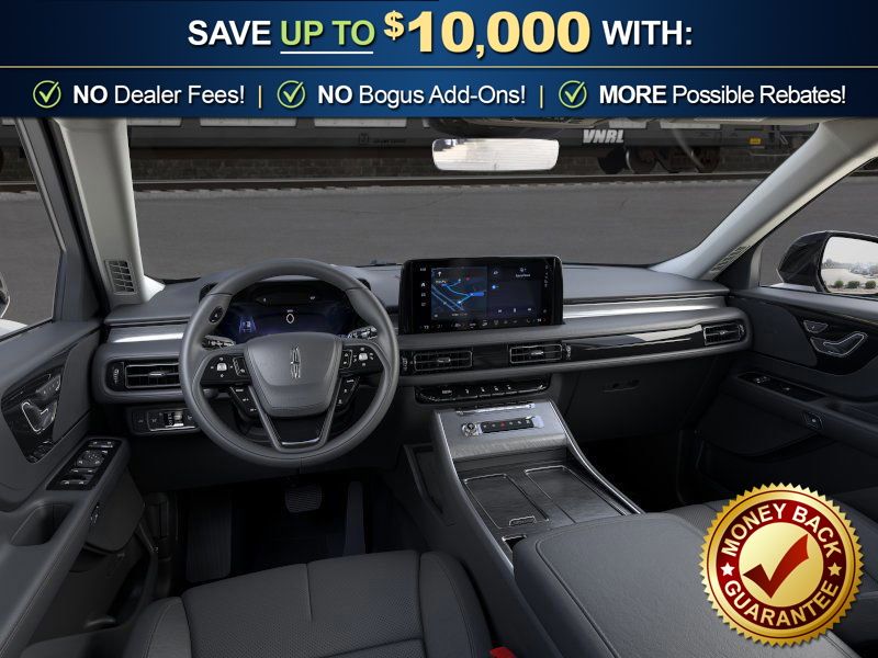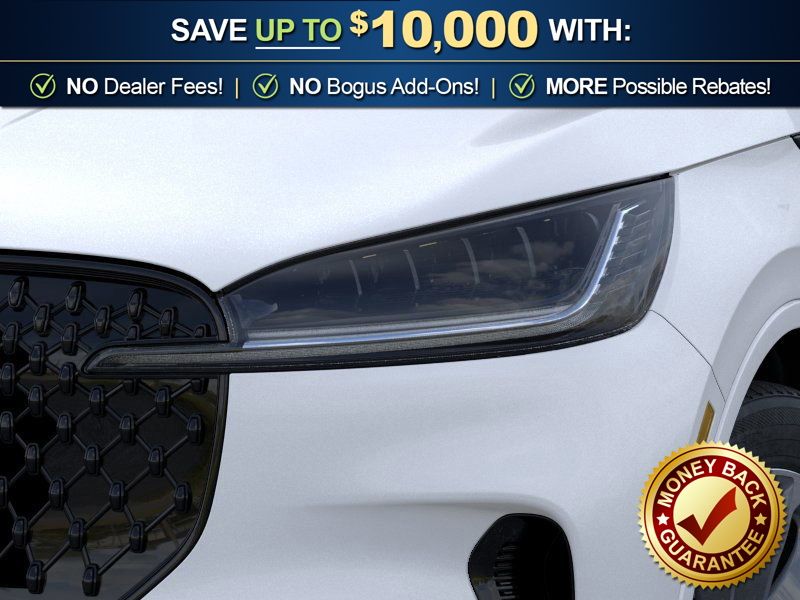 Equipment Group 101A Premiere II (Auto Air Refresh, Lincoln App, Lincoln BlueCruise Equipped (4-Years Included), Lincoln Digital Experience, Lincoln Soft Touch Comfort Seats, Panoramic Vista Roof with Power Shade, Power Tilt Telescoping Steering Column with Memory, Radio: Lincoln Premium AM/FM/HD Audio System with 10 Speakers, SiriusXM, Wheels: 20" Magnetic Bright-Machined Aluminum, and Wireless Charging), Jet Appearance Package (Black Exterior Elements, Body-Color Exterior Elements, and Wheels: 21" Bright Machined Aluminum with Dark Alloy Painted Pockets), Lincoln Connectivity Package (4-Years), 10 Speakers, 3rd row seats: split-bench, 4-Wheel Disc Brakes, ABS brakes, Adaptive suspension, Air Conditioning, Alloy wheels, AM/FM radio: SiriusXM, Apple CarPlay/Android Auto, Audio memory, Auto High-beam Headlights, Auto-dimming door mirrors, Auto-dimming Rear-View mirror, Automatic temperature control, Brake assist, Bumpers: body-color, Compass, Delay-off headlights, Driver door bin, Driver vanity mirror, Dual front impact airbags, Dual front side impact airbags, Electronic Stability Control, Emergency communication system: 911 Assist, Four wheel independent suspension, Front anti-roll bar, Front Bucket Seats, Front Center Armrest, Front dual zone A/C, Front reading lights, Fully automatic headlights, Garage door transmitter, Heads-Up Display, Heated door mirrors, Heated Front Driver and Passenger Seats, Heated front seats, Heated steering wheel, HVAC memory, Illuminated entry, Knee airbag, Leather steering wheel, Low tire pressure warning, Memory seat, Navigation system: Google Maps, Occupant sensing airbag, Outside temperature display, Overhead airbag, Overhead console, Panic alarm, Passenger door bin, Passenger vanity mirror, Power door mirrors, Power driver seat, Power Liftgate, Power passenger seat, Power steering, Power windows, Radio data system, Rain sensing wipers, Rear air conditioning, Rear anti-roll bar, Rear audio controls, Rear reading lights, Rear window defroster, Rear window wiper, Remote keyless entry, Security system, Speed control, Speed-Sensitive Wipers, Split folding rear seat, Spoiler, Steering wheel mounted A/C controls, Steering wheel mounted audio controls, Tachometer, Telescoping steering wheel, Tilt steering wheel, Traction control, Trip computer, Turn signal indicator mirrors, and Variably intermittent wipers. Price includes: $4000 - Retail Customer Cash. Exp. 03/31/2026