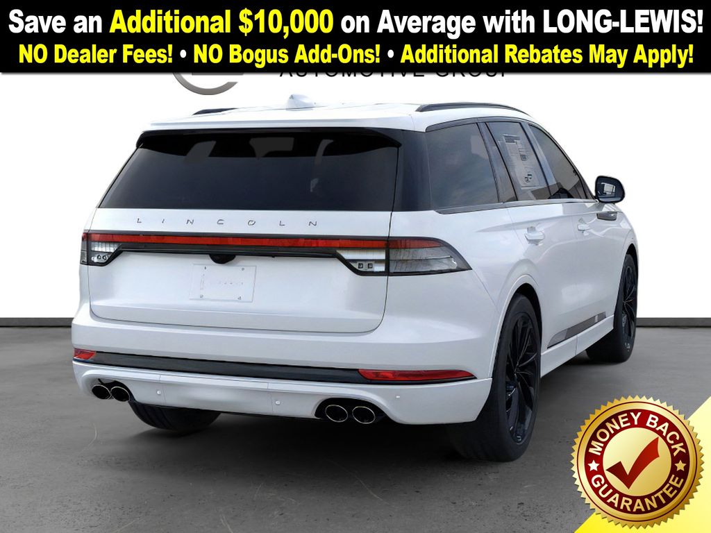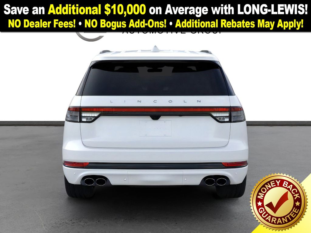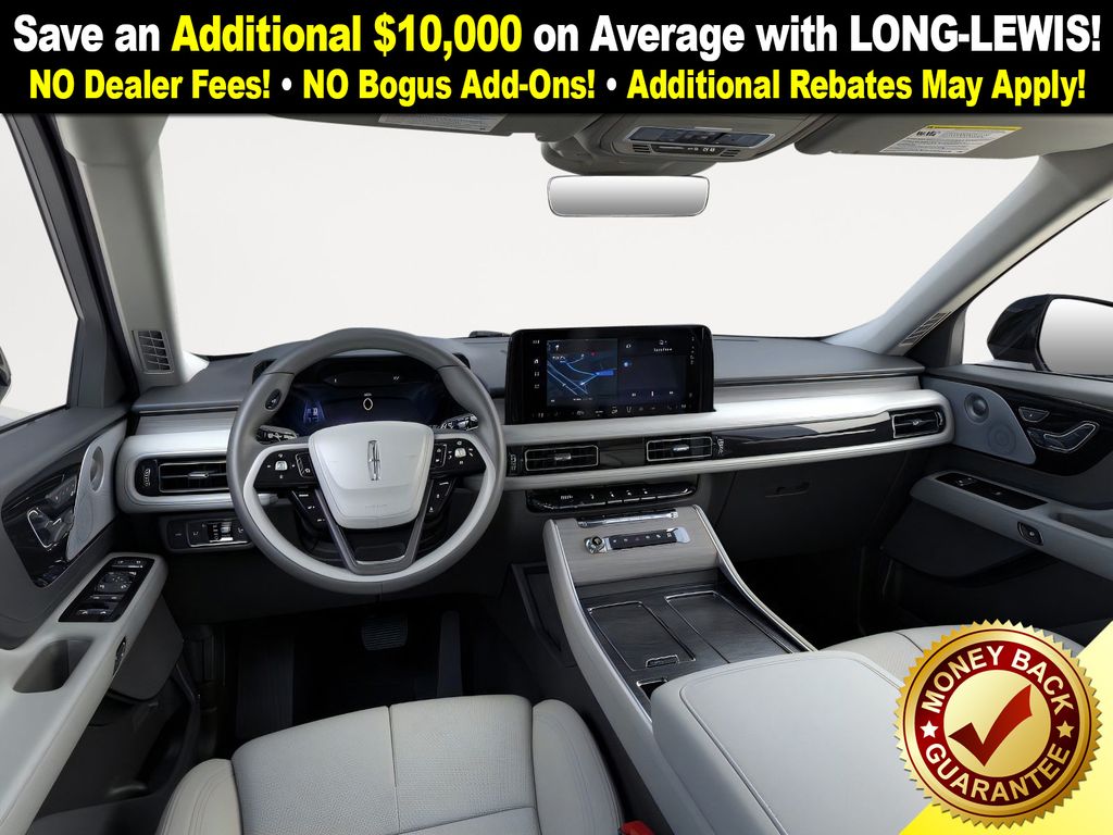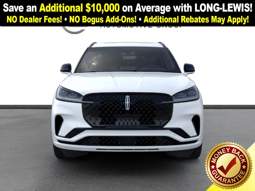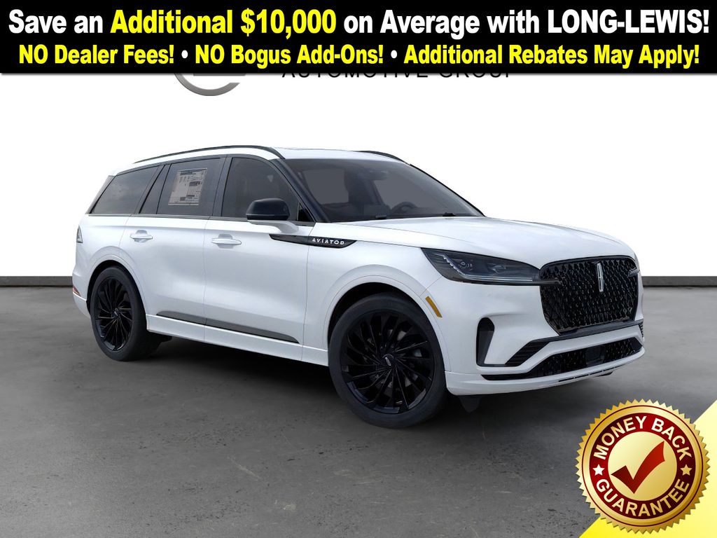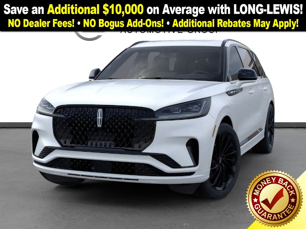 Pristine White Metallic Tri-Coat 2026 Lincoln Aviator Reserve NLT AWD 10-Speed Automatic 3.0L V6 14 Speakers, 3rd row seats: split-bench, 4-Wheel Disc Brakes, 40/Mini Console/40 Dual Captain's Chairs, ABS brakes, Adaptive suspension, Air Conditioning, Alloy wheels, AM/FM radio: SiriusXM, Apple CarPlay/Android Auto, Audio memory, Auto Heated and Ventilated Driver and Passenger Seats, Auto High-beam Headlights, Auto-dimming door mirrors, Auto-dimming Rear-View mirror, Automatic temperature control, Black Exterior Elements, Body-Color Exterior Elements, Brake assist, Bumpers: body-color, Compass, Delay-off headlights, Driver door bin, Driver vanity mirror, Dual front impact airbags, Dual front side impact airbags, Electronic Stability Control, Emergency communication system: 911 Assist, Four wheel independent suspension, Front anti-roll bar, Front Bucket Seats, Front Center Armrest, Front dual zone A/C, Front reading lights, Fully automatic headlights, Garage door transmitter, Genuine wood console insert, Genuine wood dashboard insert, Heads-Up Display, Heated door mirrors, Heated front seats, Heated steering wheel, HVAC memory, Illuminated entry, Jet Appearance Package, Knee airbag, Leather steering wheel, Lincoln App, Lincoln BlueCruise Equipped (4-Years Included), Lincoln Connectivity Package (4-Years), Lincoln Digital Experience, Low tire pressure warning, Memory seat, Navigation system: Google Maps, Occupant sensing airbag, Outside temperature display, Overhead airbag, Overhead console, Panic alarm, Passenger door bin, Passenger vanity mirror, Power door mirrors, Power driver seat, Power Liftgate, Power moonroof: Panoramic Vista Roof, Power passenger seat, Power steering, Power windows, Premium Leather Front Captain's Chairs, Radio data system, Radio: Revel Audio System with 14 Speakers, Rain sensing wipers, Rear air conditioning, Rear anti-roll bar, Rear audio controls, Rear dual zone A/C, Rear reading lights, Rear window defroster, Rear window wiper, Remote keyless entry, Security system, SiriusXM, Speed control, Speed-Sensitive Wipers, Split folding rear seat, Spoiler, Steering wheel memory, Steering wheel mounted A/C controls, Steering wheel mounted audio controls, Tachometer, Telescoping steering wheel, Tilt steering wheel, Traction control, Trip computer, Turn signal indicator mirrors, Variably intermittent wipers, Ventilated front seats, Wheels: 21" Bright-Machined Aluminum with Dark Alloy Painted Pockets, Wheels: 22" Black Aluminum, Wireless Charging Pad.