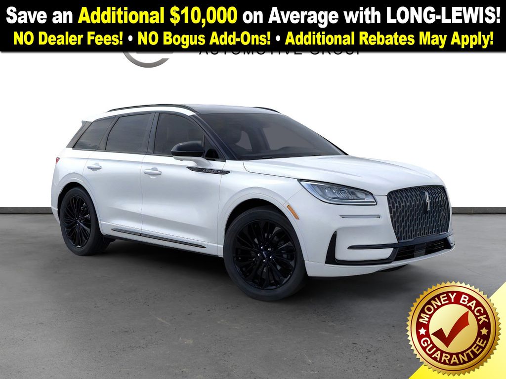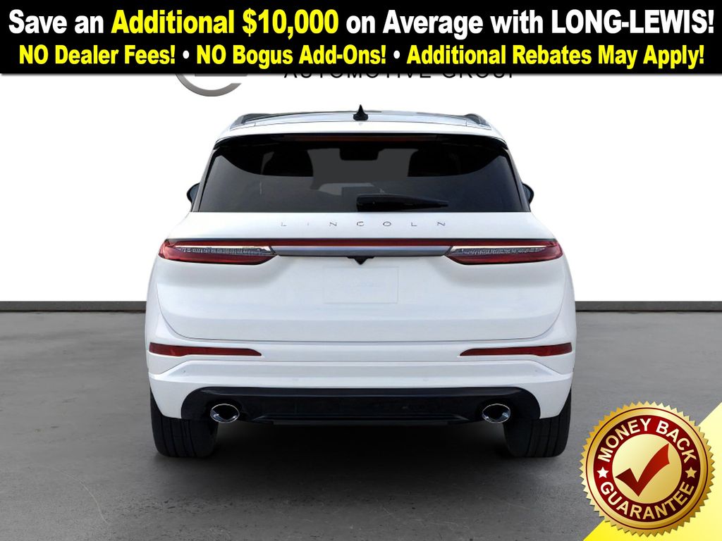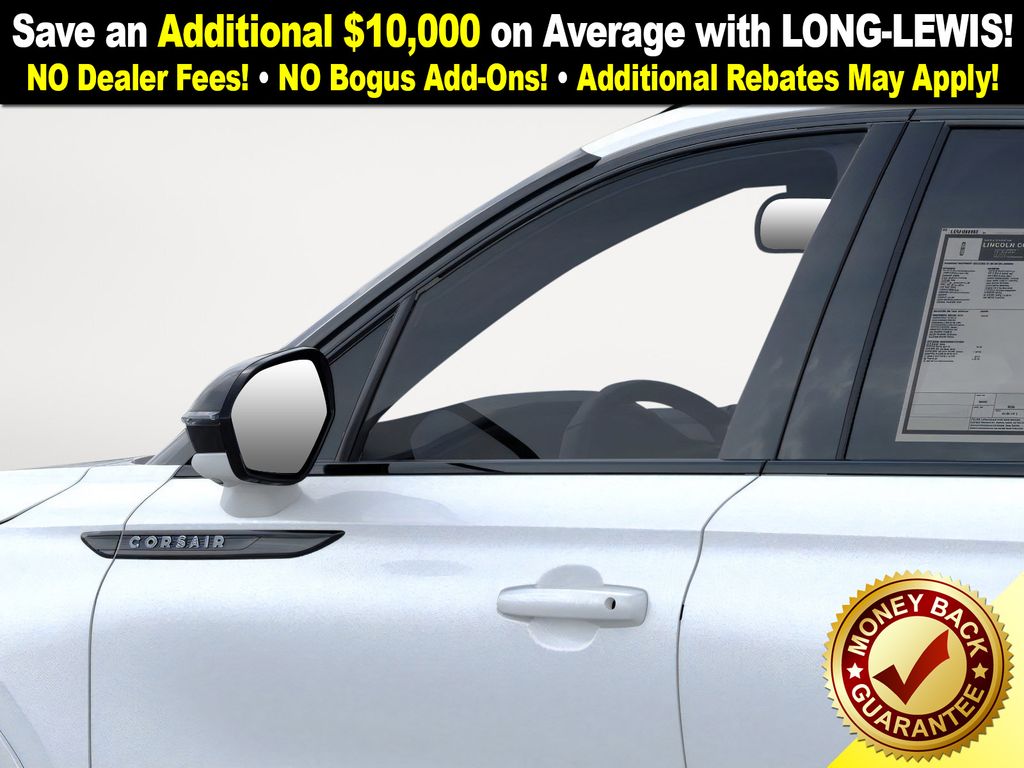 Pristine White Metallic Tri-Coat 2026 Lincoln Corsair Premiere NLT FWD 8-Speed Automatic 2.0L I4 4-Wheel Disc Brakes, 9 Speakers, ABS brakes, Air Conditioning, Alexa Built-In, Alloy wheels, AM/FM radio: SiriusXM with 360L, Apple CarPlay/Android Auto, Auto High-beam Headlights, Auto-dimming Rear-View mirror, Automatic temperature control, Body-Color Exterior Elements, Brake assist, Bumpers: body-color, Compass, Delay-off headlights, Driver door bin, Driver vanity mirror, Dual front impact airbags, Dual front side impact airbags, Electronic Stability Control, Emergency communication system: 911 Assist, Exterior Parking Camera Rear, Four wheel independent suspension, Front anti-roll bar, Front Bucket Seats, Front Center Armrest, Front dual zone A/C, Front reading lights, Fully automatic headlights, Heated door mirrors, Heated front seats, Illuminated entry, Jet Appearance Package, Knee airbag, Leather steering wheel, Lincoln Soft Touch Heated Front Captain's Chairs, Low tire pressure warning, Memory seat, Micro-Perf Lincoln Soft Touch Captain's Chairs, Navigation system: Connected Navigation (4-year trial), Occupant sensing airbag, Outside temperature display, Overhead airbag, Overhead console, Panic alarm, Panoramic Vista Roof w/Power Shade, Passenger door bin, Passenger vanity mirror, Pillar Black Exterior Elements, Power door mirrors, Power driver seat, Power Liftgate, Power passenger seat, Power steering, Power windows, Radio data system, Radio: Lincoln Premium Audio System w/MP3, Rear anti-roll bar, Rear Parking Sensors, Rear reading lights, Rear seat center armrest, Rear window defroster, Rear window wiper, Remote keyless entry, Security system, SiriusXM w/360L Radio, Speed control, Speed-sensing steering, Speed-Sensitive Wipers, Split folding rear seat, Spoiler, Steering wheel mounted A/C controls, Steering wheel mounted audio controls, SYNC 4, Tachometer, Telescoping steering wheel, Tilt steering wheel, Traction control, Trip computer, Variably intermittent wipers, Wheels: 18" Warm Painted Alloy, Wheels: 20" Black Aluminum.