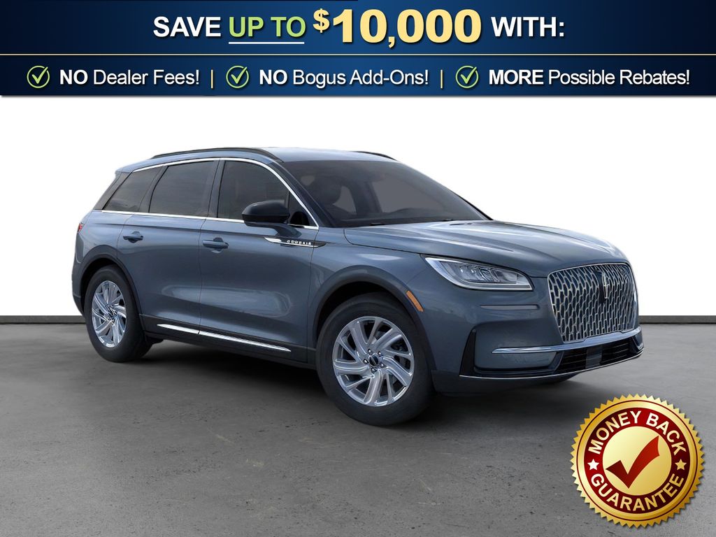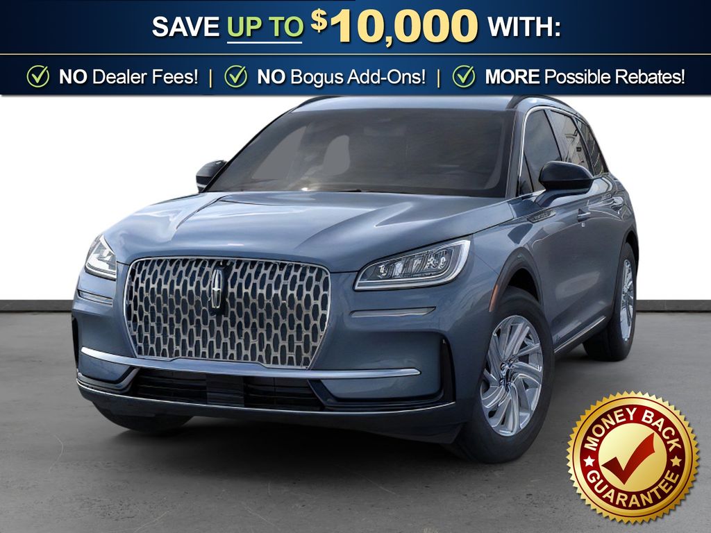 Whisper Blue Metallic Clearcoat 2026 Lincoln Corsair Premiere NLT FWD 8-Speed Automatic 2.0L I4 4-Wheel Disc Brakes, 9 Speakers, ABS brakes, Air Conditioning, Alexa Built-In, Alloy wheels, AM/FM radio: SiriusXM with 360L, Apple CarPlay/Android Auto, Auto High-beam Headlights, Auto-dimming Rear-View mirror, Automatic temperature control, Brake assist, Bumpers: body-color, Compass, Delay-off headlights, Driver door bin, Driver vanity mirror, Dual front impact airbags, Dual front side impact airbags, Electronic Stability Control, Emergency communication system: 911 Assist, Exterior Parking Camera Rear, Four wheel independent suspension, Front anti-roll bar, Front Bucket Seats, Front Center Armrest, Front dual zone A/C, Front reading lights, Fully automatic headlights, Heated door mirrors, Heated front seats, Illuminated entry, Knee airbag, Leather steering wheel, Lincoln Soft Touch Heated Front Captain's Chairs, Low tire pressure warning, Memory seat, Navigation system: Connected Navigation (4-year trial), Occupant sensing airbag, Outside temperature display, Overhead airbag, Overhead console, Panic alarm, Passenger door bin, Passenger vanity mirror, Power door mirrors, Power driver seat, Power Liftgate, Power passenger seat, Power steering, Power windows, Radio data system, Radio: Lincoln Premium Audio System w/MP3, Rear anti-roll bar, Rear Parking Sensors, Rear reading lights, Rear seat center armrest, Rear window defroster, Rear window wiper, Remote keyless entry, Security system, SiriusXM w/360L Radio, Speed control, Speed-sensing steering, Speed-Sensitive Wipers, Split folding rear seat, Spoiler, Steering wheel mounted A/C controls, Steering wheel mounted audio controls, SYNC 4, Tachometer, Telescoping steering wheel, Tilt steering wheel, Traction control, Trip computer, Variably intermittent wipers, Wheels: 18" Warm Painted Alloy.