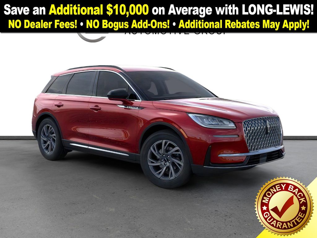 Red Carpet Metallic Tinted Clearcoat 2026 Lincoln Corsair Premiere FCT FWD 8-Speed Automatic 2.0L I4 18" Bright Machined Aluminum Wheels, 4-Wheel Disc Brakes, 9 Speakers, ABS brakes, Air Conditioning, Alexa Built-In, Alloy wheels, AM/FM radio: SiriusXM with 360L, Apple CarPlay/Android Auto, Auto High-beam Headlights, Auto-dimming Rear-View mirror, Automatic temperature control, Brake assist, Bumpers: body-color, Compass, Delay-off headlights, Driver door bin, Driver vanity mirror, Dual front impact airbags, Dual front side impact airbags, Electronic Stability Control, Emergency communication system: 911 Assist, Exterior Parking Camera Rear, Four wheel independent suspension, Front anti-roll bar, Front Bucket Seats, Front Center Armrest, Front dual zone A/C, Front reading lights, Fully automatic headlights, Heated door mirrors, Heated front seats, Illuminated entry, Knee airbag, Leather steering wheel, Lincoln Soft Touch Heated Front Captain's Chairs, Low tire pressure warning, Memory seat, Navigation system: Connected Navigation (4-year trial), Occupant sensing airbag, Outside temperature display, Overhead airbag, Overhead console, Panic alarm, Passenger door bin, Passenger vanity mirror, Power door mirrors, Power driver seat, Power Liftgate, Power passenger seat, Power steering, Power windows, Radio data system, Radio: Lincoln Premium Audio System w/MP3, Rear anti-roll bar, Rear Parking Sensors, Rear reading lights, Rear seat center armrest, Rear window defroster, Rear window wiper, Remote keyless entry, Security system, SiriusXM w/360L Radio, Speed control, Speed-sensing steering, Speed-Sensitive Wipers, Split folding rear seat, Spoiler, Steering wheel mounted A/C controls, Steering wheel mounted audio controls, SYNC 4, Tachometer, Telescoping steering wheel, Tilt steering wheel, Traction control, Trip computer, Variably intermittent wipers, Wheels: 18" Warm Painted Alloy.