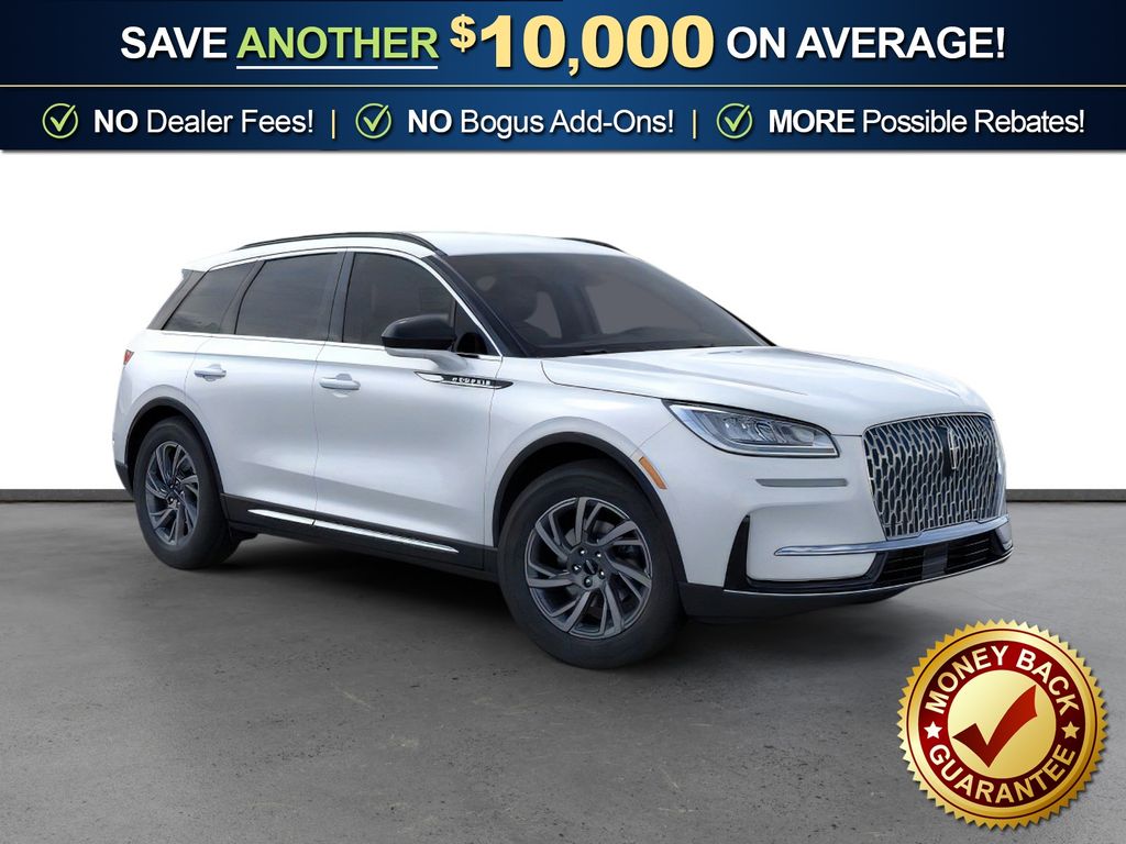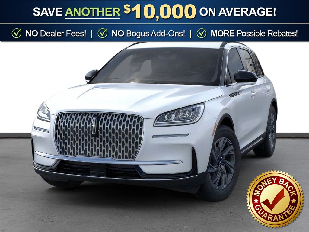 Crystal White Metallic Clearcoat 2026 Lincoln Corsair Premiere fctp FWD 8-Speed Automatic 2.0L I4 18" Bright Machined Aluminum Wheels, 4-Wheel Disc Brakes, 9 Speakers, ABS brakes, Air Conditioning, Alexa Built-In, Alloy wheels, AM/FM radio: SiriusXM with 360L, Apple CarPlay/Android Auto, Auto High-beam Headlights, Auto-dimming Rear-View mirror, Automatic temperature control, Brake assist, Bumpers: body-color, Compass, Delay-off headlights, Driver door bin, Driver vanity mirror, Dual front impact airbags, Dual front side impact airbags, Electronic Stability Control, Emergency communication system: 911 Assist, Exterior Parking Camera Rear, Four wheel independent suspension, Front anti-roll bar, Front Bucket Seats, Front Center Armrest, Front dual zone A/C, Front reading lights, Fully automatic headlights, Heated door mirrors, Heated front seats, Illuminated entry, Knee airbag, Leather steering wheel, Lincoln Soft Touch Heated Front Captain's Chairs, Low tire pressure warning, Memory seat, Navigation system: Connected Navigation (4-year trial), Occupant sensing airbag, Outside temperature display, Overhead airbag, Overhead console, Panic alarm, Passenger door bin, Passenger vanity mirror, Power door mirrors, Power driver seat, Power Liftgate, Power passenger seat, Power steering, Power windows, Radio data system, Radio: Lincoln Premium Audio System w/MP3, Rear anti-roll bar, Rear Parking Sensors, Rear reading lights, Rear seat center armrest, Rear window defroster, Rear window wiper, Remote keyless entry, Security system, SiriusXM w/360L Radio, Speed control, Speed-sensing steering, Speed-Sensitive Wipers, Split folding rear seat, Spoiler, Steering wheel mounted A/C controls, Steering wheel mounted audio controls, SYNC 4, Tachometer, Telescoping steering wheel, Tilt steering wheel, Traction control, Trip computer, Variably intermittent wipers, Wheels: 18" Warm Painted Alloy.