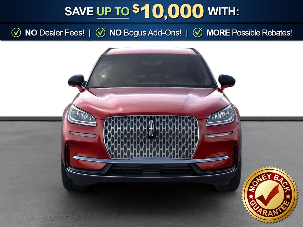 Red Carpet Metallic Tinted Clearcoat 2026 Lincoln Corsair Premiere FCT FWD 8-Speed Automatic 2.0L I4 4-Wheel Disc Brakes, 9 Speakers, ABS brakes, Air Conditioning, Alexa Built-In, Alloy wheels, AM/FM radio: SiriusXM with 360L, Apple CarPlay/Android Auto, Auto High-beam Headlights, Auto-dimming Rear-View mirror, Automatic temperature control, Brake assist, Bumpers: body-color, Compass, Delay-off headlights, Driver door bin, Driver vanity mirror, Dual front impact airbags, Dual front side impact airbags, Electronic Stability Control, Emergency communication system: 911 Assist, Exterior Parking Camera Rear, Four wheel independent suspension, Front anti-roll bar, Front Bucket Seats, Front Center Armrest, Front dual zone A/C, Front reading lights, Fully automatic headlights, Heated door mirrors, Heated front seats, Illuminated entry, Knee airbag, Leather steering wheel, Lincoln Soft Touch Heated Front Captain's Chairs, Low tire pressure warning, Memory seat, Navigation system: Connected Navigation (4-year trial), Occupant sensing airbag, Outside temperature display, Overhead airbag, Overhead console, Panic alarm, Passenger door bin, Passenger vanity mirror, Power door mirrors, Power driver seat, Power Liftgate, Power passenger seat, Power steering, Power windows, Radio data system, Radio: Lincoln Premium Audio System w/MP3, Rear anti-roll bar, Rear Parking Sensors, Rear reading lights, Rear seat center armrest, Rear window defroster, Rear window wiper, Remote keyless entry, Security system, SiriusXM w/360L Radio, Speed control, Speed-sensing steering, Speed-Sensitive Wipers, Split folding rear seat, Spoiler, Steering wheel mounted A/C controls, Steering wheel mounted audio controls, SYNC 4, Tachometer, Telescoping steering wheel, Tilt steering wheel, Traction control, Trip computer, Variably intermittent wipers, Wheels: 18" Warm Painted Alloy.