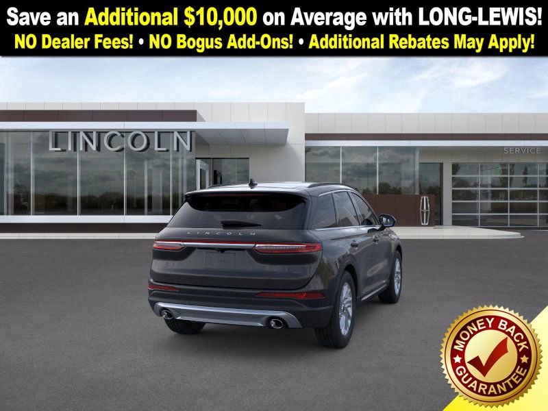 Infinite Black Metallic Clearcoat 2026 Lincoln Corsair Premiere FCT FWD 8-Speed Automatic 2.0L I4 4-Wheel Disc Brakes, 9 Speakers, ABS brakes, Air Conditioning, Alexa Built-In, Alloy wheels, AM/FM radio: SiriusXM with 360L, Apple CarPlay/Android Auto, Auto High-beam Headlights, Auto-dimming Rear-View mirror, Automatic temperature control, Brake assist, Bumpers: body-color, Compass, Delay-off headlights, Driver door bin, Driver vanity mirror, Dual front impact airbags, Dual front side impact airbags, Electronic Stability Control, Emergency communication system: 911 Assist, Exterior Parking Camera Rear, Four wheel independent suspension, Front anti-roll bar, Front Bucket Seats, Front Center Armrest, Front dual zone A/C, Front reading lights, Fully automatic headlights, Heated door mirrors, Heated front seats, Illuminated entry, Knee airbag, Leather steering wheel, Lincoln Soft Touch Heated Front Captain's Chairs, Low tire pressure warning, Memory seat, Navigation system: Connected Navigation (4-year trial), Occupant sensing airbag, Outside temperature display, Overhead airbag, Overhead console, Panic alarm, Passenger door bin, Passenger vanity mirror, Power door mirrors, Power driver seat, Power Liftgate, Power passenger seat, Power steering, Power windows, Radio data system, Radio: Lincoln Premium Audio System w/MP3, Rear anti-roll bar, Rear Parking Sensors, Rear reading lights, Rear seat center armrest, Rear window defroster, Rear window wiper, Remote keyless entry, Security system, SiriusXM w/360L Radio, Speed control, Speed-sensing steering, Speed-Sensitive Wipers, Split folding rear seat, Spoiler, Steering wheel mounted A/C controls, Steering wheel mounted audio controls, SYNC 4, Tachometer, Telescoping steering wheel, Tilt steering wheel, Traction control, Trip computer, Variably intermittent wipers, Wheels: 18" Warm Painted Alloy.