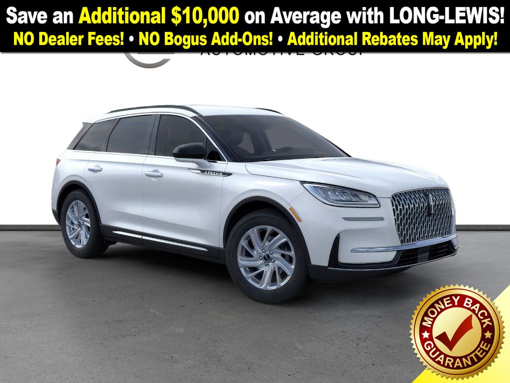 Crystal White Metallic Clearcoat 2026 Lincoln Corsair Premiere FCT FWD 8-Speed Automatic 2.0L I4 4-Wheel Disc Brakes, 9 Speakers, ABS brakes, Air Conditioning, Alexa Built-In, Alloy wheels, AM/FM radio: SiriusXM with 360L, Apple CarPlay/Android Auto, Auto High-beam Headlights, Auto-dimming Rear-View mirror, Automatic temperature control, Brake assist, Bumpers: body-color, Compass, Delay-off headlights, Driver door bin, Driver vanity mirror, Dual front impact airbags, Dual front side impact airbags, Electronic Stability Control, Emergency communication system: 911 Assist, Exterior Parking Camera Rear, Four wheel independent suspension, Front anti-roll bar, Front Bucket Seats, Front Center Armrest, Front dual zone A/C, Front reading lights, Fully automatic headlights, Heated door mirrors, Heated front seats, Illuminated entry, Knee airbag, Leather steering wheel, Lincoln Soft Touch Heated Front Captain's Chairs, Low tire pressure warning, Memory seat, Navigation system: Connected Navigation (4-year trial), Occupant sensing airbag, Outside temperature display, Overhead airbag, Overhead console, Panic alarm, Passenger door bin, Passenger vanity mirror, Power door mirrors, Power driver seat, Power Liftgate, Power passenger seat, Power steering, Power windows, Radio data system, Radio: Lincoln Premium Audio System w/MP3, Rear anti-roll bar, Rear Parking Sensors, Rear reading lights, Rear seat center armrest, Rear window defroster, Rear window wiper, Remote keyless entry, Security system, SiriusXM w/360L Radio, Speed control, Speed-sensing steering, Speed-Sensitive Wipers, Split folding rear seat, Spoiler, Steering wheel mounted A/C controls, Steering wheel mounted audio controls, SYNC 4, Tachometer, Telescoping steering wheel, Tilt steering wheel, Traction control, Trip computer, Variably intermittent wipers, Wheels: 18" Warm Painted Alloy.