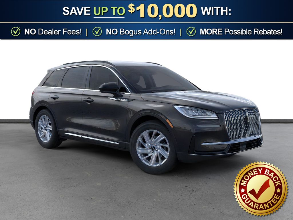 Infinite Black Metallic Clearcoat 2026 Lincoln Corsair Premiere FCT FWD 8-Speed Automatic 2.0L I4 4-Wheel Disc Brakes, 9 Speakers, ABS brakes, Air Conditioning, Alexa Built-In, Alloy wheels, AM/FM radio: SiriusXM with 360L, Apple CarPlay/Android Auto, Auto High-beam Headlights, Auto-dimming Rear-View mirror, Automatic temperature control, Brake assist, Bumpers: body-color, Compass, Delay-off headlights, Driver door bin, Driver vanity mirror, Dual front impact airbags, Dual front side impact airbags, Electronic Stability Control, Emergency communication system: 911 Assist, Equipment Group 100A, Exterior Parking Camera Rear, Four wheel independent suspension, Front anti-roll bar, Front Bucket Seats, Front Center Armrest, Front dual zone A/C, Front reading lights, Fully automatic headlights, Heated door mirrors, Heated front seats, Illuminated entry, Knee airbag, Leather steering wheel, Lincoln Soft Touch Heated Front Captain's Chairs, Low tire pressure warning, Memory seat, Navigation system: Connected Navigation (4-year trial), Occupant sensing airbag, Outside temperature display, Overhead airbag, Overhead console, Panic alarm, Passenger door bin, Passenger vanity mirror, Power door mirrors, Power driver seat, Power Liftgate, Power passenger seat, Power steering, Power windows, Radio data system, Radio: Lincoln Premium Audio System w/MP3, Rear anti-roll bar, Rear Parking Sensors, Rear reading lights, Rear seat center armrest, Rear window defroster, Rear window wiper, Remote keyless entry, Security system, SiriusXM w/360L Radio, Speed control, Speed-sensing steering, Speed-Sensitive Wipers, Split folding rear seat, Spoiler, Steering wheel mounted A/C controls, Steering wheel mounted audio controls, SYNC 4, Tachometer, Telescoping steering wheel, Tilt steering wheel, Traction control, Trip computer, Variably intermittent wipers, Wheels: 18" Warm Painted Alloy.
