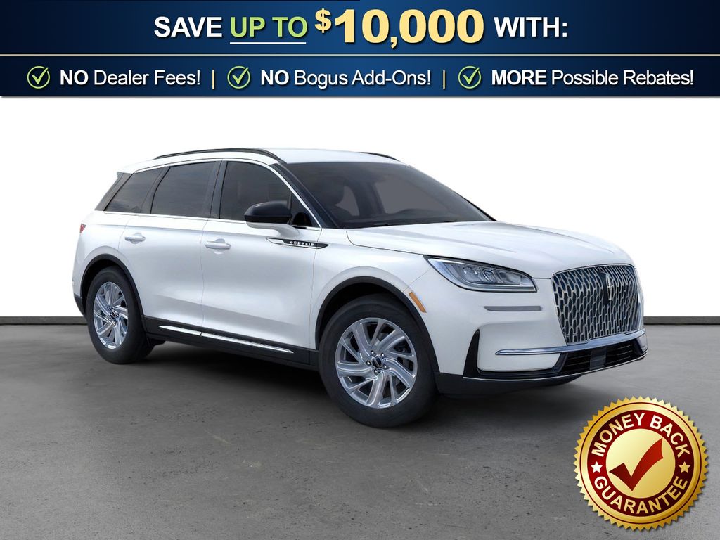 Pristine White Metallic Tri-Coat 2026 Lincoln Corsair Premiere FCT FWD 8-Speed Automatic 2.0L I4 4-Wheel Disc Brakes, 9 Speakers, ABS brakes, Air Conditioning, Alexa Built-In, Alloy wheels, AM/FM radio: SiriusXM with 360L, Apple CarPlay/Android Auto, Auto High-beam Headlights, Auto-dimming Rear-View mirror, Automatic temperature control, Brake assist, Bumpers: body-color, Compass, Delay-off headlights, Driver door bin, Driver vanity mirror, Dual front impact airbags, Dual front side impact airbags, Electronic Stability Control, Emergency communication system: 911 Assist, Exterior Parking Camera Rear, Four wheel independent suspension, Front anti-roll bar, Front Bucket Seats, Front Center Armrest, Front dual zone A/C, Front reading lights, Fully automatic headlights, Heated door mirrors, Heated front seats, Illuminated entry, Knee airbag, Leather steering wheel, Lincoln Soft Touch Heated Front Captain's Chairs, Low tire pressure warning, Memory seat, Navigation system: Connected Navigation (4-year trial), Occupant sensing airbag, Outside temperature display, Overhead airbag, Overhead console, Panic alarm, Passenger door bin, Passenger vanity mirror, Power door mirrors, Power driver seat, Power Liftgate, Power passenger seat, Power steering, Power windows, Radio data system, Radio: Lincoln Premium Audio System w/MP3, Rear anti-roll bar, Rear Parking Sensors, Rear reading lights, Rear seat center armrest, Rear window defroster, Rear window wiper, Remote keyless entry, Security system, SiriusXM w/360L Radio, Speed control, Speed-sensing steering, Speed-Sensitive Wipers, Split folding rear seat, Spoiler, Steering wheel mounted A/C controls, Steering wheel mounted audio controls, SYNC 4, Tachometer, Telescoping steering wheel, Tilt steering wheel, Traction control, Trip computer, Variably intermittent wipers, Wheels: 18" Warm Painted Alloy.