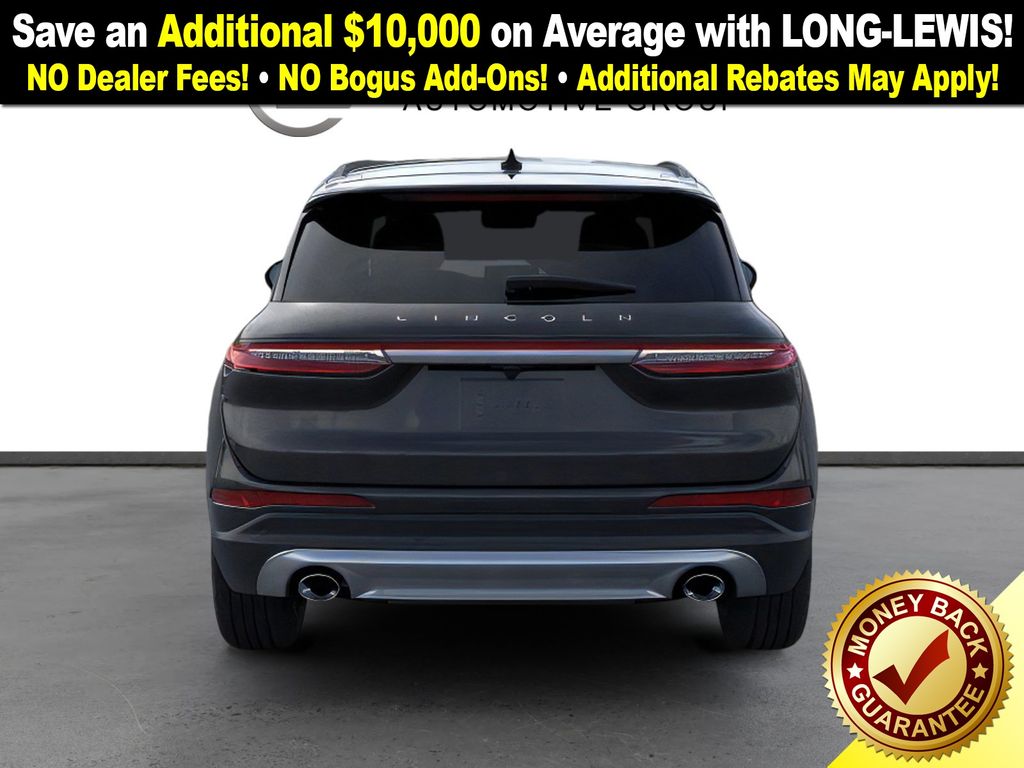 Infinite Black Metallic Clearcoat 2026 Lincoln Corsair Premiere NLT FWD 8-Speed Automatic 2.0L I4 18" Bright Machined Aluminum Wheels, 4-Wheel Disc Brakes, 9 Speakers, ABS brakes, Air Conditioning, Alexa Built-In, Alloy wheels, AM/FM radio: SiriusXM with 360L, Apple CarPlay/Android Auto, Auto High-beam Headlights, Auto-dimming Rear-View mirror, Automatic temperature control, Brake assist, Bumpers: body-color, Compass, Delay-off headlights, Driver door bin, Driver vanity mirror, Dual front impact airbags, Dual front side impact airbags, Electronic Stability Control, Emergency communication system: 911 Assist, Exterior Parking Camera Rear, Four wheel independent suspension, Front anti-roll bar, Front Bucket Seats, Front Center Armrest, Front dual zone A/C, Front reading lights, Fully automatic headlights, Heated door mirrors, Heated front seats, Illuminated entry, Knee airbag, Leather steering wheel, Lincoln Soft Touch Heated Front Captain's Chairs, Low tire pressure warning, Memory seat, Navigation system: Connected Navigation (4-year trial), Occupant sensing airbag, Outside temperature display, Overhead airbag, Overhead console, Panic alarm, Passenger door bin, Passenger vanity mirror, Power door mirrors, Power driver seat, Power Liftgate, Power passenger seat, Power steering, Power windows, Radio data system, Radio: Lincoln Premium Audio System w/MP3, Rear anti-roll bar, Rear Parking Sensors, Rear reading lights, Rear seat center armrest, Rear window defroster, Rear window wiper, Remote keyless entry, Security system, SiriusXM w/360L Radio, Speed control, Speed-sensing steering, Speed-Sensitive Wipers, Split folding rear seat, Spoiler, Steering wheel mounted A/C controls, Steering wheel mounted audio controls, SYNC 4, Tachometer, Telescoping steering wheel, Tilt steering wheel, Traction control, Trip computer, Variably intermittent wipers, Wheels: 18" Warm Painted Alloy.