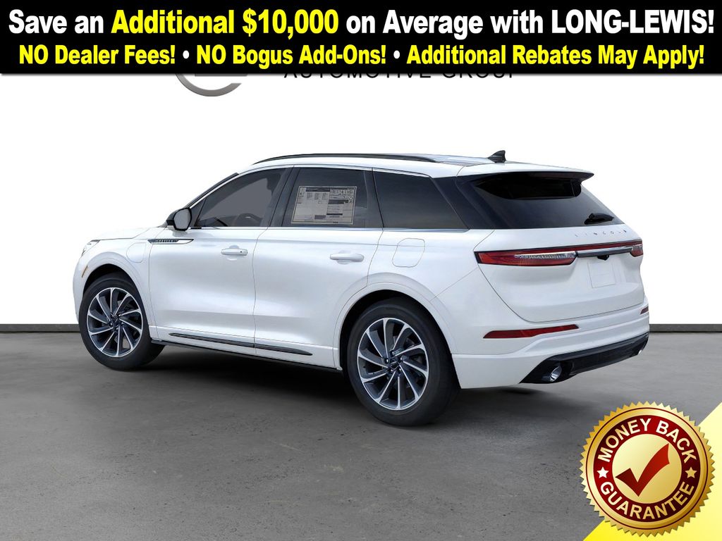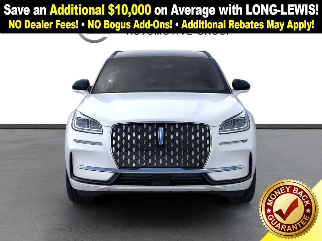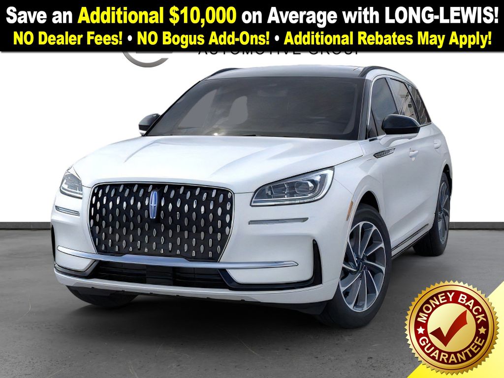 Pristine White Metallic Tri-Coat 2026 Lincoln Corsair Plug-In Hybrid Grand Touring NLT AWD eCVT 2.5L i-VCT 2.5L i-VCT, 19" Bright Machined Aluminum Wheels, 4-Wheel Disc Brakes, 9 Speakers, ABS brakes, Adaptive suspension, Air Conditioning, Alexa Built-In, Alloy wheels, AM/FM radio: SiriusXM with 360L, Apple CarPlay/Android Auto, Auto High-beam Headlights, Auto-dimming Rear-View mirror, Automatic temperature control, Brake assist, Bumpers: body-color, Compass, Delay-off headlights, Driver door bin, Driver vanity mirror, Dual front impact airbags, Dual front side impact airbags, Electronic Stability Control, Emergency communication system: 911 Assist, Exterior Parking Camera Rear, Four wheel independent suspension, Front anti-roll bar, Front Bucket Seats, Front Center Armrest, Front dual zone A/C, Front reading lights, Fully automatic headlights, Heated door mirrors, Heated front seats, Illuminated entry, Knee airbag, Leather steering wheel, Low tire pressure warning, Memory seat, Navigation system: Connected Navigation (4-year trial), Occupant sensing airbag, Outside temperature display, Overhead airbag, Overhead console, Panic alarm, Passenger door bin, Passenger vanity mirror, Power door mirrors, Power driver seat, Power Liftgate, Power moonroof: Panoramic Vista Roof, Power passenger seat, Power steering, Power windows, Premium Leather-Trimmed Heated Captain's Chairs, Radio data system, Radio: Lincoln Premium Audio System w/MP3, Rear anti-roll bar, Rear Parking Sensors, Rear reading lights, Rear seat center armrest, Rear window defroster, Rear window wiper, Remote keyless entry, Security system, SiriusXM w/360L Radio, Speed control, Speed-sensing steering, Speed-Sensitive Wipers, Split folding rear seat, Spoiler, Steering wheel mounted A/C controls, Steering wheel mounted audio controls, SYNC 4 Communications & Entertainment System, Tachometer, Telescoping steering wheel, Tilt steering wheel, Traction control, Trip computer, Variably intermittent wipers, 2.5L i-VCT.