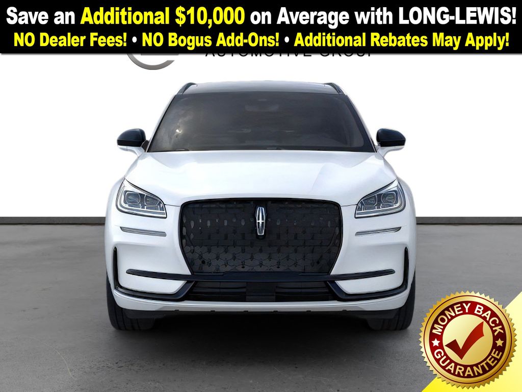 Pristine White Metallic Tri-Coat 2026 Lincoln Corsair Plug-In Hybrid Grand Touring FCT AWD eCVT 2.5L i-VCT 2.5L i-VCT, 19" Bright Machined Aluminum Wheels, 4-Wheel Disc Brakes, 9 Speakers, ABS brakes, Adaptive suspension, Air Conditioning, Alexa Built-In, Alloy wheels, AM/FM radio: SiriusXM with 360L, Apple CarPlay/Android Auto, Auto High-beam Headlights, Auto-dimming Rear-View mirror, Automatic temperature control, Body-Color Exterior Elements, Brake assist, Bumpers: body-color, Compass, Delay-off headlights, Driver door bin, Driver vanity mirror, Dual front impact airbags, Dual front side impact airbags, Electronic Stability Control, Emergency communication system: 911 Assist, Exterior Parking Camera Rear, Four wheel independent suspension, Front anti-roll bar, Front Bucket Seats, Front Center Armrest, Front dual zone A/C, Front reading lights, Fully automatic headlights, Heated door mirrors, Heated front seats, Illuminated entry, Jet Appearance Package, Knee airbag, Leather steering wheel, Low tire pressure warning, Memory seat, Navigation system: Connected Navigation (4-year trial), Occupant sensing airbag, Outside temperature display, Overhead airbag, Overhead console, Panic alarm, Passenger door bin, Passenger vanity mirror, Pillar Black Exterior Elements, Power door mirrors, Power driver seat, Power Liftgate, Power moonroof: Panoramic Vista Roof, Power passenger seat, Power steering, Power windows, Premium Leather-Trimmed Heated Captain's Chairs, Radio data system, Radio: Lincoln Premium Audio System w/MP3, Rear anti-roll bar, Rear Parking Sensors, Rear reading lights, Rear seat center armrest, Rear window defroster, Rear window wiper, Remote keyless entry, Security system, SiriusXM w/360L Radio, Speed control, Speed-sensing steering, Speed-Sensitive Wipers, Split folding rear seat, Spoiler, Star Light Metallic Applique, Steering wheel mounted A/C controls, Steering wheel mounted audio controls, SYNC 4 Communications & Entertainment System, Tachometer, Telescoping steering wheel, Tilt steering wheel, Traction control, Trip computer, Variably intermittent wipers, Wheels: 20" Black Aluminum, 2.5L i-VCT.
